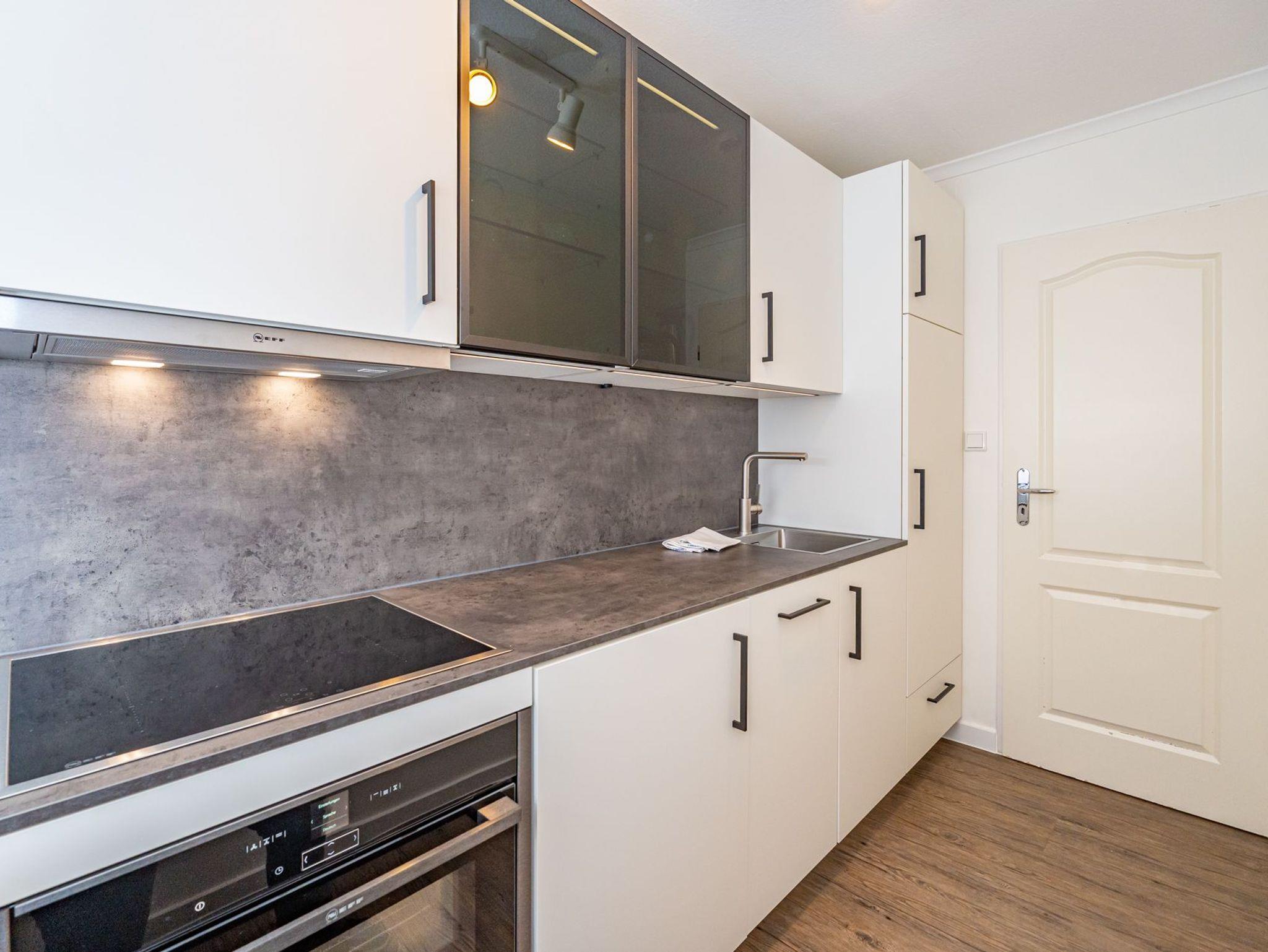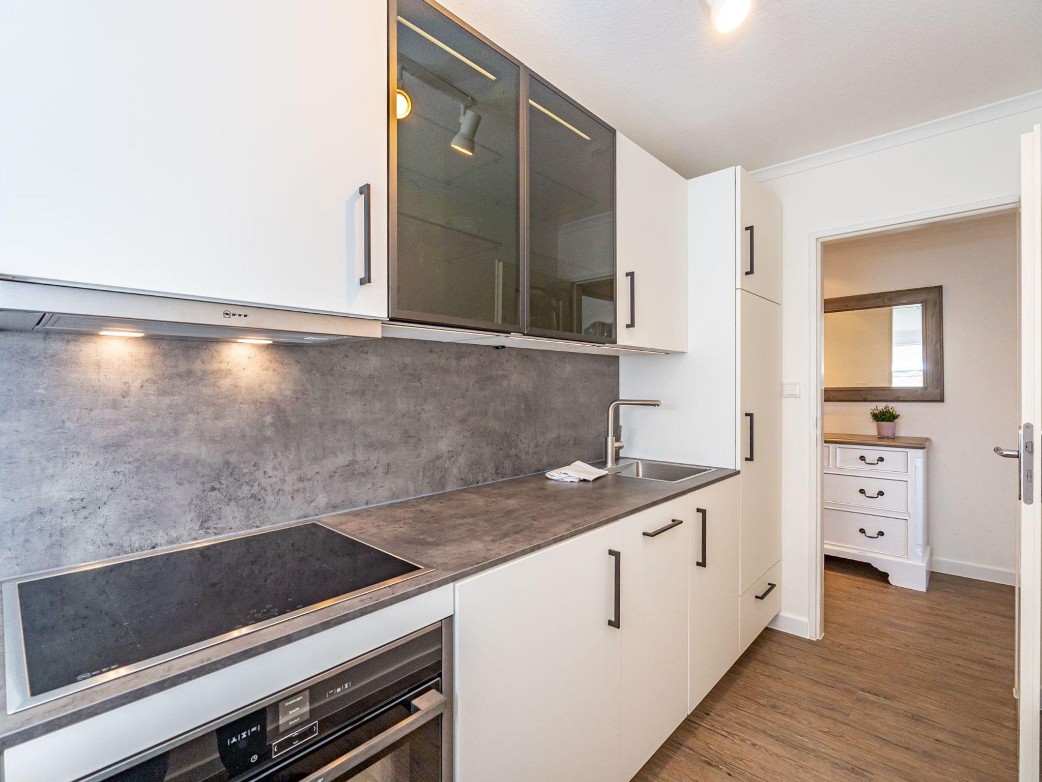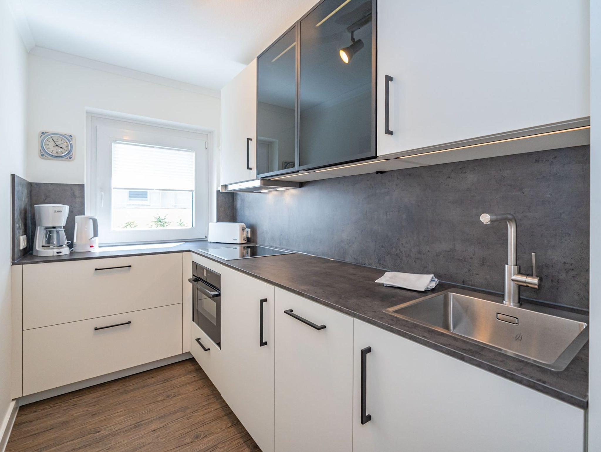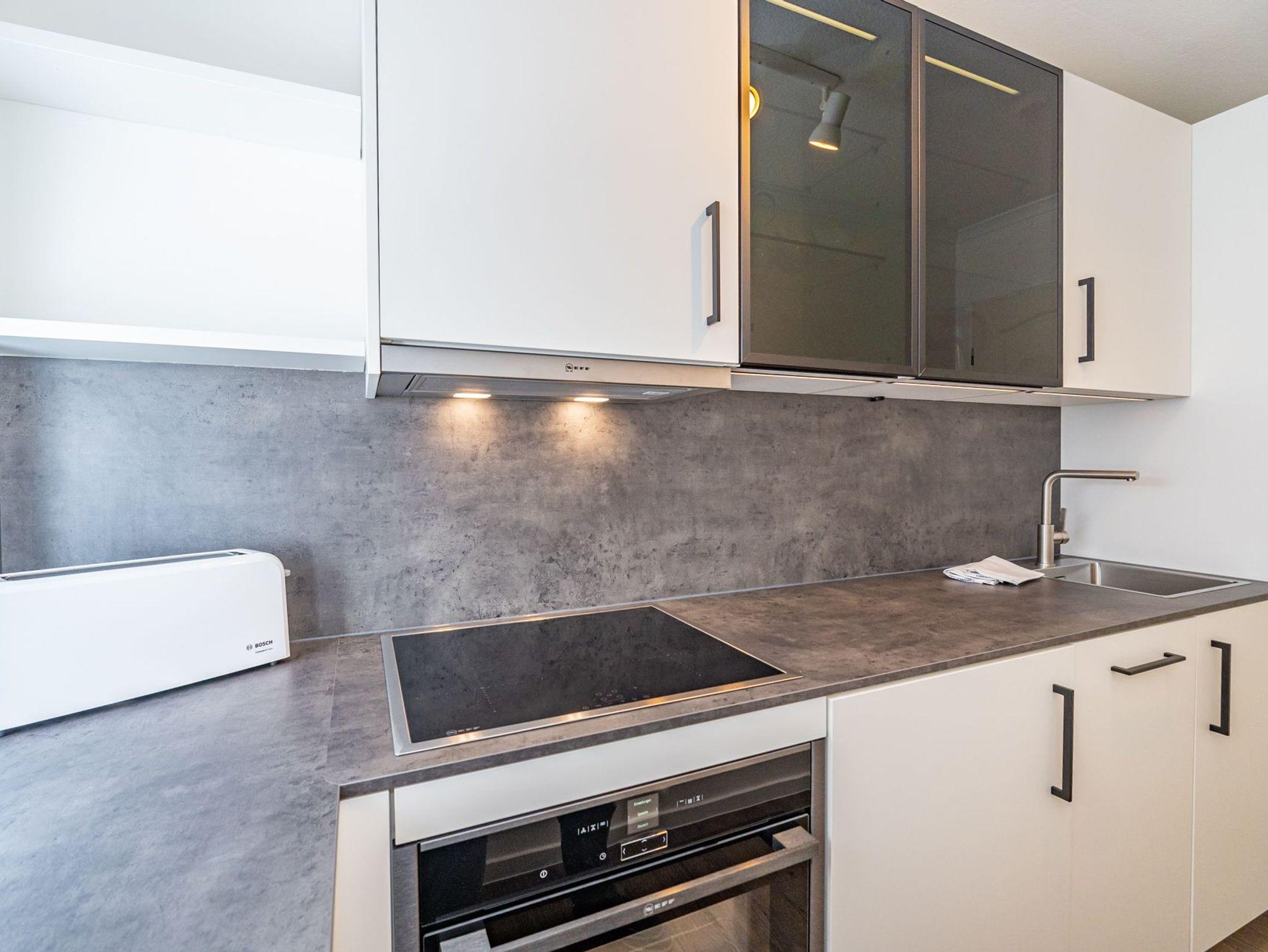 Die separate, vollausgestattete Küche hat einen Geschirrspüler, ein Ceranfeld (4 Kochfelder), einen Backofen, eine Nespresso-Maschine, einen Kühlschrank mit 3-Sterne-Gefrierfach und ein Fenster. Kaffeemaschine, Wasserkocher und Toaster gehören zur Grundausstattung.