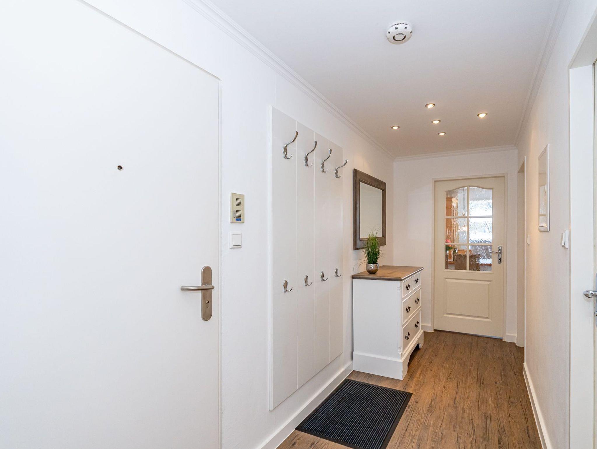 Vom Vorflur mit Garderobe gelangt man in das Wohnzimmer (mit Austritt zum Balkon), in die beiden Schlafzimmer, in die Küche und in das neue Wannenbad/WC mit Duschmöglichkeit.