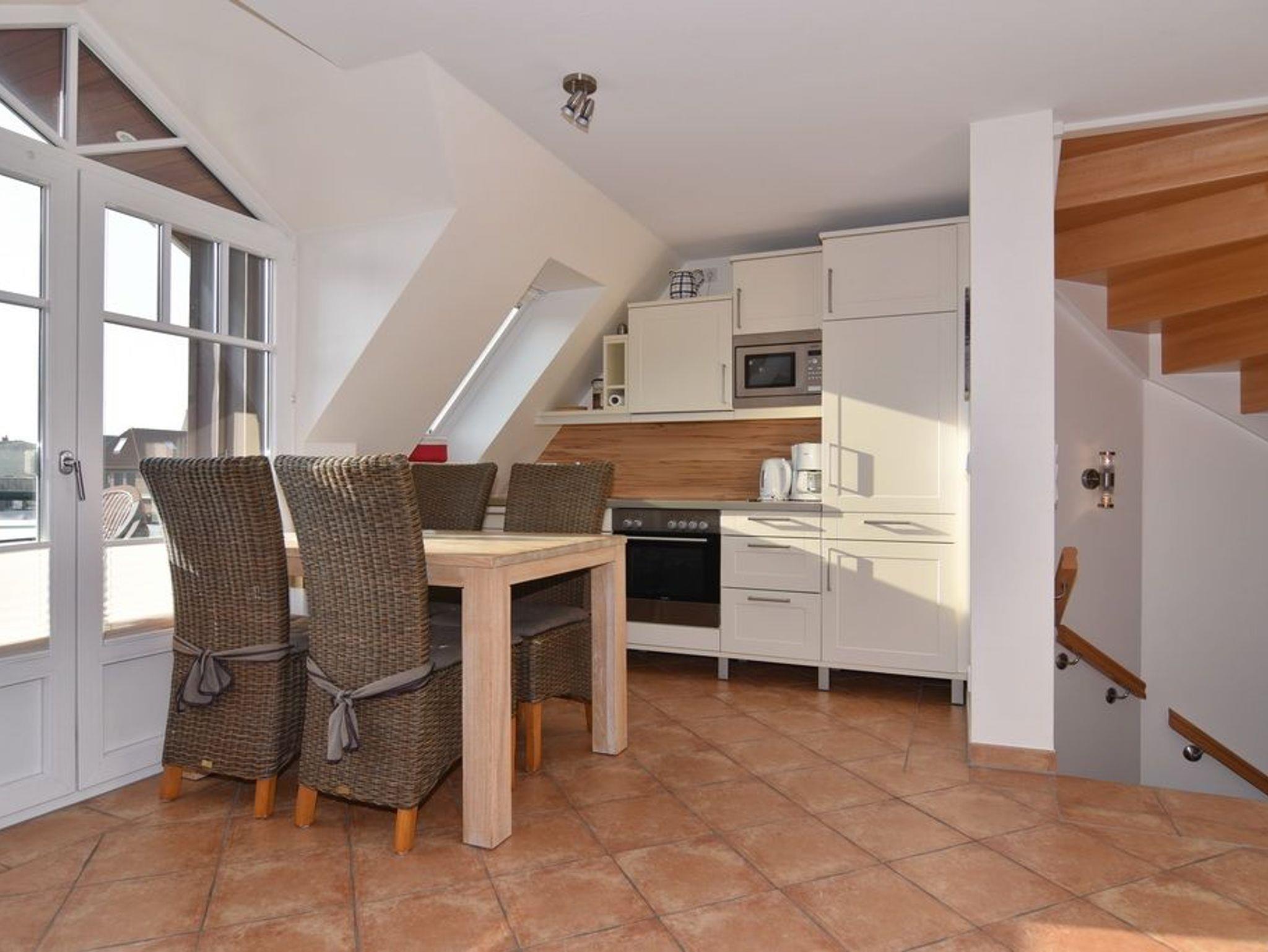 Exklusive 3 Zimmer-Ferienwohnung in guter Lage. Nichtraucher. Ca. 57 m². OG: Geschmackvoll möbliertes Wohnzimmer mit Eckcouch und[nbsp][nbsp]Korb-Sessel, Essplatz für 4 Personen, Flat-TV/Stereo, W-LAN (ohne Gewähr), Südbalkon mit Balkonmöbeln, offene Küche mit Mikrowelle, Backofen und Geschirrspüler, Duschbad/WC, Schlafzimmer mit Doppelbett ( 160x200 ). DG: Schlafzimmer mit Doppelbett ( 160x200 ) und Flat-TV. Kein PKW-Stellplatz am Haus (Bettwäsche und Handtücher sind zur Anreise aufgezogen. Mindestmietdauer im Winter 7 Tage!