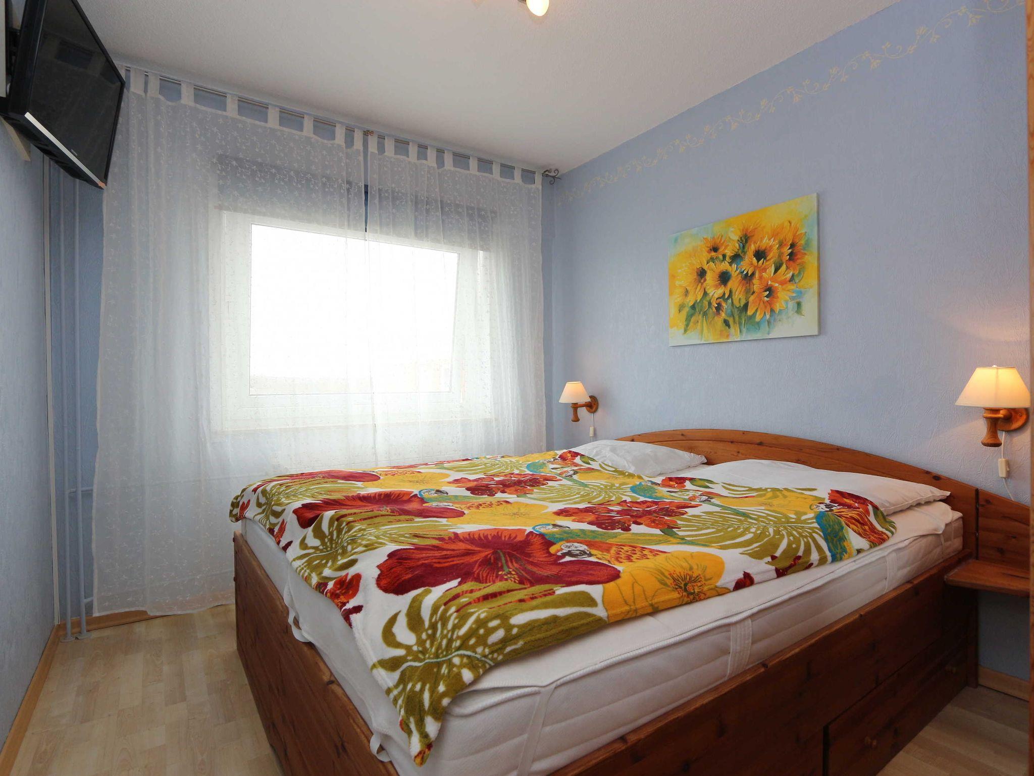 • Im Schlafzimmer befindet sich ein Doppelbett (ca. 180 x 200 cm) und eine Flachbildfernseher,