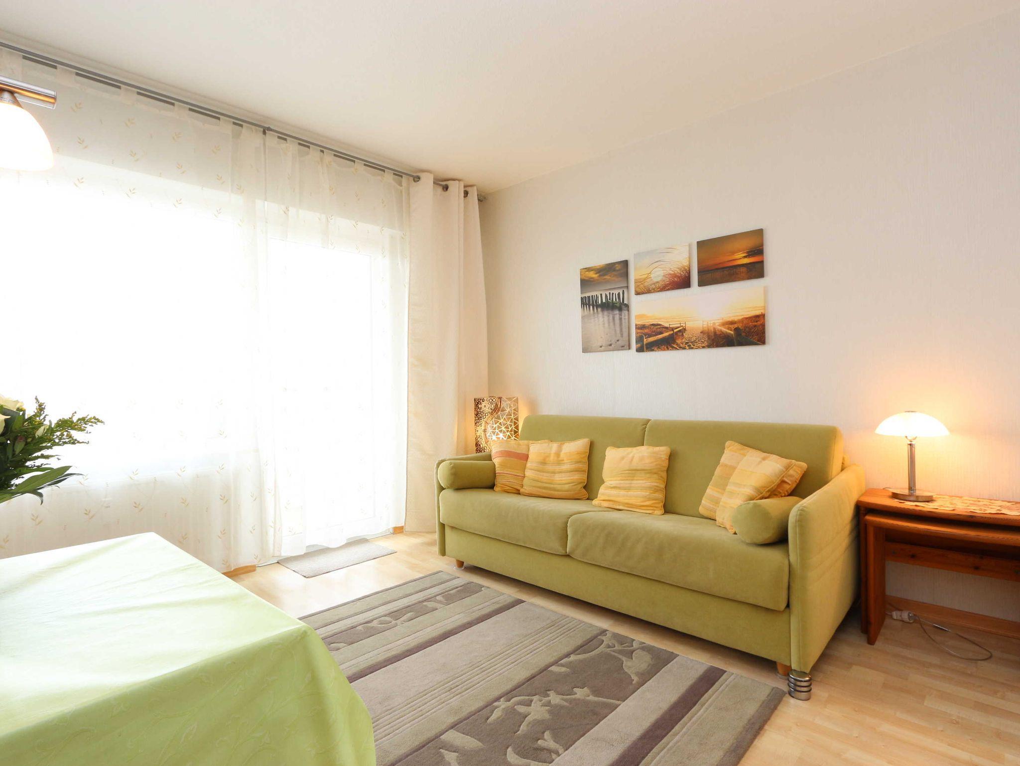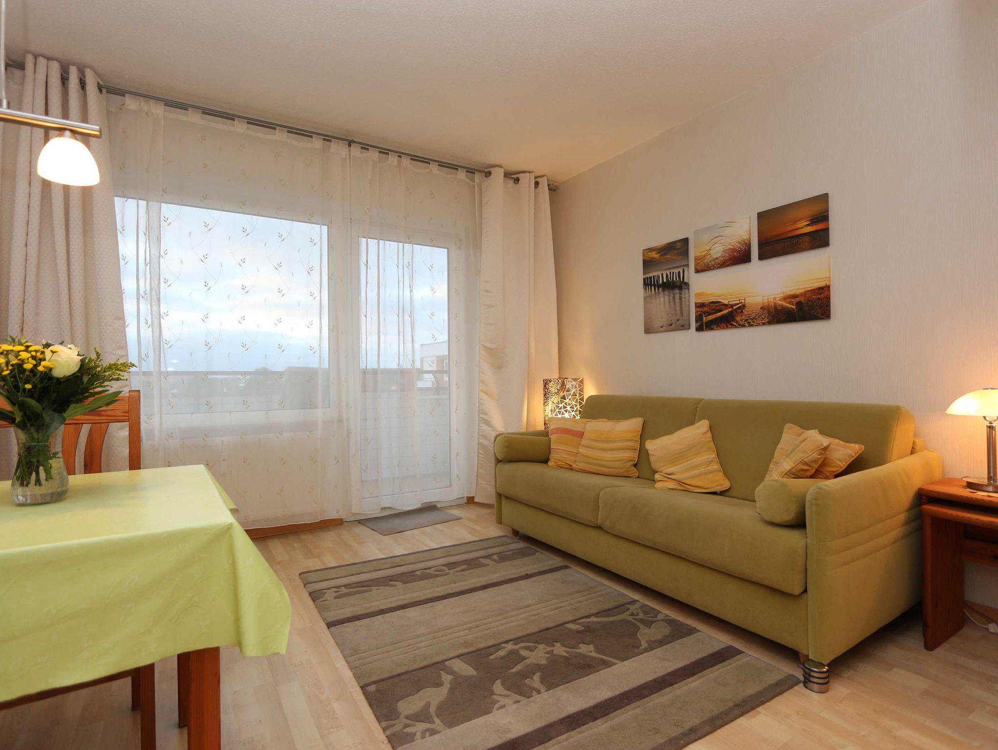 • 2-Zimmer-Ferienwohnung (3.OG, Appartement 69) mit komfortabler Ausstattung für 4 Personen (ca. 39 m²)mit Wohn- und Esszimmer, Schlafzimmer, Küche, Bad und Balkon;