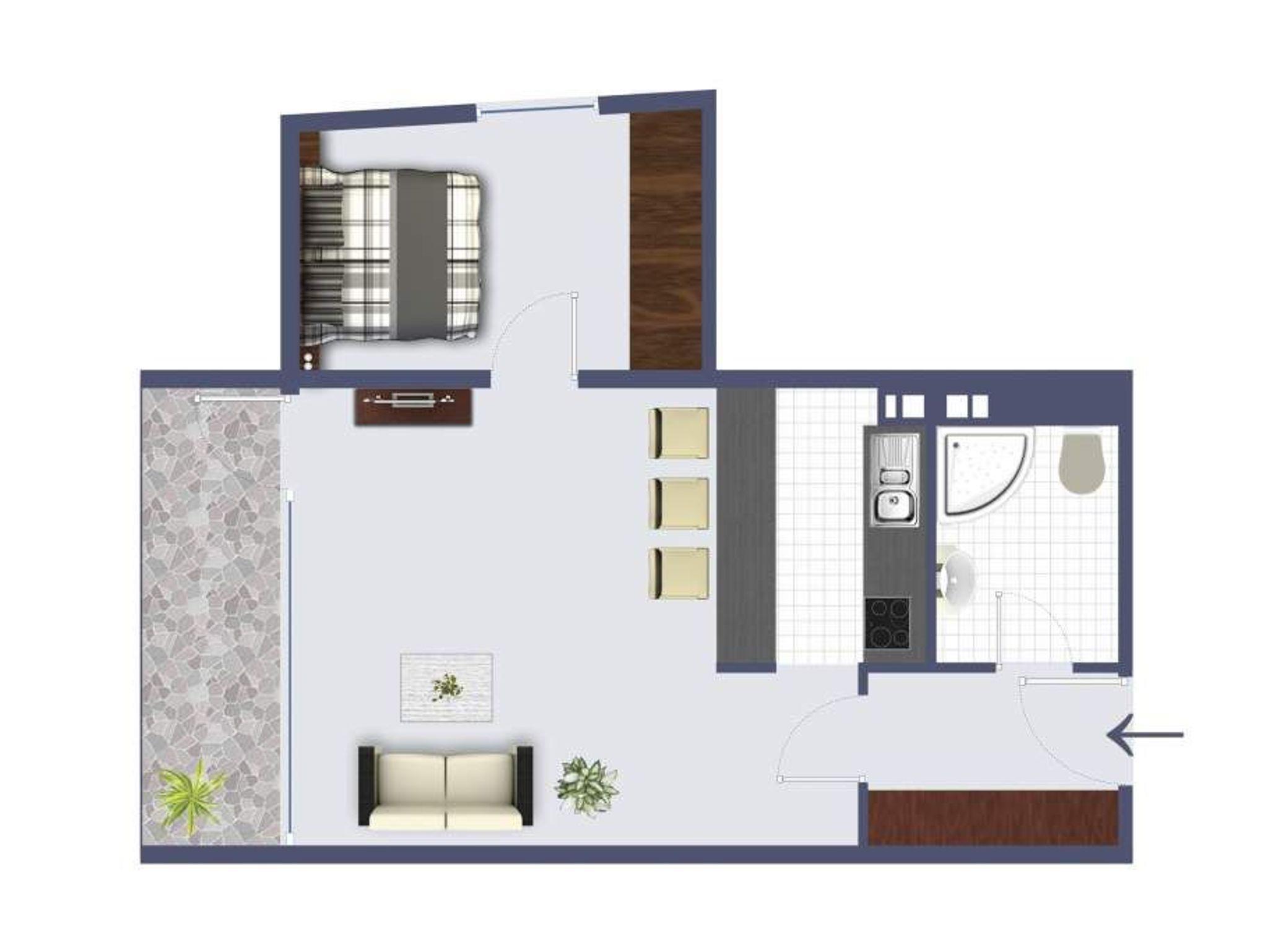 Vom Vorflur mit Garderobe gelangt man das Wohnzimmer (mit Austritt zur Loggia), das Schlafzimmer und in das Duschbad/WC.