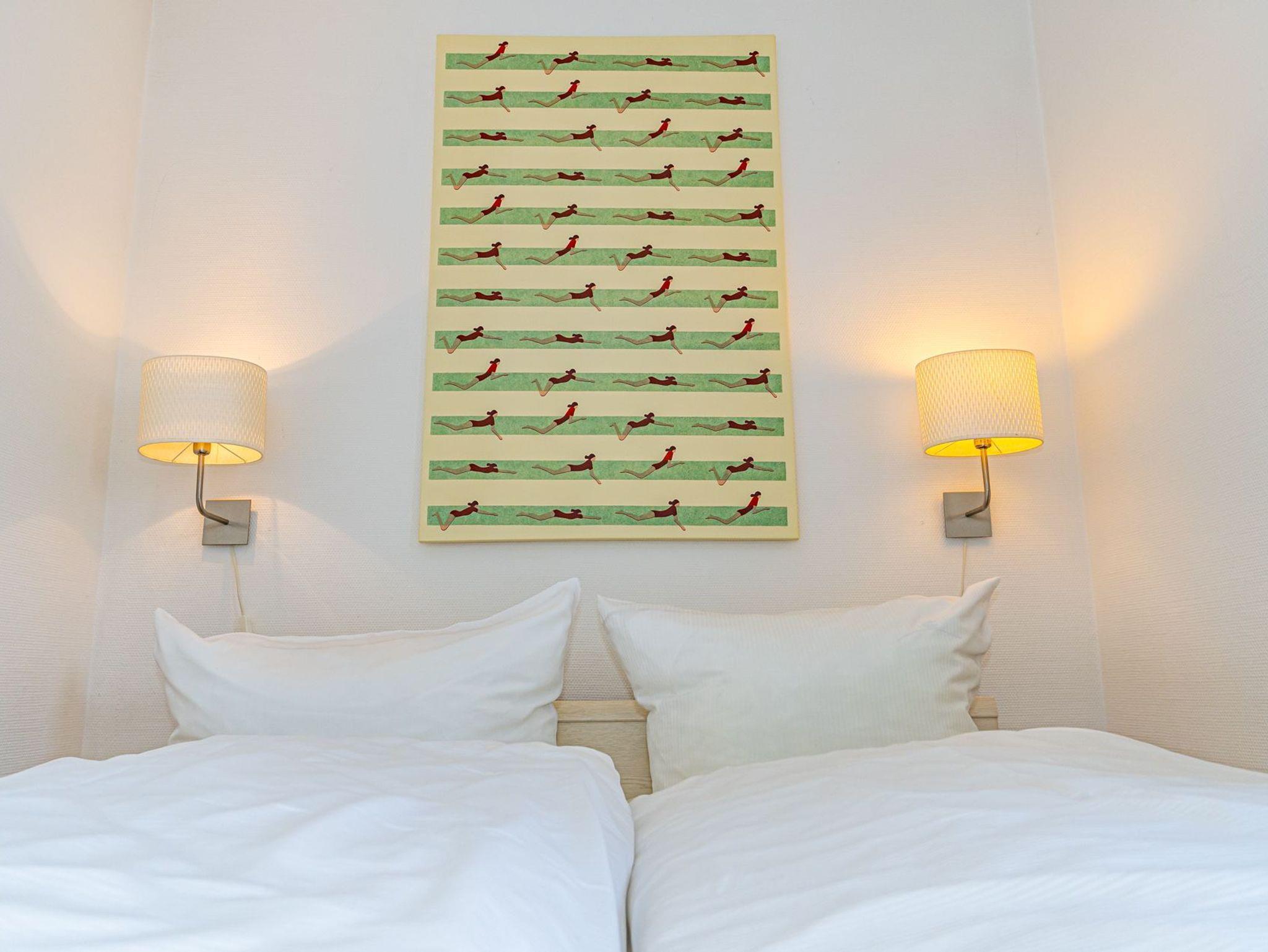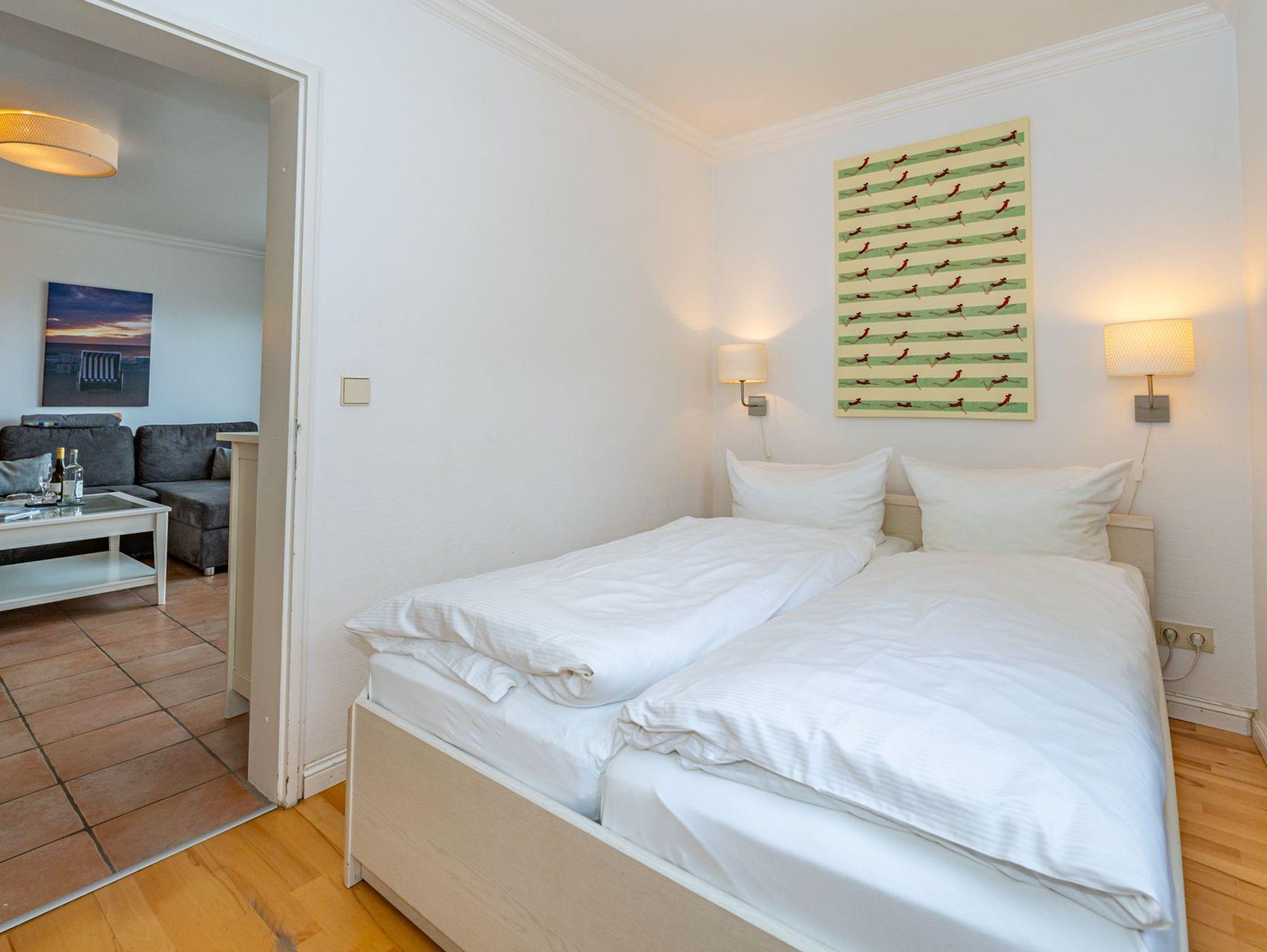Das Schlafzimmer ist mit einem Doppelbett (zwei Einzelmatratzen 0,70 x 1,90 m) ausgestattet.