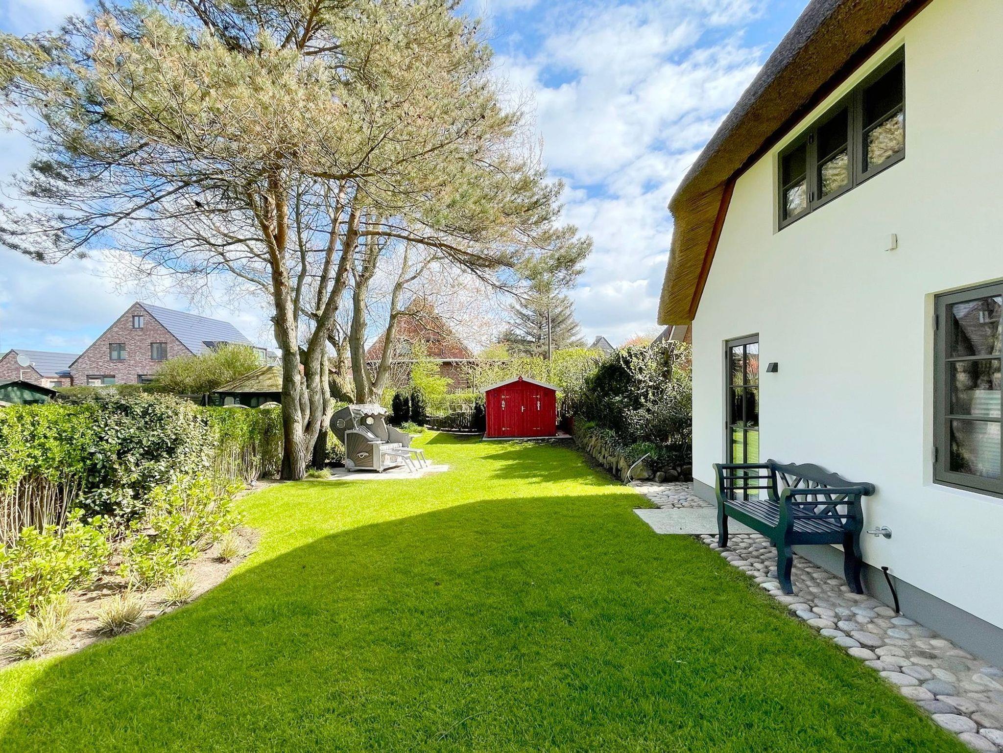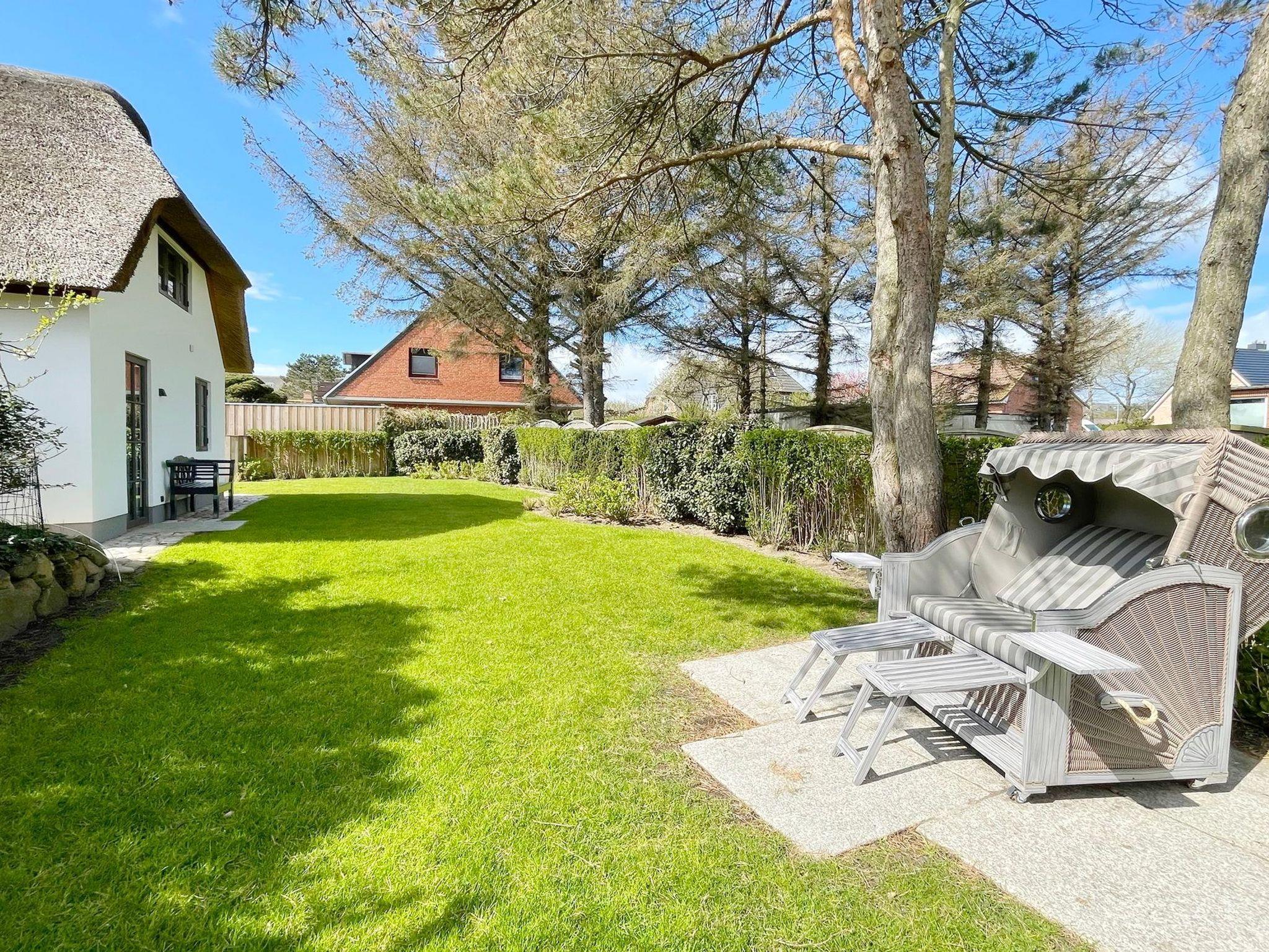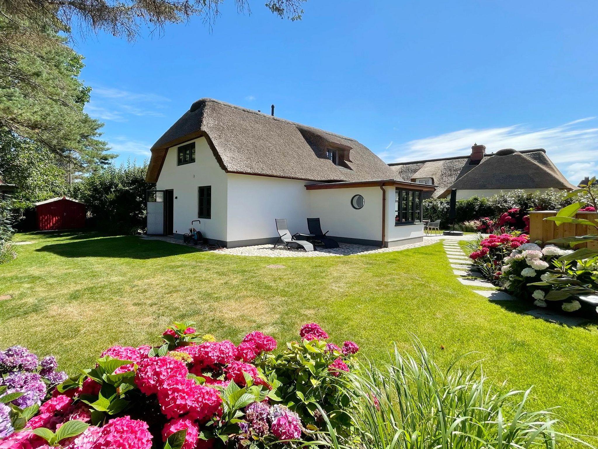 Exklusives Ferienhaus Rosi & Piet auf Sylt mit Reetdach, hochwertiger Ausstattung und privatem Garten nahe Westerland und Weststrand.
