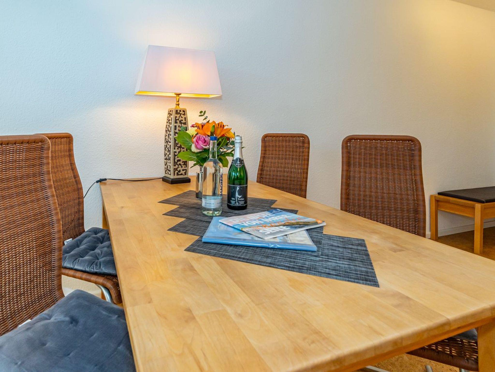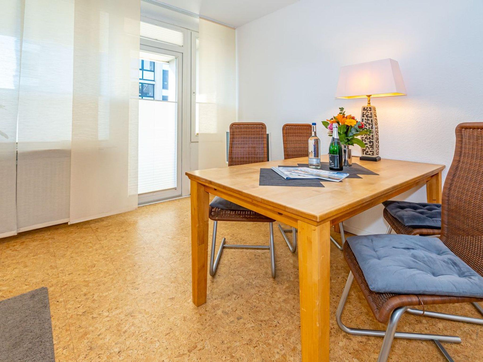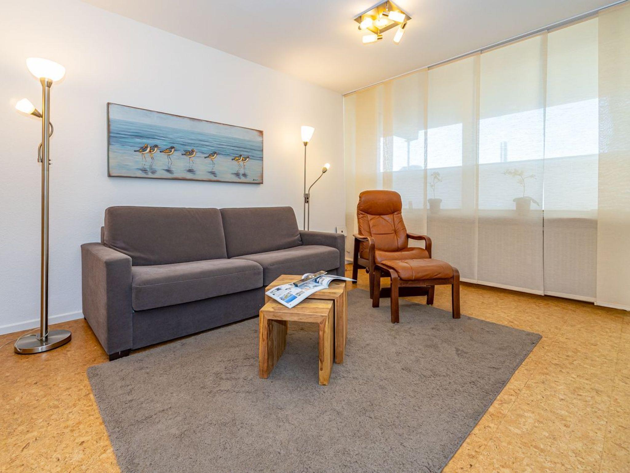 Die ca. 60 m² große Wohnung empfängt Sie mit einem einladenden Vorflur inklusive Garderobe und Schuhablage. Von hier aus erreichen Sie das gemütliche Wohnzimmer mit Zugang zur Loggia, das separate Schlafzimmer, die moderne Küche sowie das neue Duschbad. Die Westloggia bietet Ihnen herrliche Nachmittagssonne und ist mit bequemen Balkonmöbeln und Auflagen ausgestattet ? perfekt zum Entspannen. Der großzügige Wohnbereich verfügt über eine komfortable Sitzgarnitur mit Schlaffunktion (3-Sitzer-Couch), Sessel und Fußhocker, einen Esstisch sowie einen Kabel-Flachbild-TV für entspannte Stunden.