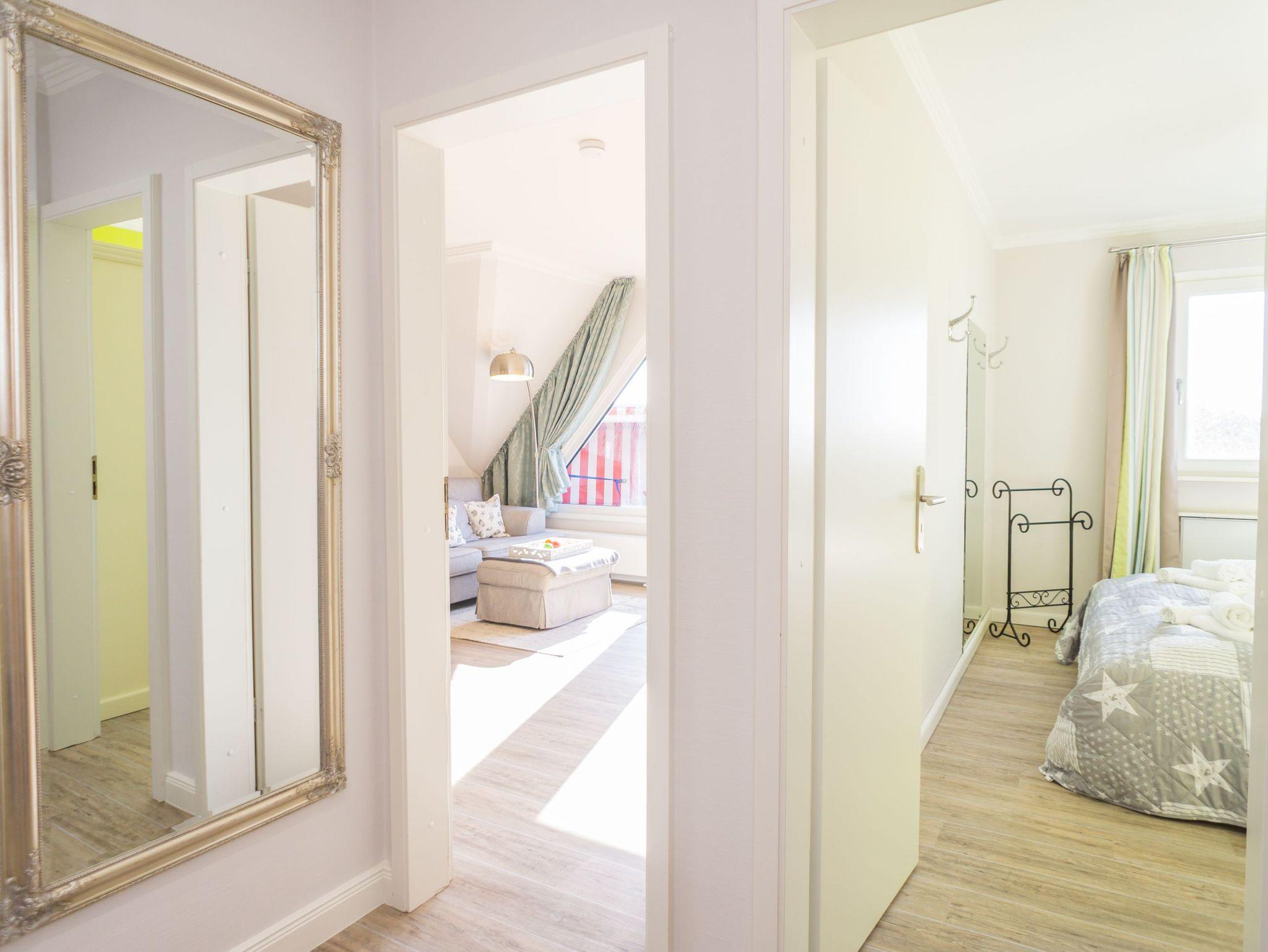 Diese charmante 2-Zimmer-Nichtraucher-Ferienwohnung mit ca. 55 m² Wohnfläche in der 2. Etage zur Westseite ist ideal für bis zu 2 Personen, die einen ruhigen Rückzugsort suchen. Der großzügige Balkon in Westlage, ausgestattet mit Balkonmöbeln, Auflagen und von Ostern bis Oktober zusätzlich mit einem Strandkorb, lädt dazu ein, die Nachmittagssonne in vollen Zügen zu genießen.