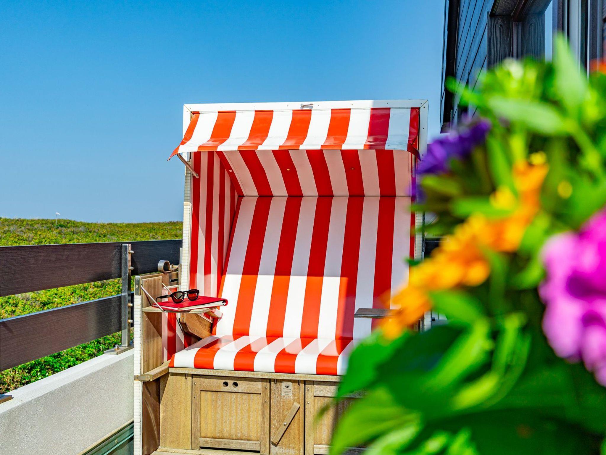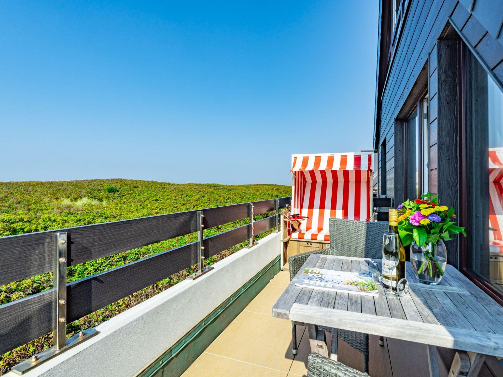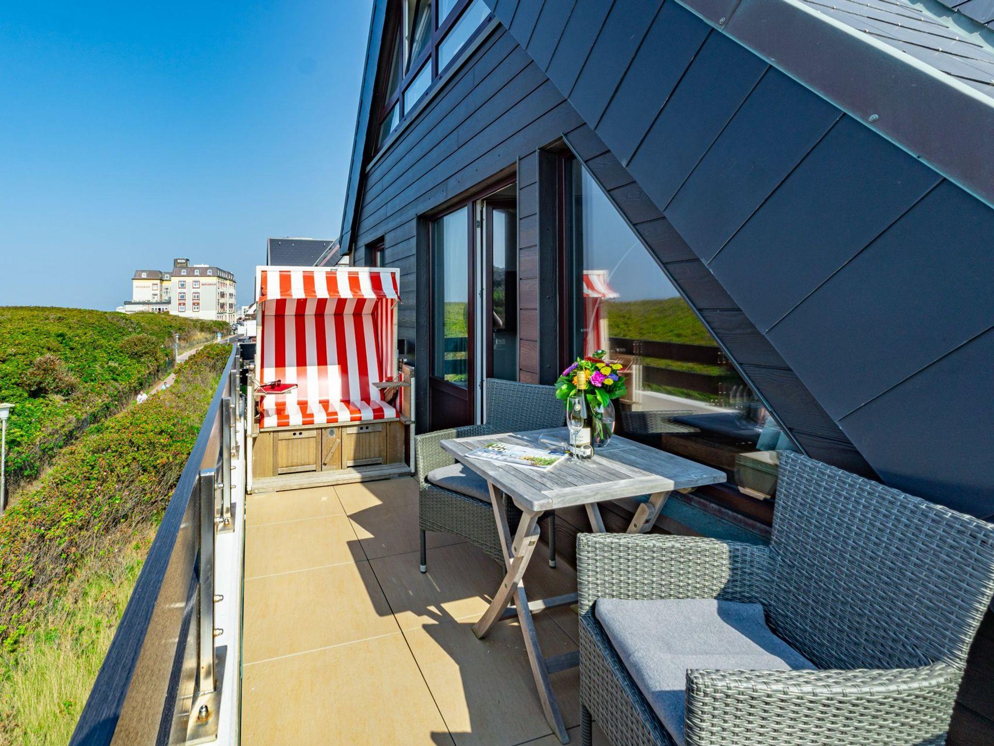 Idyllische Ferienwohnung mit Balkon und Strandkorb, nur 150 m vom Strand in Westerland auf Sylt entfernt.
