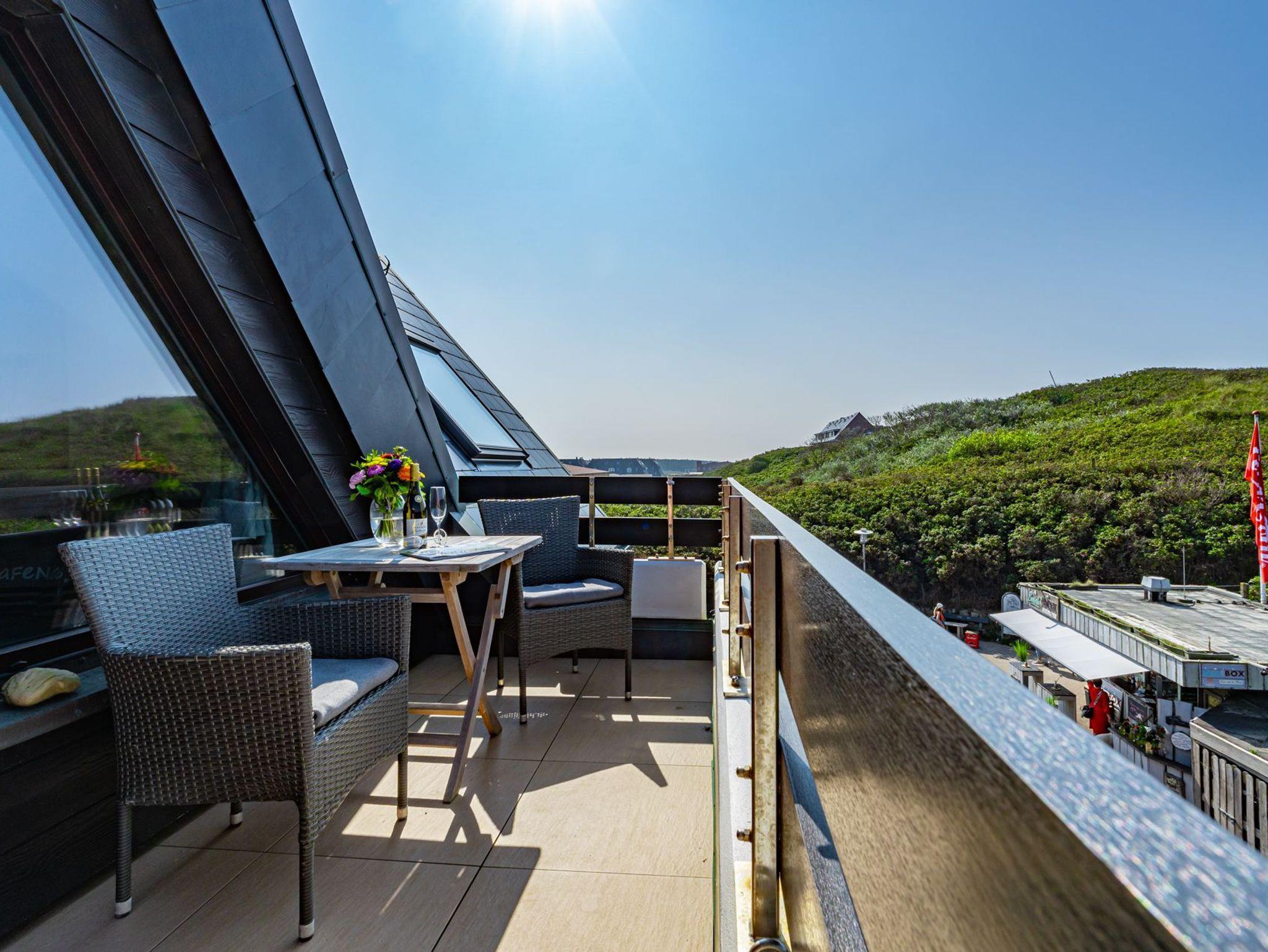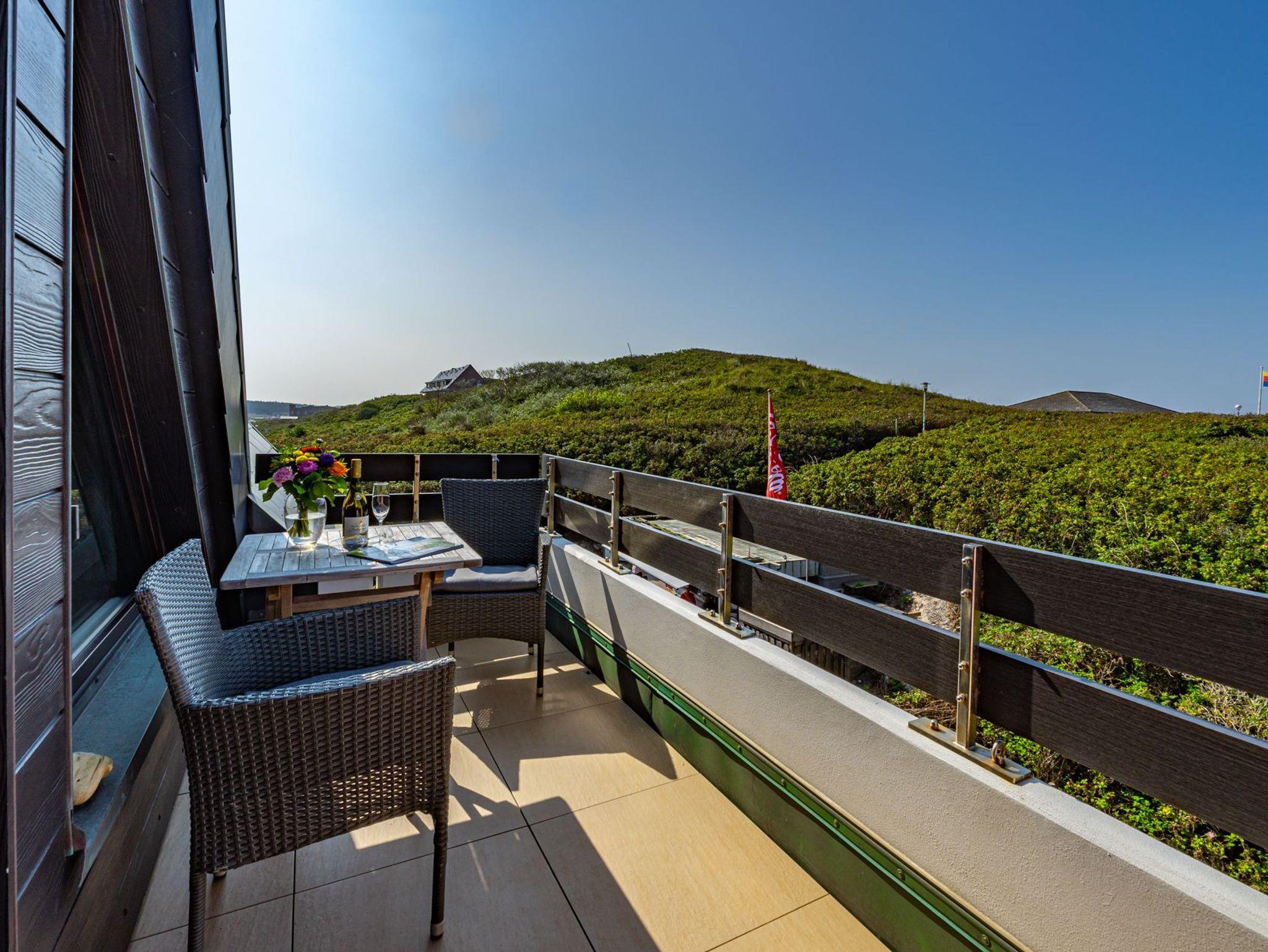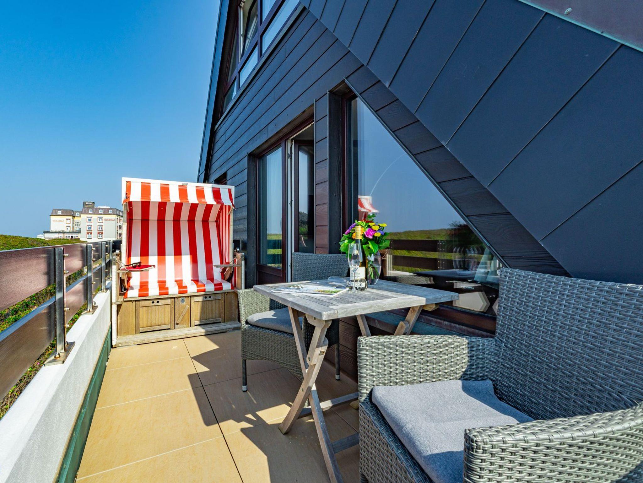 Idyllische Ferienwohnung mit Balkon und Strandkorb, nur 150 m vom Strand in Westerland auf Sylt entfernt.