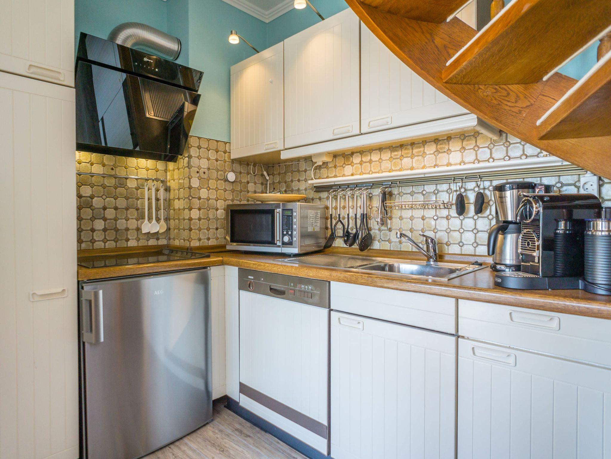 Beim Betreten der Wohnung gelangen Sie über einen einladenden Vorflur mit Garderobe in den offenen Wohnbereich, das Schlafzimmer sowie in das helle Duschbad/WC. Der Wohnbereich besticht durch ein komfortables 3-Sitzer-Sofa, einen separaten Essplatz sowie einen Kabel-Flachbild-TV, ergänzt durch Radio, Telefon und WLAN. Von hier aus haben Sie direkten Zugang zum Balkon. Die moderne, offene Kochnische ist mit einem Geschirrspüler, einer Mikrowelle, einem Ceranfeld mit vier Kochfeldern und einem Kühlschrank ausgestattet; zur Grundausstattung zählen zudem Kaffeemaschine, Wasserkocher und Toaster.
