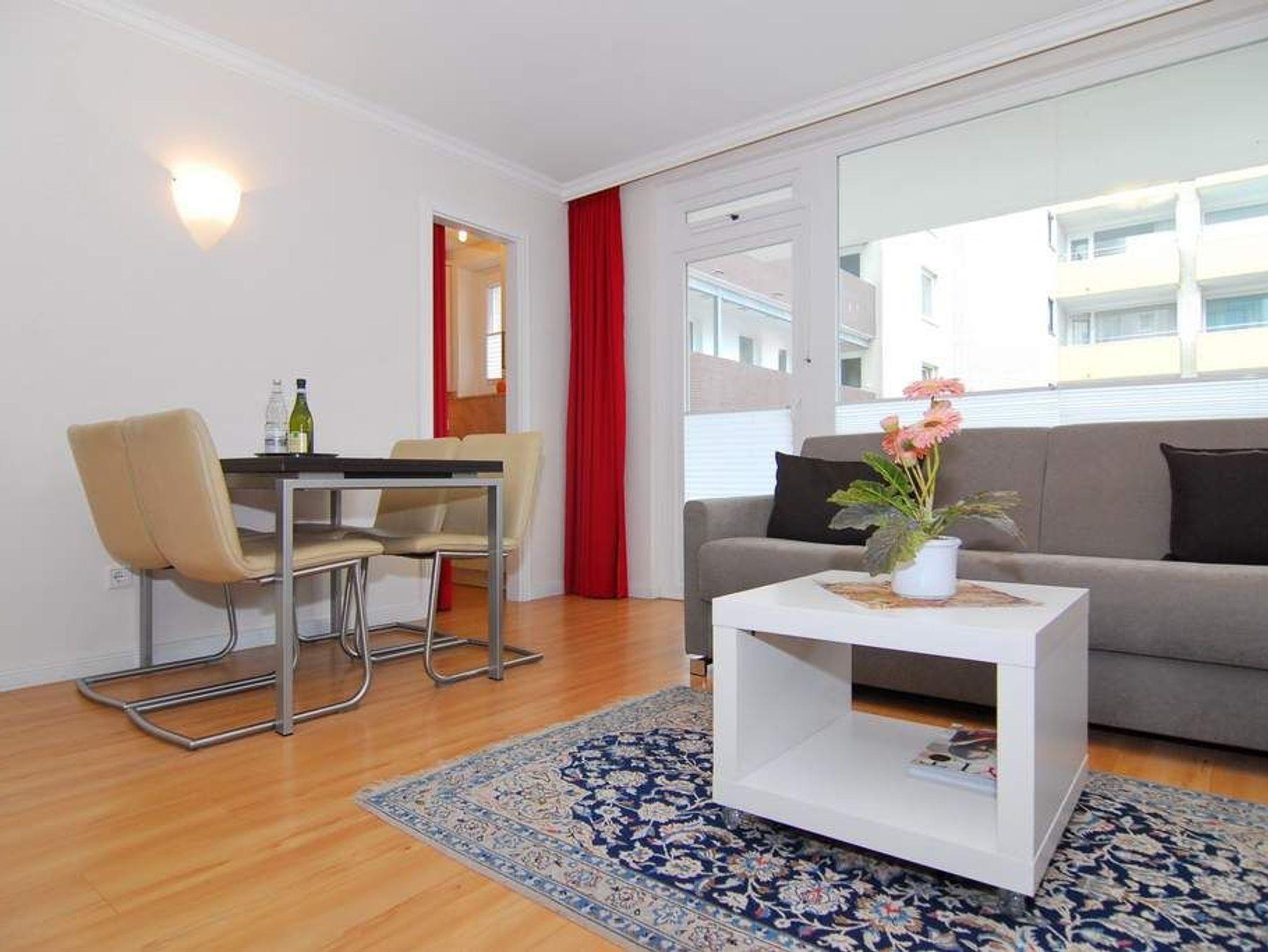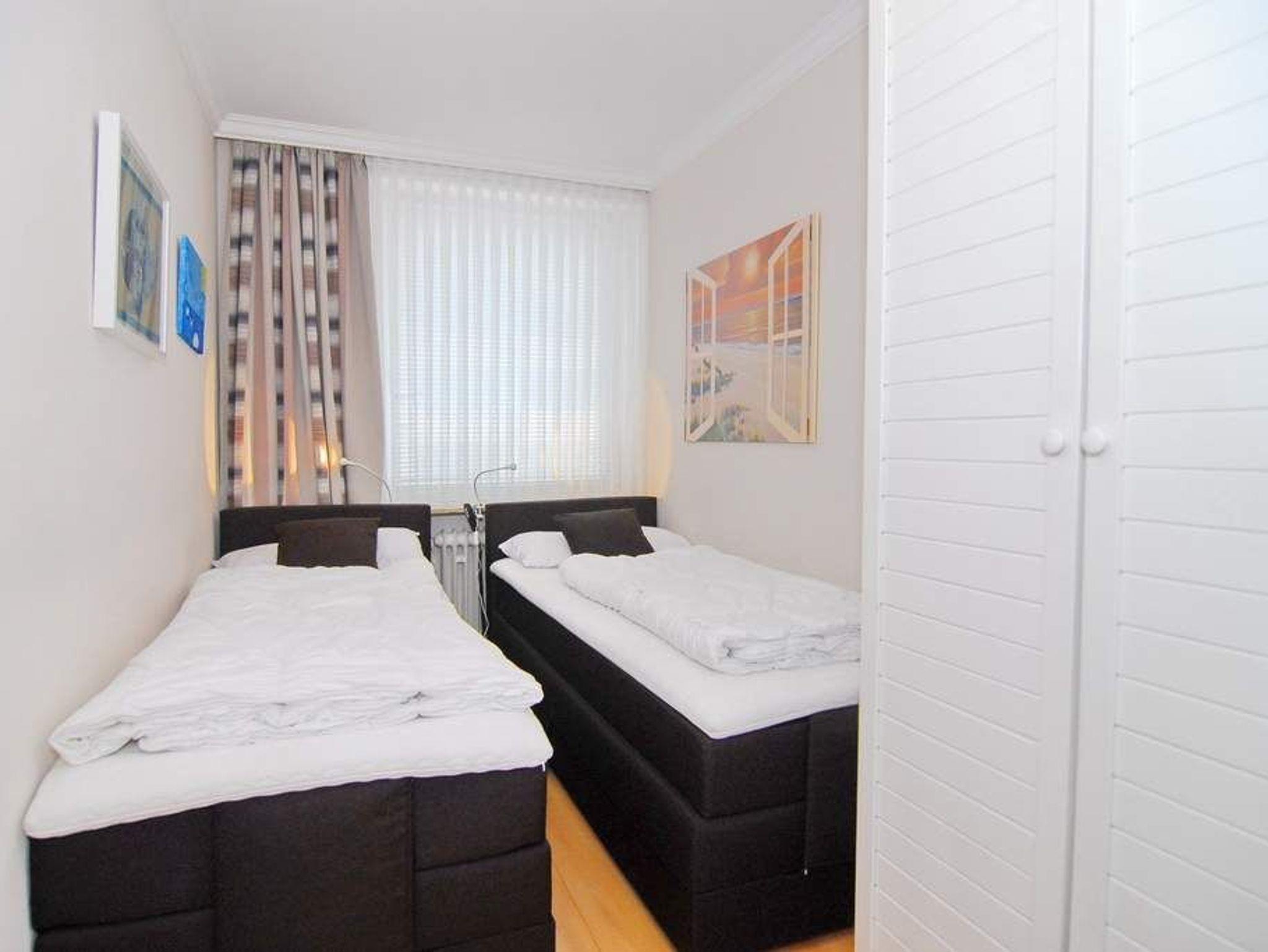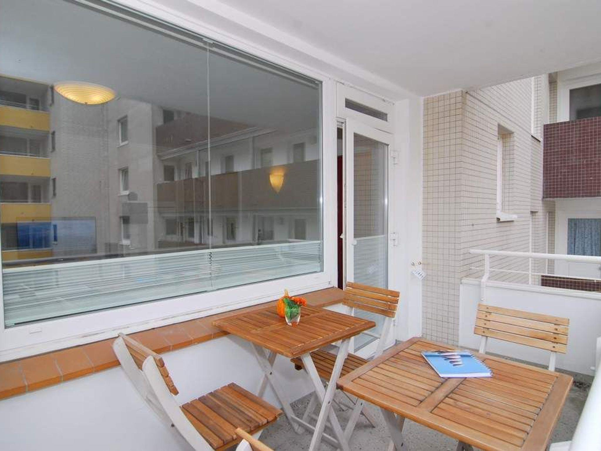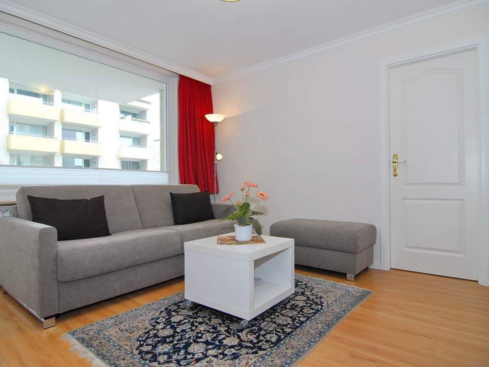 Moderne 2- Zimmer-Ferienwohnung im Haus Atlantik, 1 OG., ca. 35 m², Nichtraucher. Wohnraum mit Schlafcouch, Essplatz, TV, Internet (ohne Gewähr), DVD und Stereo- Anlage. Nord-Ost-Balkon mit Balkonmöbel, kleine Küche mit Mikrowelle und Geschirrspüler, Duschbad/ WC, Schlafzimmer mit 2 Einzelbetten (je 80x200 - zusammenschiebbar und elektr. höhenverstellbar)[nbsp][nbsp]und 1 Einzelbett (1,90x70). Die Wohnung ist komplett mit Laminat ausgelegt. Tierhaltung ist nicht gestattet. Wäschepaket sowie PKW- Stellplatz nur auf Bestellung.
