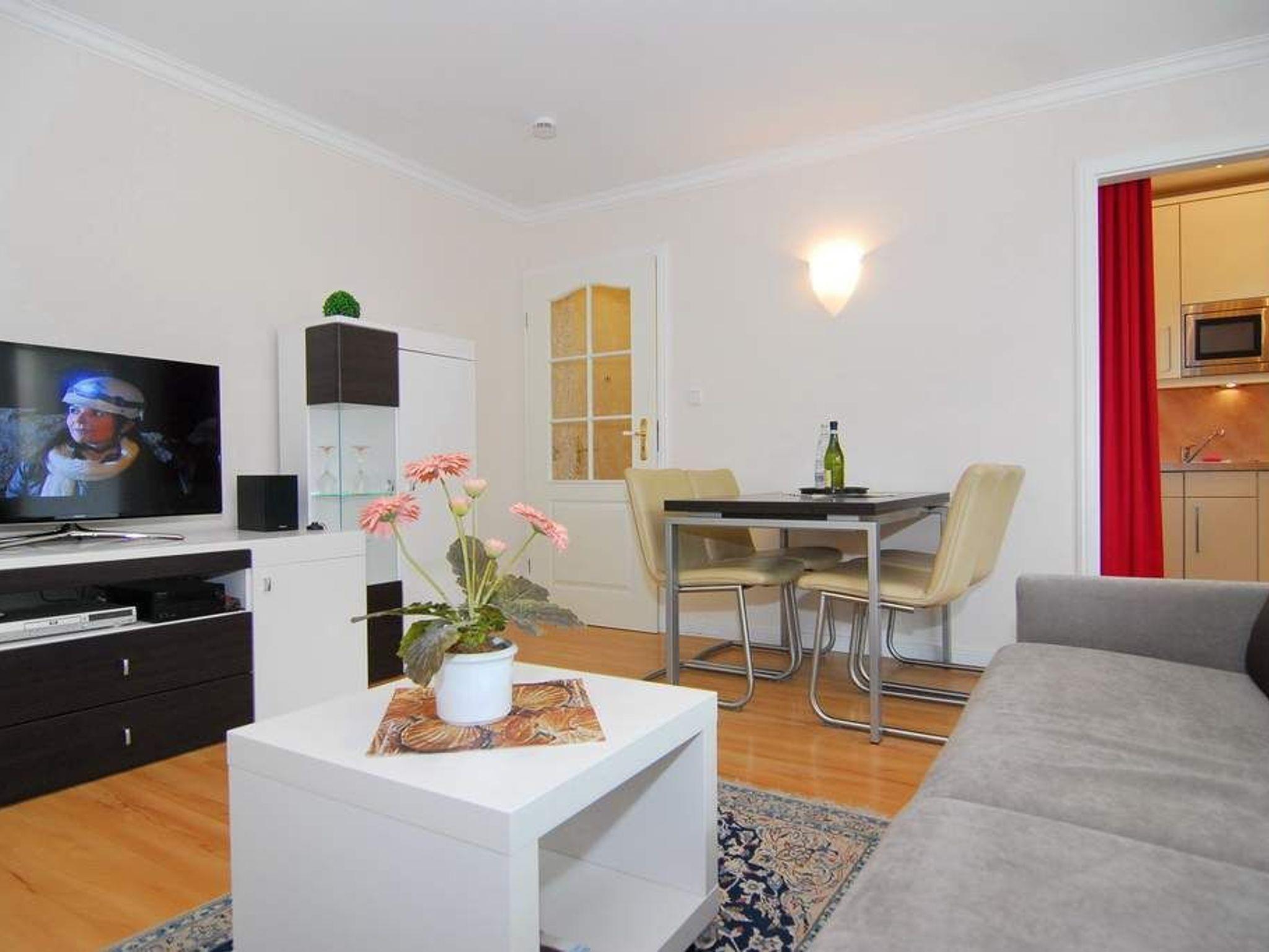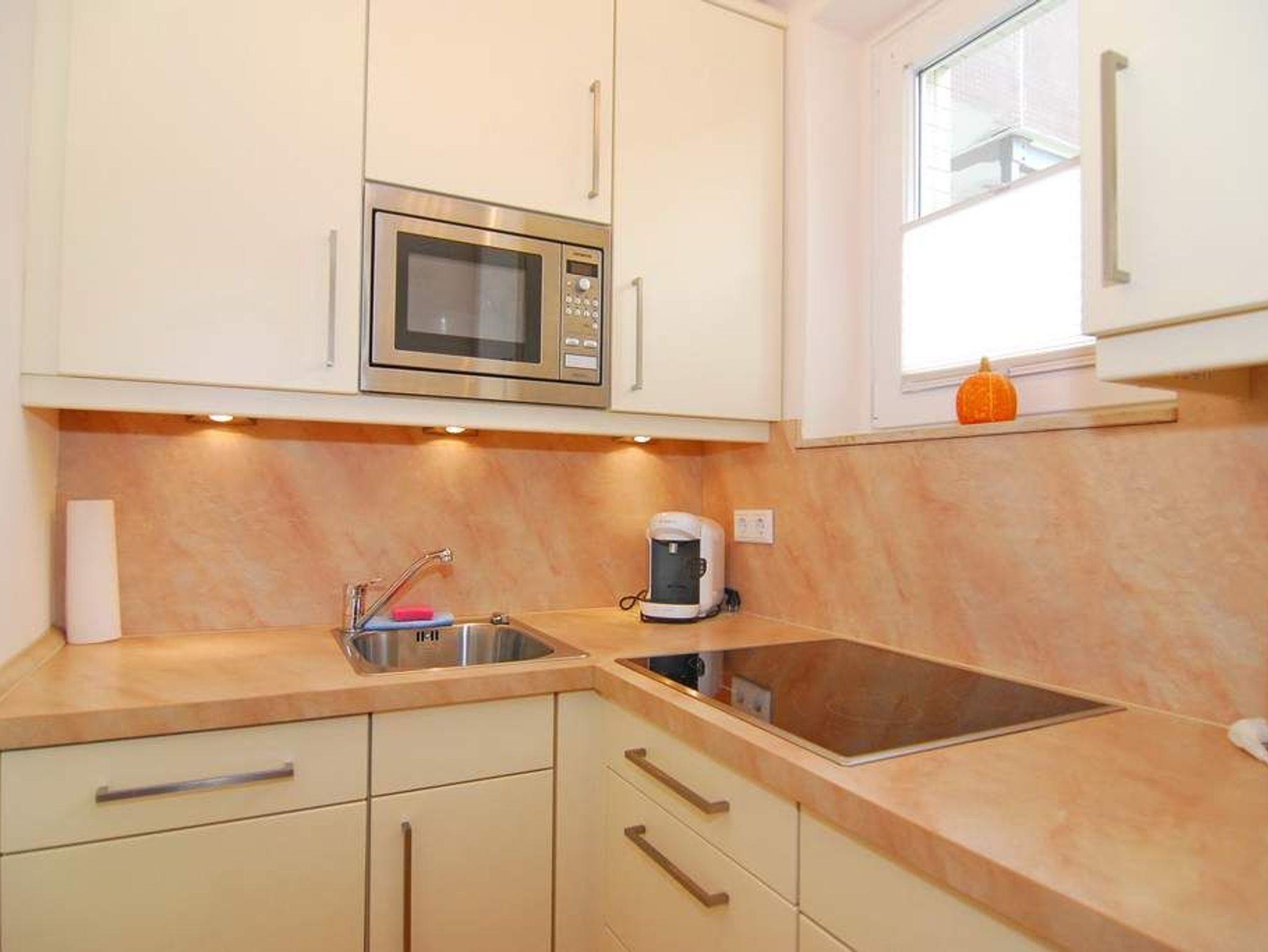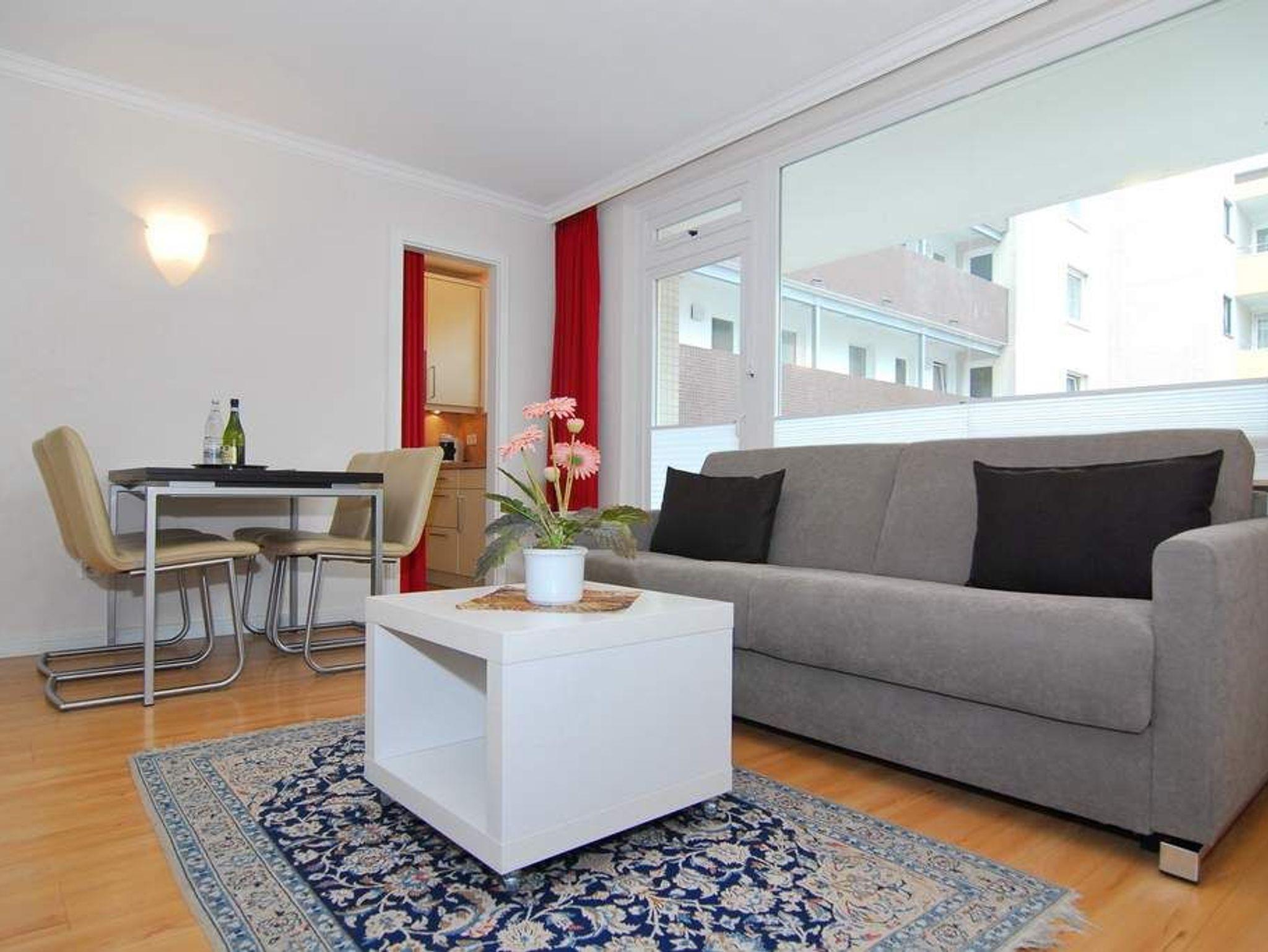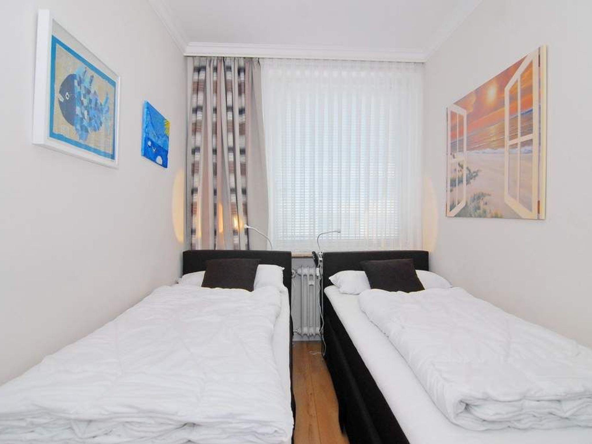 Moderne 2- Zimmer-Ferienwohnung im Haus Atlantik, 1 OG., ca. 35 m², Nichtraucher. Wohnraum mit Schlafcouch, Essplatz, TV, Internet (ohne Gewähr), DVD und Stereo- Anlage. Nord-Ost-Balkon mit Balkonmöbel, kleine Küche mit Mikrowelle und Geschirrspüler, Duschbad/ WC, Schlafzimmer mit 2 Einzelbetten (je 80x200 - zusammenschiebbar und elektr. höhenverstellbar)[nbsp][nbsp]und 1 Einzelbett (1,90x70). Die Wohnung ist komplett mit Laminat ausgelegt. Tierhaltung ist nicht gestattet. Wäschepaket sowie PKW- Stellplatz nur auf Bestellung.