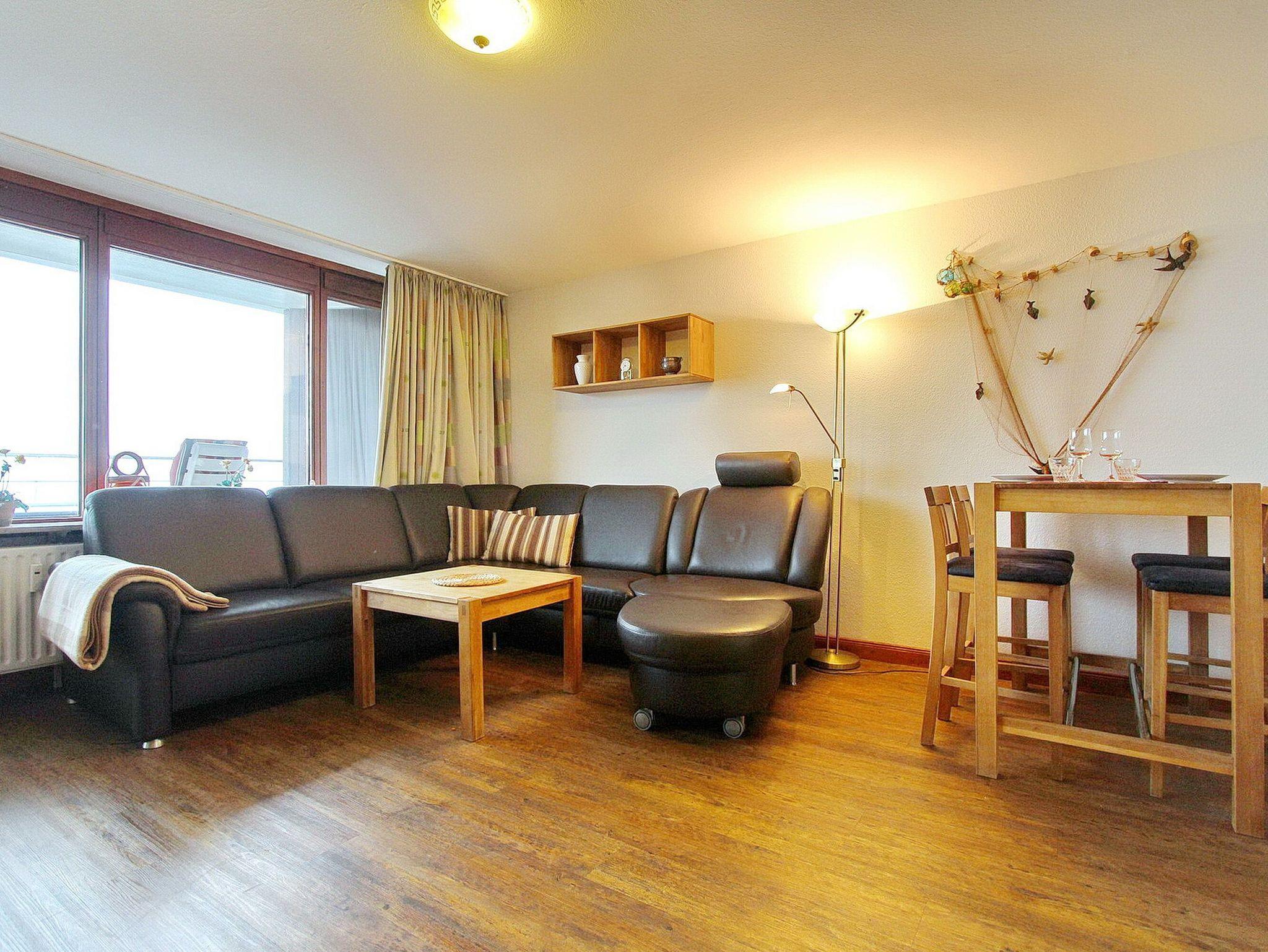 Schöne Einzimmerwohnung in der 3. Etage im Haus am Meer., einem gepflegten Appartementhaus im Zentrum von Westerland direkt am Hauptstrand. Die Wohnung hat einen vorgelagerten Westbalkon mit Blick auf die Nordsee. Der kombinierte Wohn-/Schlafraum ist mit einem Design-Fussboden in Holzoptik eingerichtet und verfügt über ein Doppelschrankbett einer gemütlichen Eck-Couchgarnitur und einem Essplatz mit 4 Stühlen. Die separate Küche ist mit einem Backofen , einem Cerankochfeld, einem Kühlschrank mit Gefrierfach und einer Geschirrspülmaschine ausgestattet. Das Badezimmer verfügt über eine große Duschkabine mit flachem Einstieg und einem Handtuchheizkörper. Ein kostenfreier WLAN Hot Spot (WEG Haus am Meer - Passwortfrei - ohne Gewähr) ist vorhanden. Diese Nichtraucherwohnung hat eine Größe von ca. 42 m².