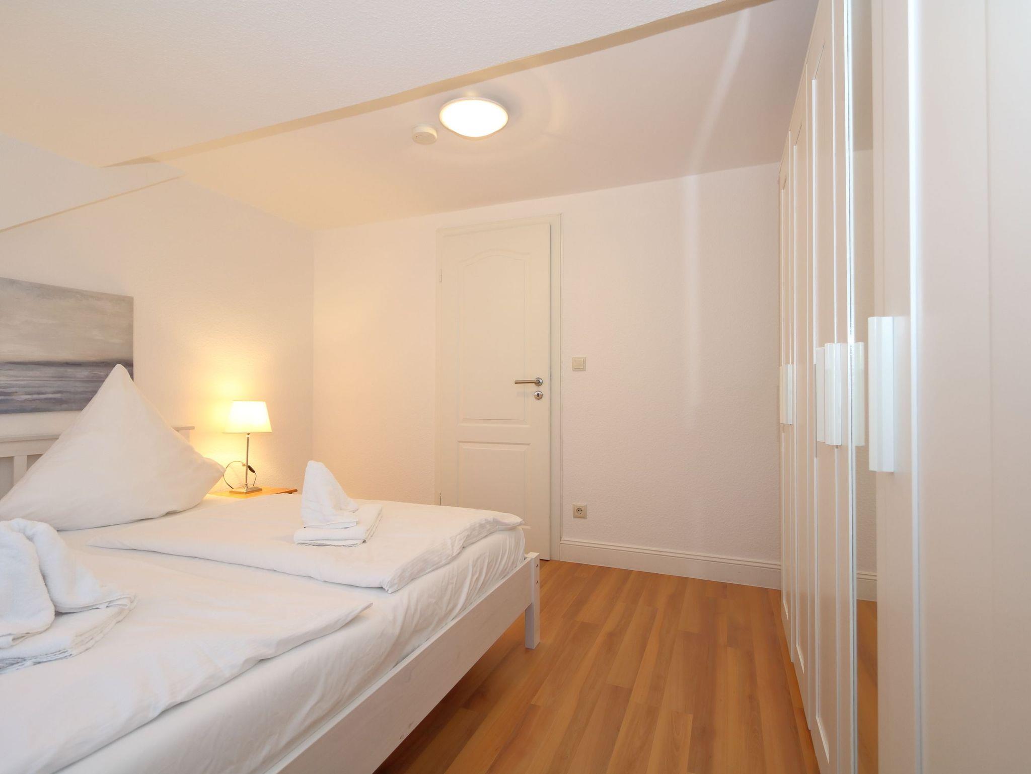 Im Flur befindet sich eine Garderobe. Von hier aus kommen Sie in das moderne Duschbad oder in das neue Schlafzimmer mit Doppelbett und großem Kleiderschrank.