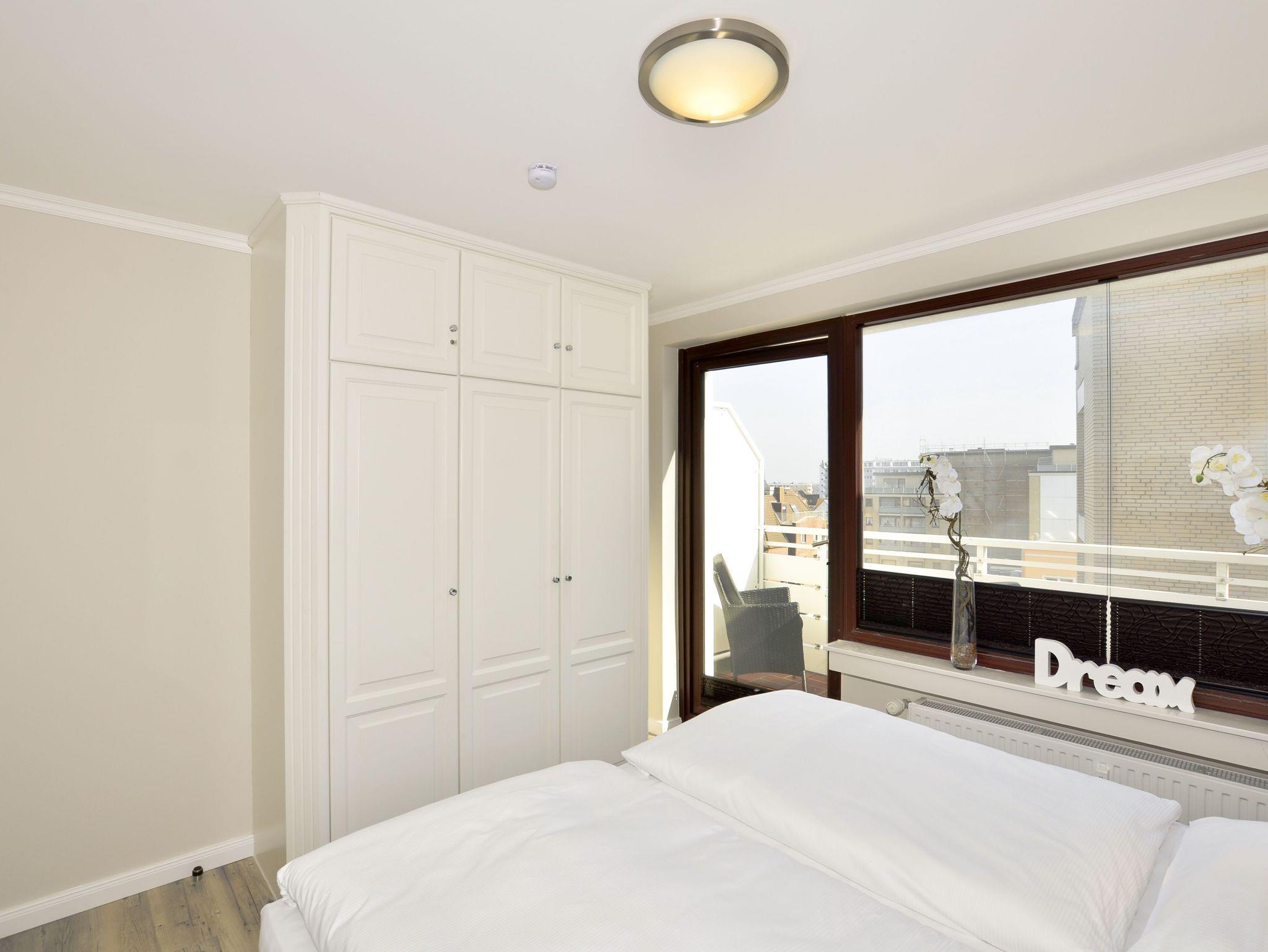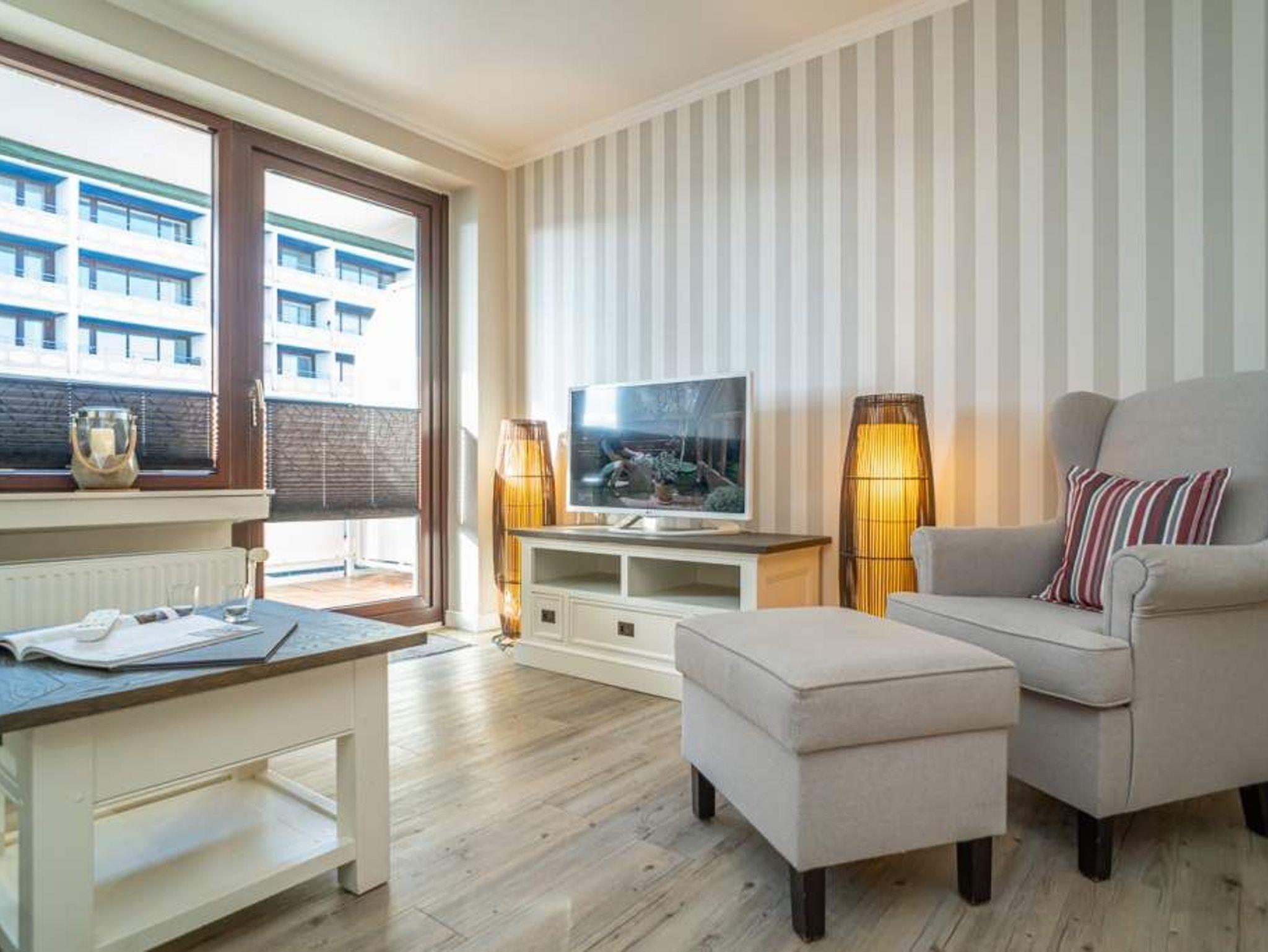 Diese hochwertig und komplett renovierte 2-Zimmer-Nichtraucherwohnung bietet auf ca. 48 m² modernes Wohngefühl und lichtdurchfluteten Komfort für bis zu zwei Personen. Die Wohnung befindet sich in der 4. Etage und begeistert mit zwei herrlichen Außenbereichen: einem Ostbalkon mit Morgensonne ideal für das Frühstück im Freien sowie einer Westloggia mit Balkonmöbeln, Auflagen und einem Strandkorb, perfekt für entspannte Nachmittage mit Blick in Richtung Meer.