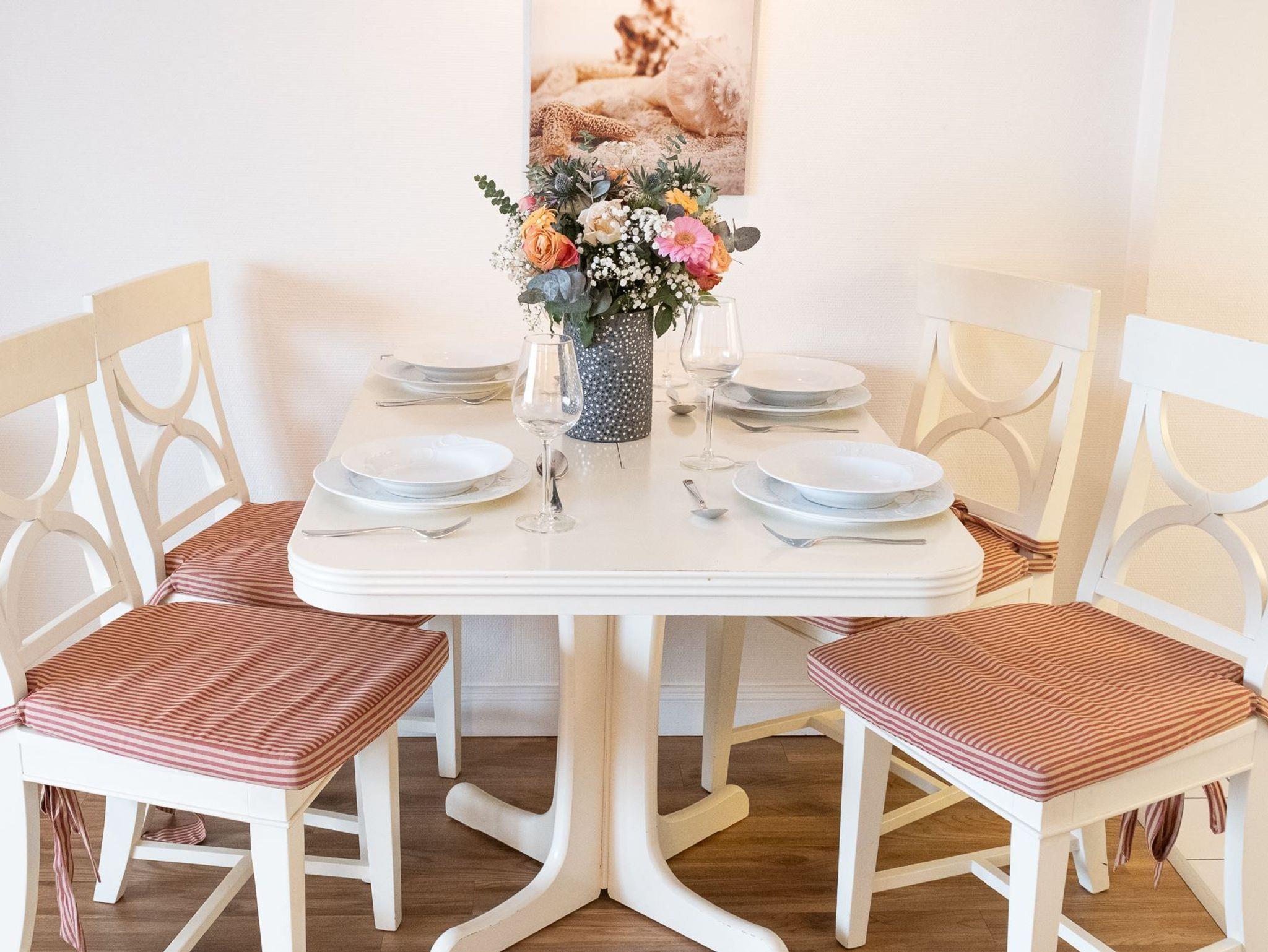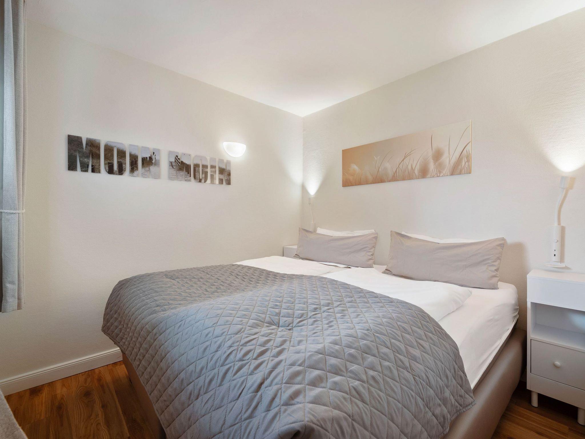 Die Wohnung verfügt über ein Wohnzimmer mit Schlafcouch und einem Smart-TV. Der gemütliche Essplatz befindet sich ebenfalls im Wohnzimmer. Die Küchenzeile verfügt über ein Kochfeld, Geschirrspüler, Mikrowelle, Kaffeemaschine, Toaster und Wasserkocher. Das Schlafzimmer verfügt über ein neues, bequemes Boxspringbett.(Bilder folgen) Die Wohnung hat zudem ein großes Badezimmer mit Dusche/WC.