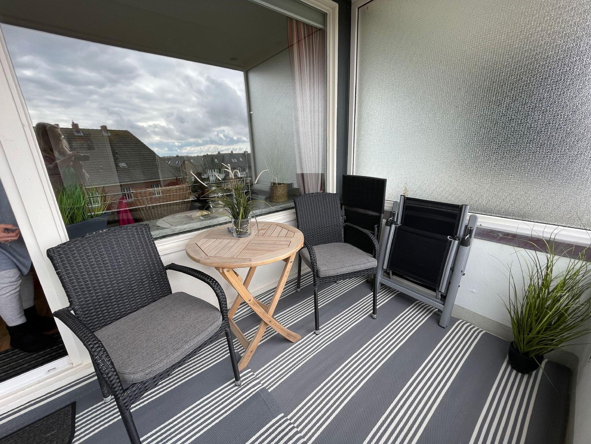 Wunderschöne 2-Zimmer Wohnung im 2. OG in zentraler und sehr strandnaher Lage, direkt am Strandübergang Käptn-Christiansen mit großem Süd/Ost Balkon und Blick auf die Dünen.