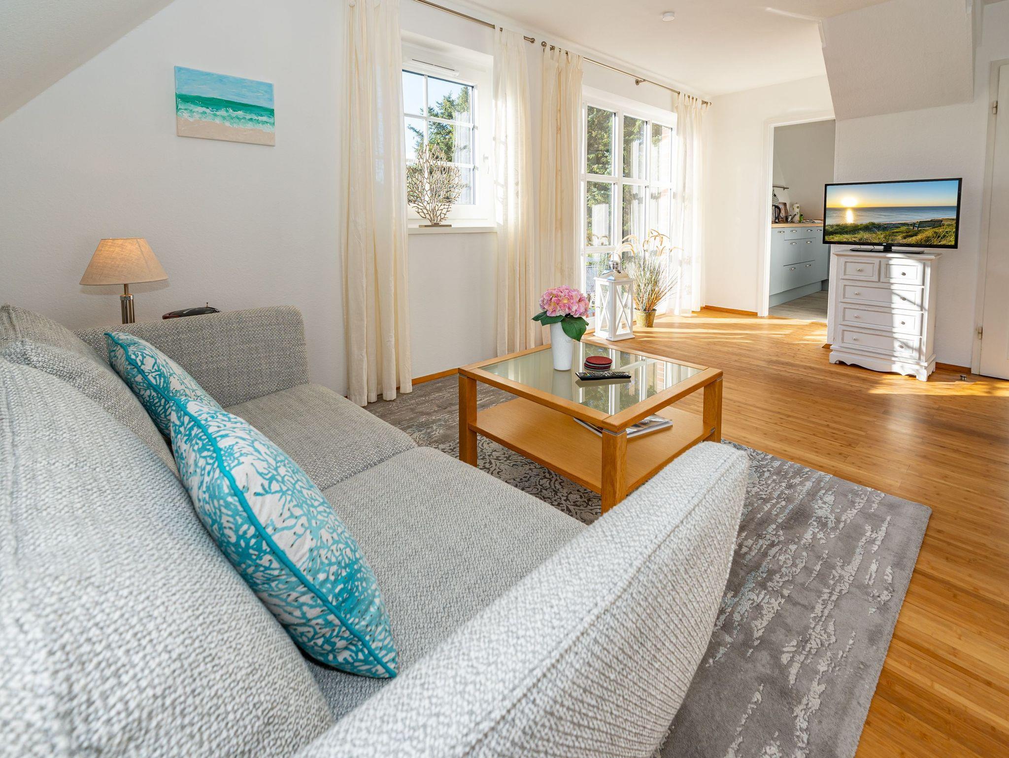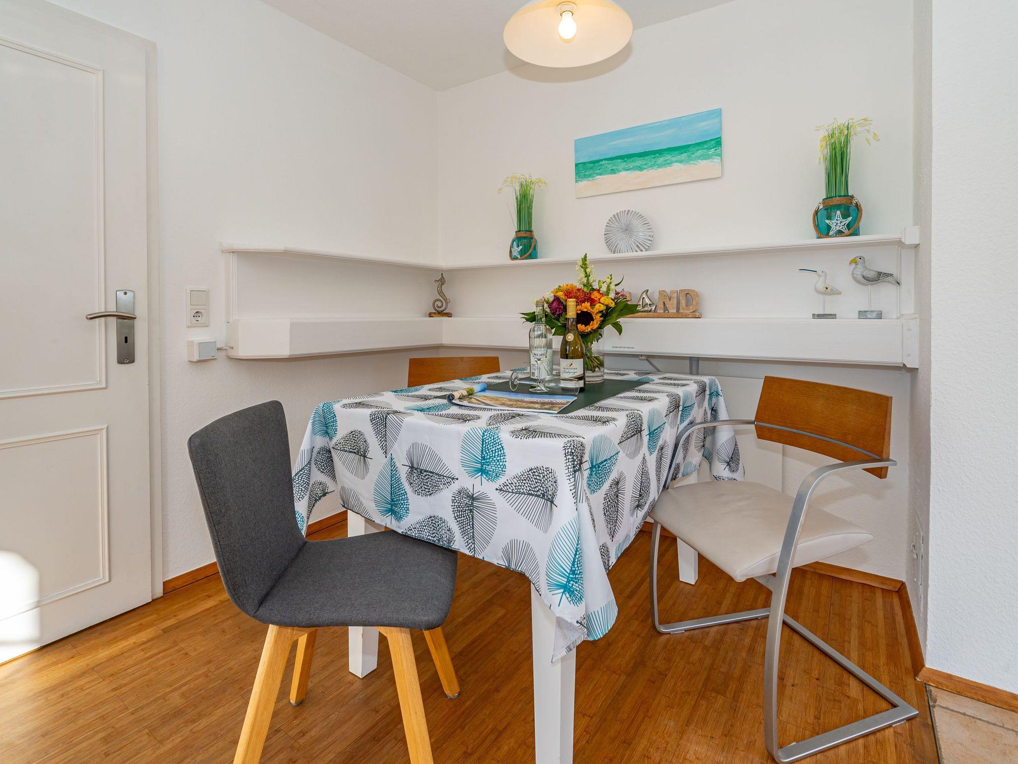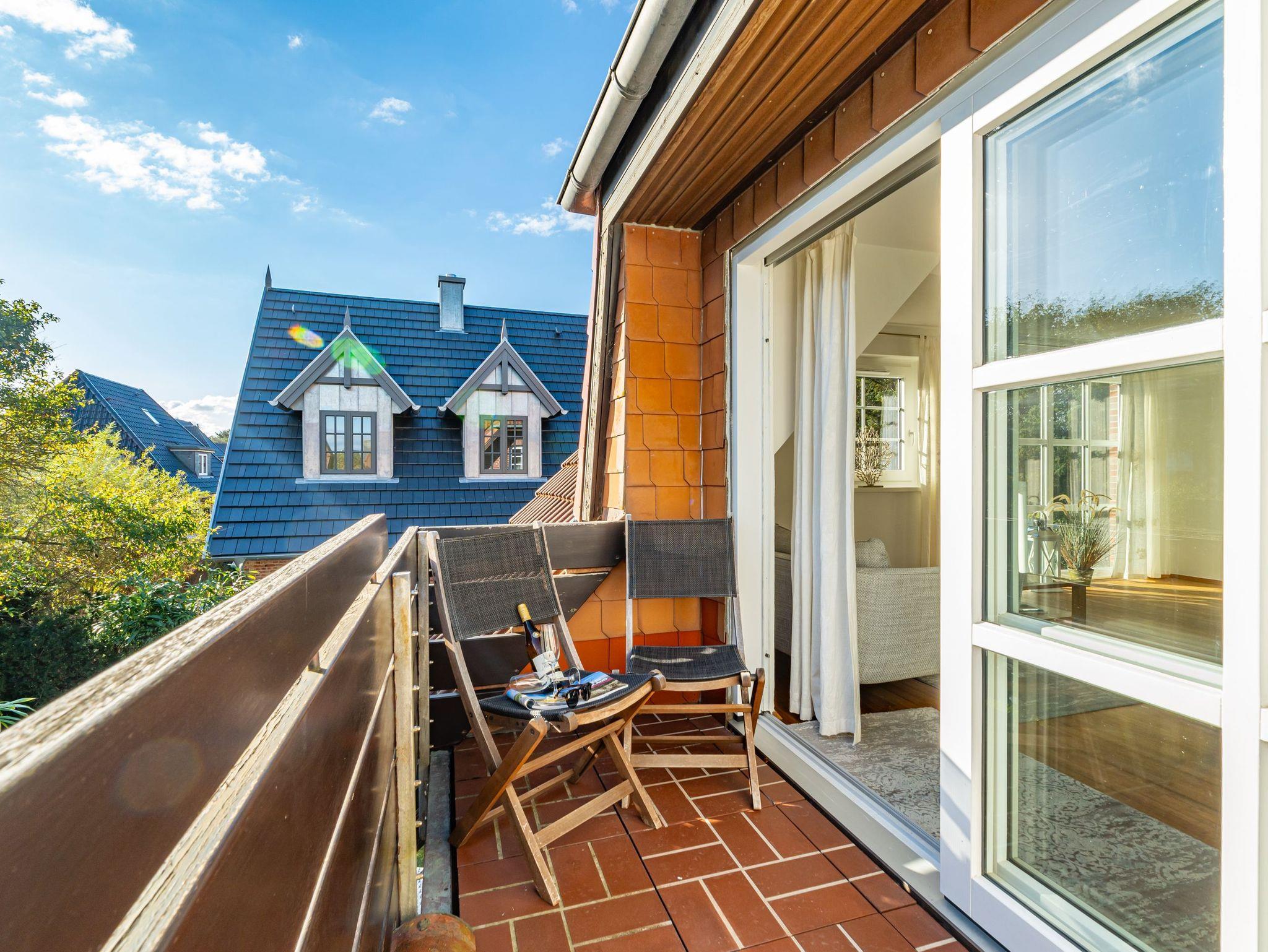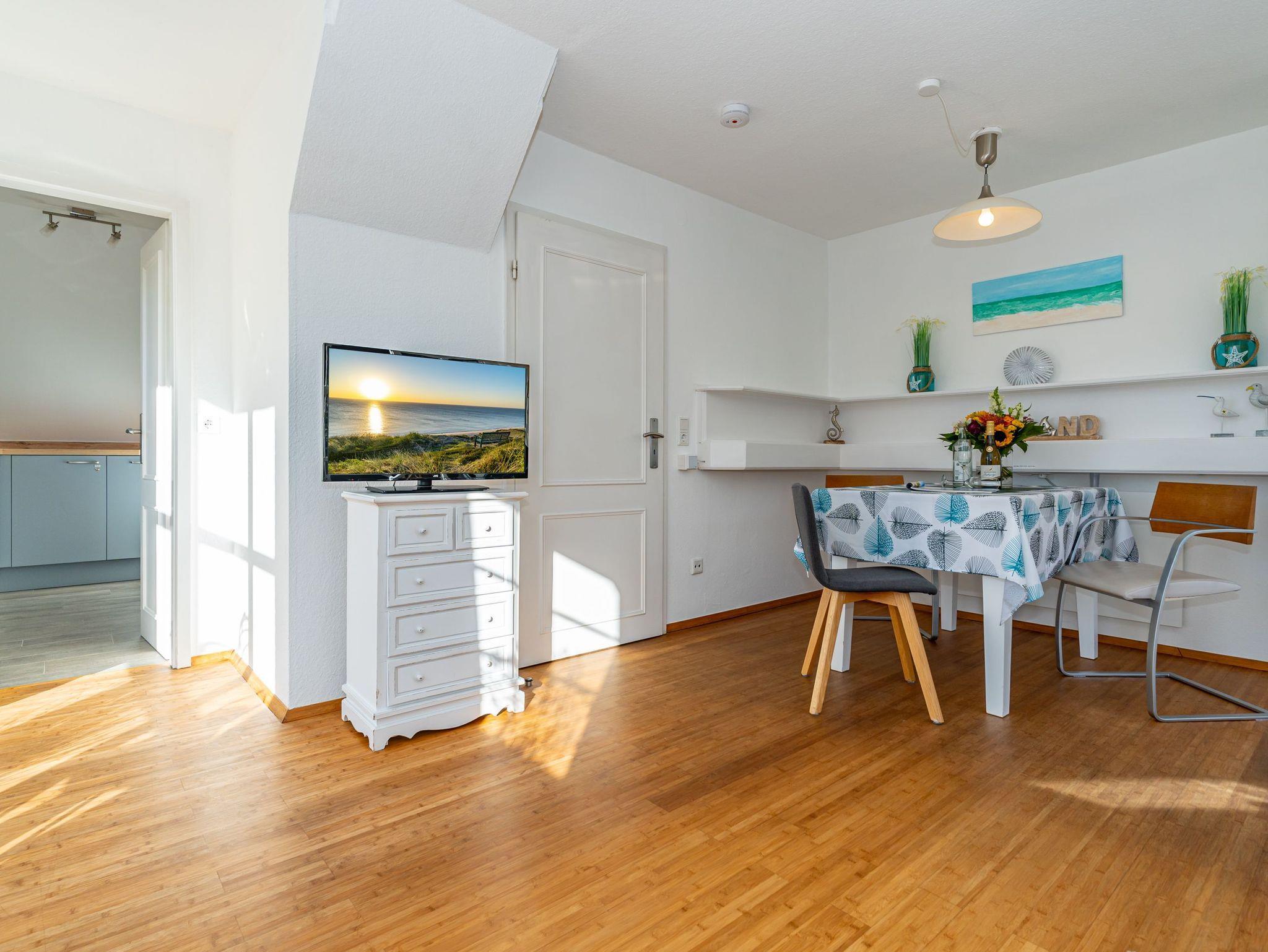 Moderne 2-Zimmer-Ferienwohnung in Westerland mit Südbalkon, Kamin und eigenem Stellplatz, nur 400 m vom Strand entfernt.