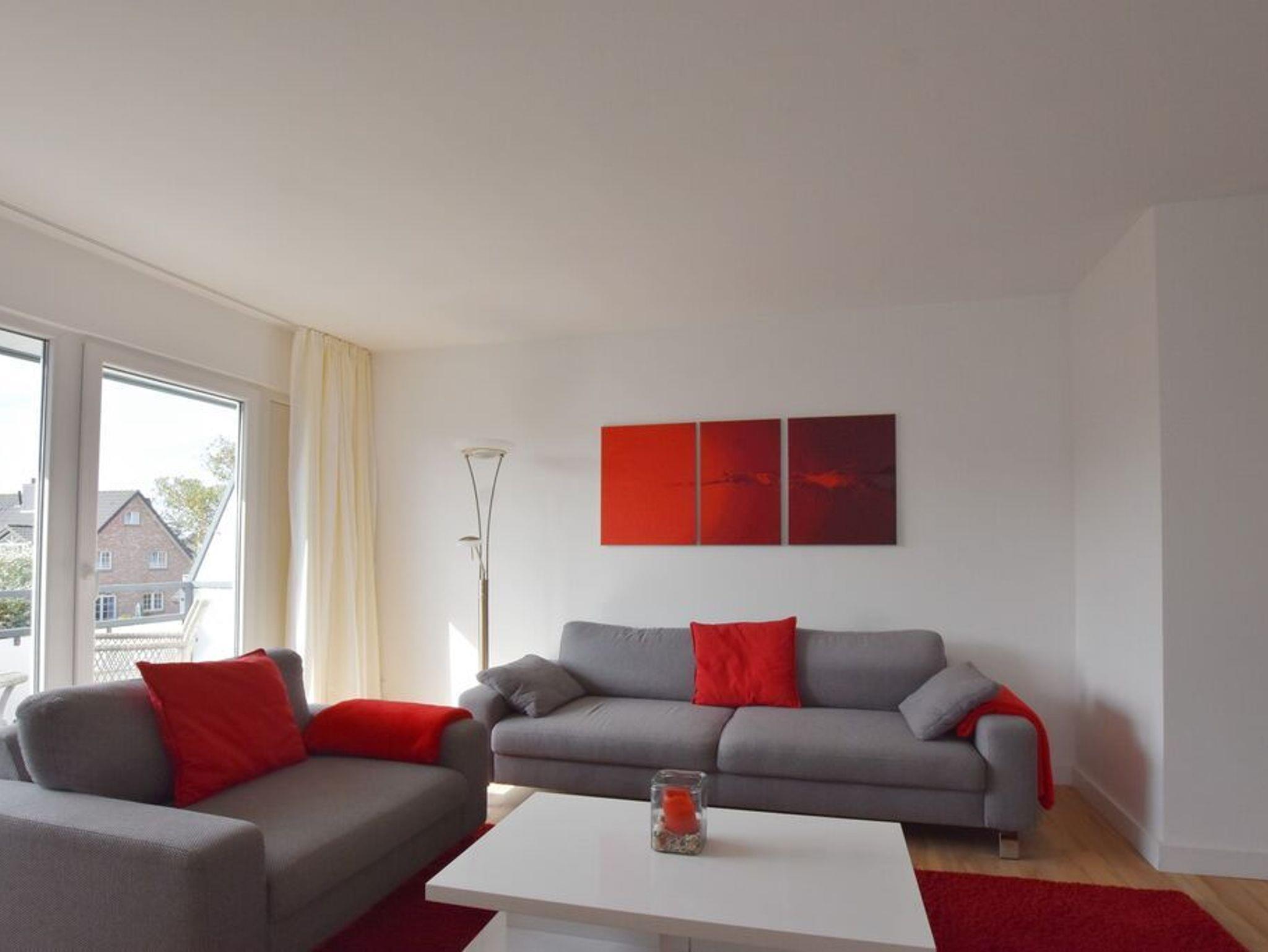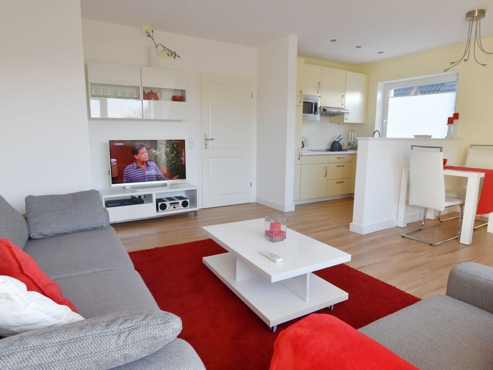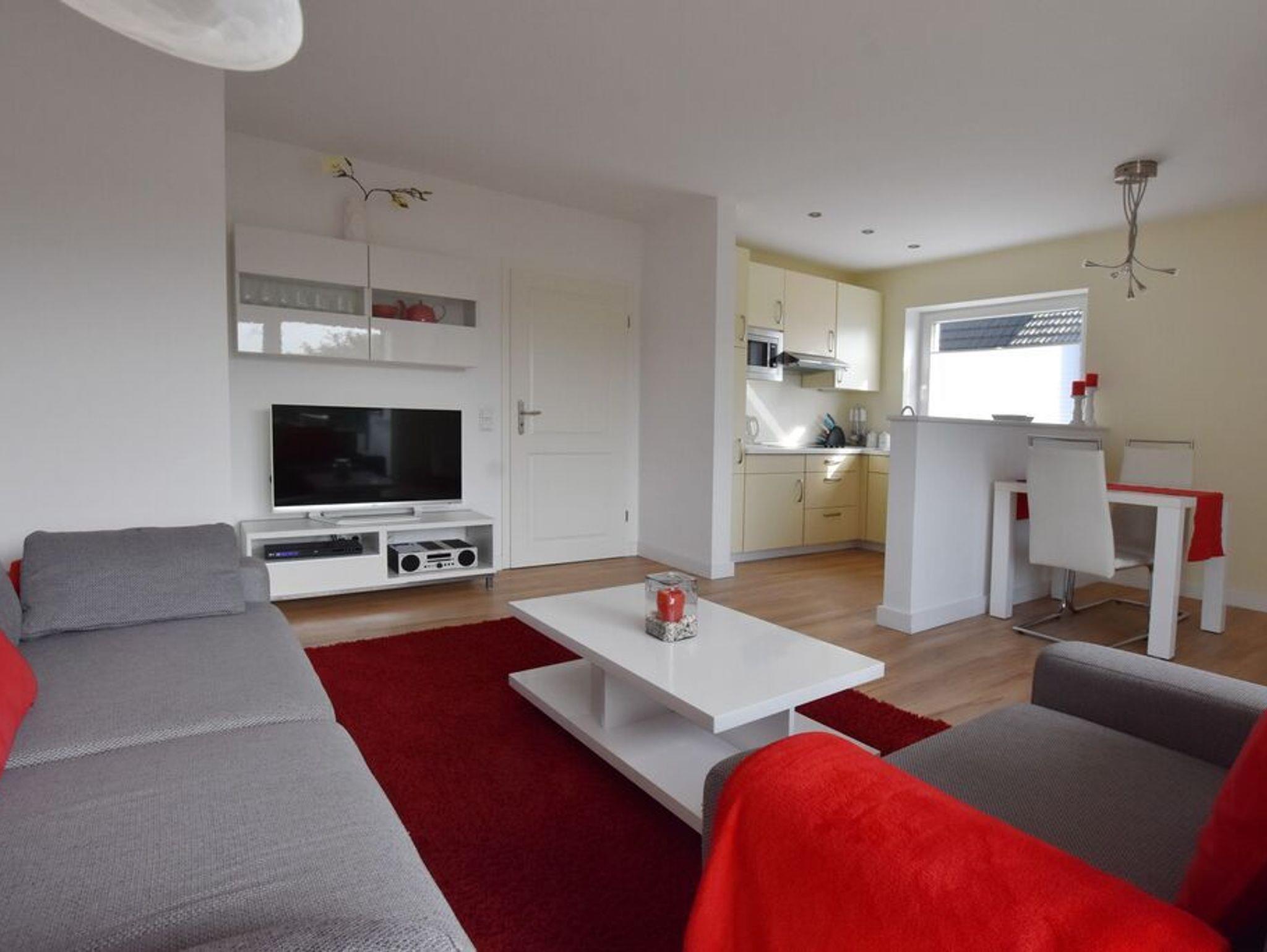 Schöne 2-Zimmer-Ferienwohnung ( Obergeschoss ) in ruhiger Lage Westerlands mit Wohnzimmer, anschliessendem möbliertem Balkon, der nach Westen ausgerichtet ist. Das Wohn- / Esszimmer verfügt über eine offene Küche mit Essecke und Couch. Ein großer Flatscreen-Fernseher mit Blue-Ray-Player und vielen Extras gehört ebenfalls zur Ausstattung. Das Schlafzimmer verfügt über ein Doppelbett und ein zusätzliches TV.