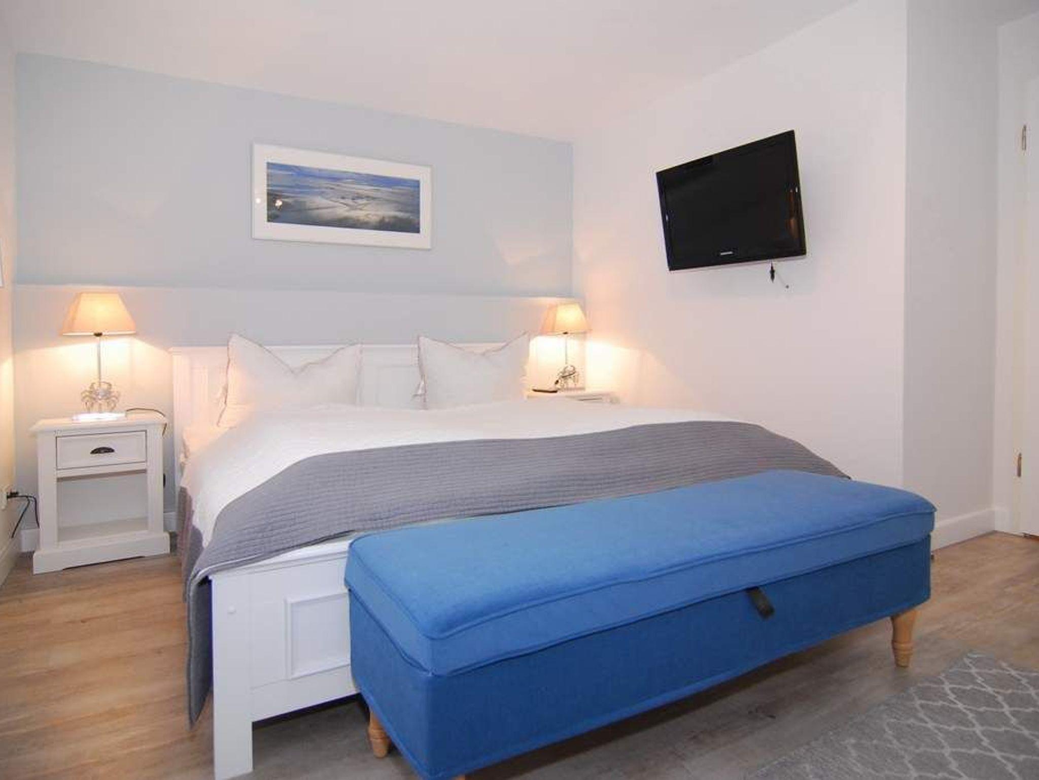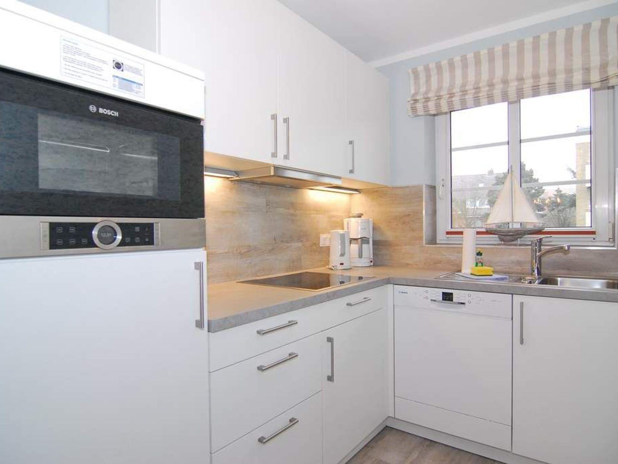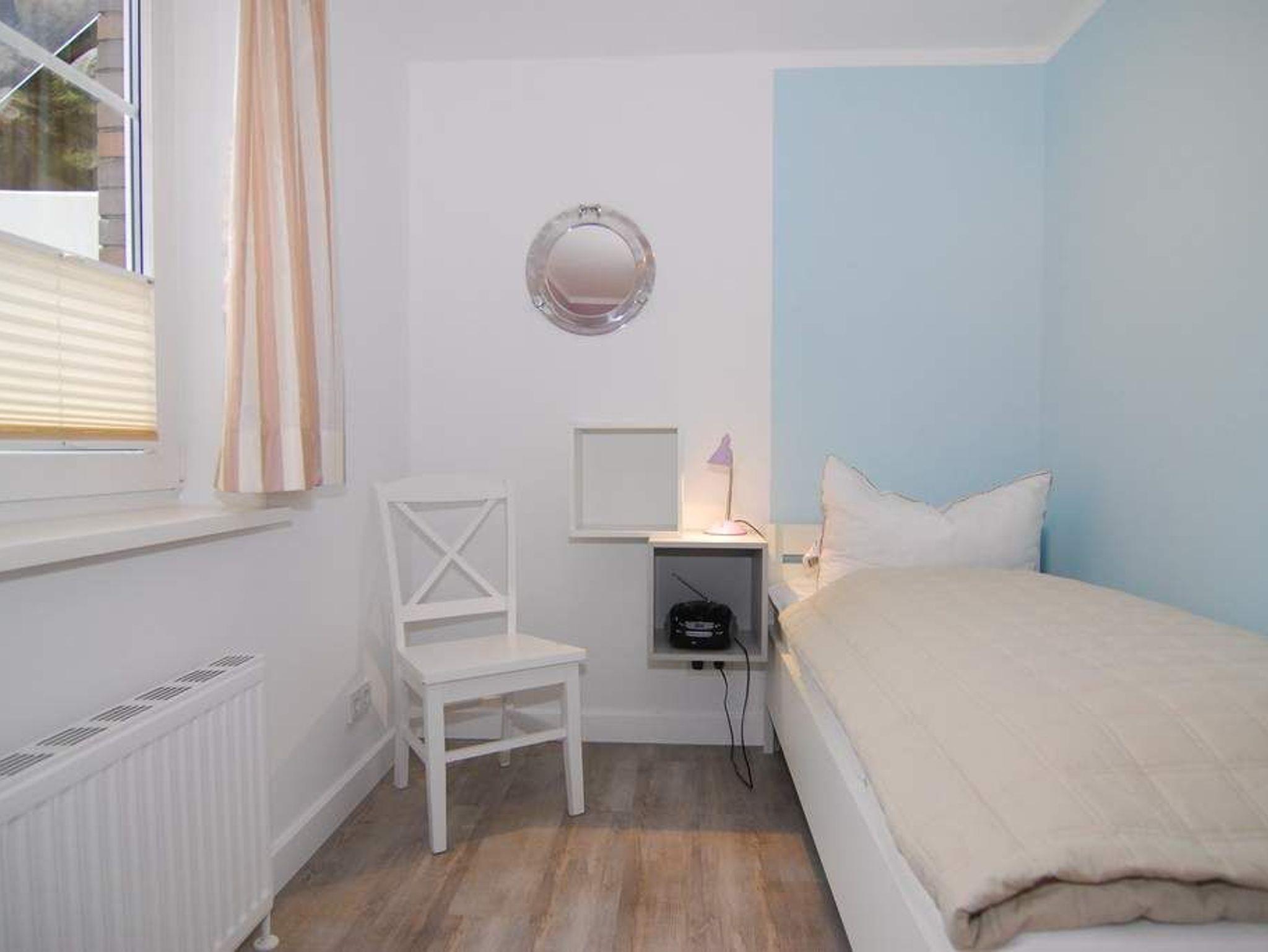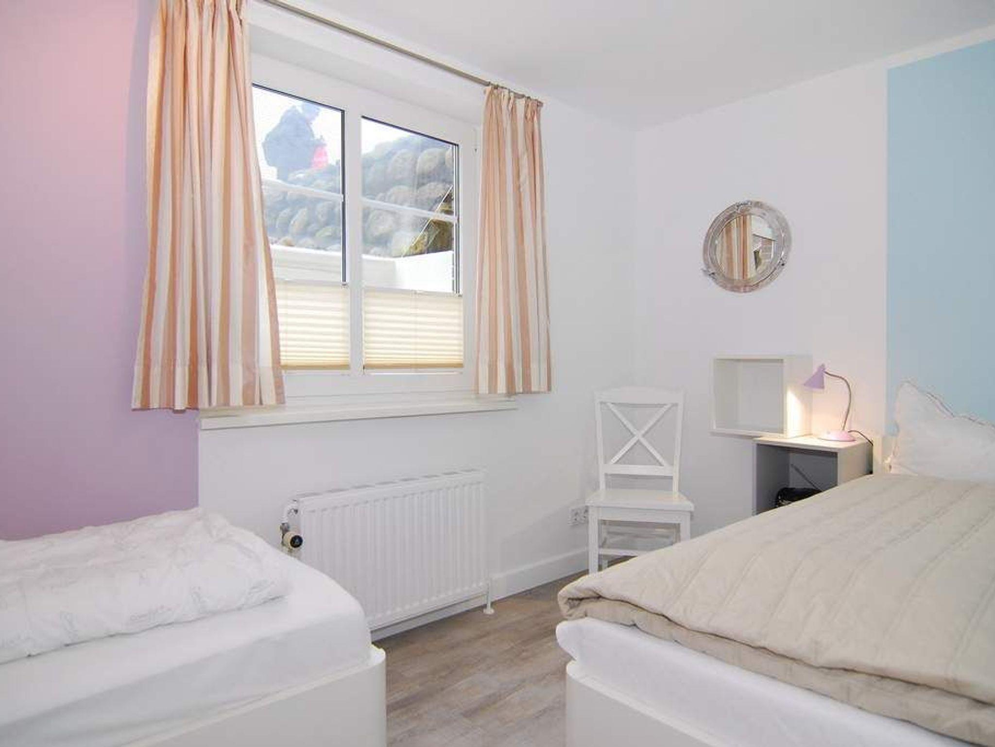 Moderne 3-Zimmer-Ferienwohnung mit Südterrasse im Haus Olympia I, Strandkorb (Apr.-Okt.), ca. 71m². EG: Wohnzimmer mit Sitzecke, Essecke und offener Küche mit Geschirrspüler und Mikrowelle, Kabel-TV und Radio, W-LAN ohne Gewähr. UG: 1 Schlafzimmer mit Doppelbett, 1 Schlafzimmer mit 2 Einzelbetten (80x190), Duschbad/WC. Nichtraucherwohnung. Tierhaltung ist nicht gestattet. Unter Haus 4 befindet sich das Schwimmbad mit Finnischer Sauna. Unter Haus 2 befindet sich ein separater Wellnessbereich mit Dampfsauna, Finnischer Sauna und Ruhebereich. Eine Waschküche mit Gemeinschaftswaschmaschine/Trockner ist vorhanden. Offenes W-LAN-Netzwerk steht zur Verfügung (ohne Gewähr). Bettwäsche und Handtücher sind zur Anreise aufgezogen. Ein Garagenstellplatz kann kostenpflichtig gebucht werden!