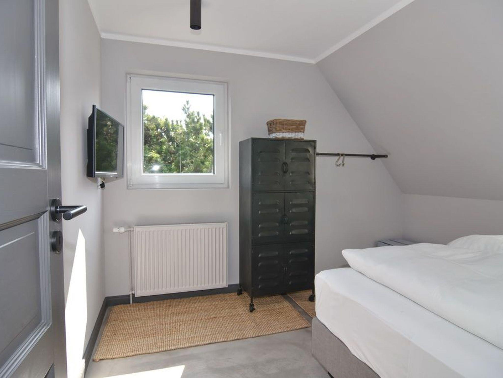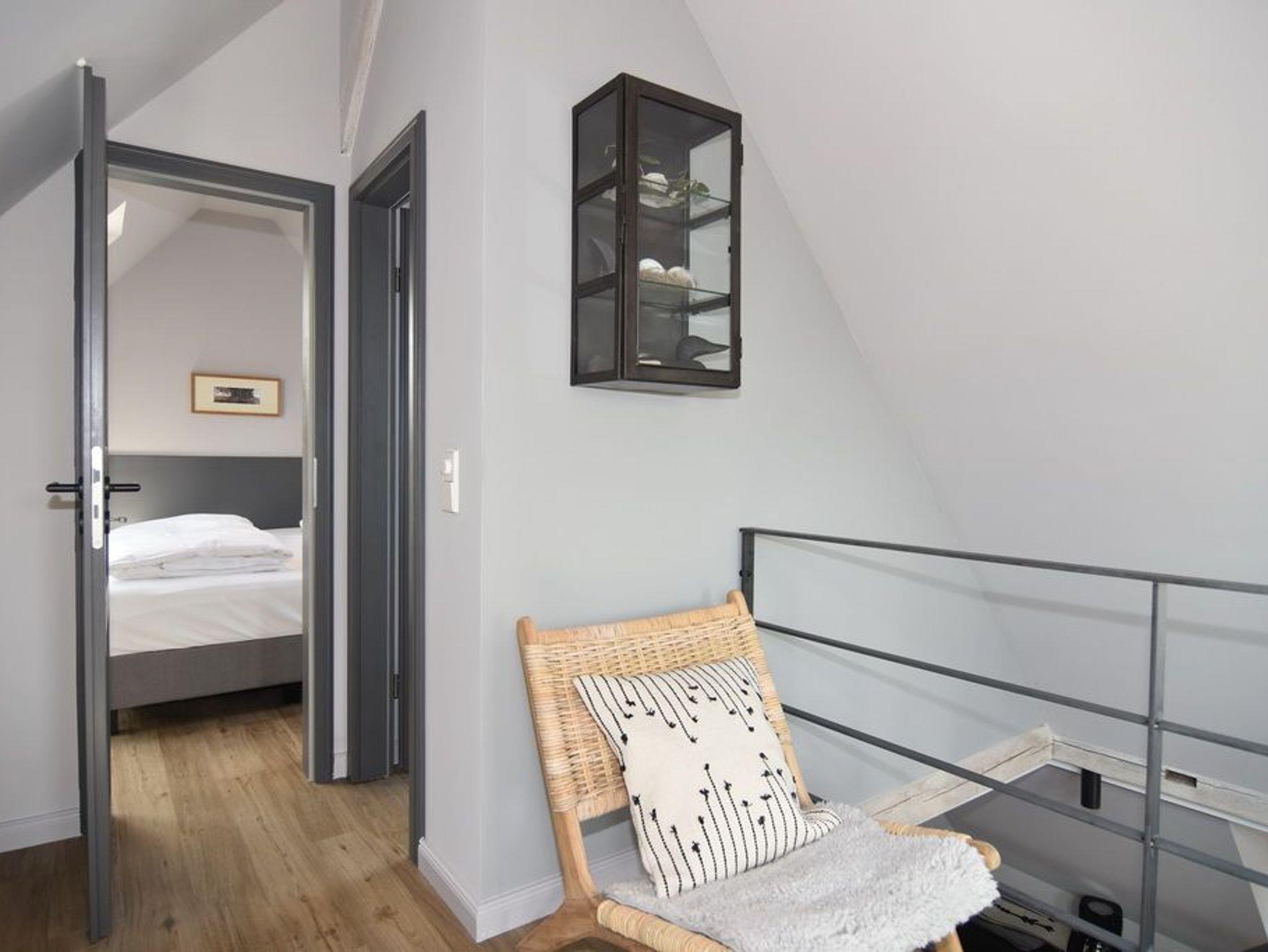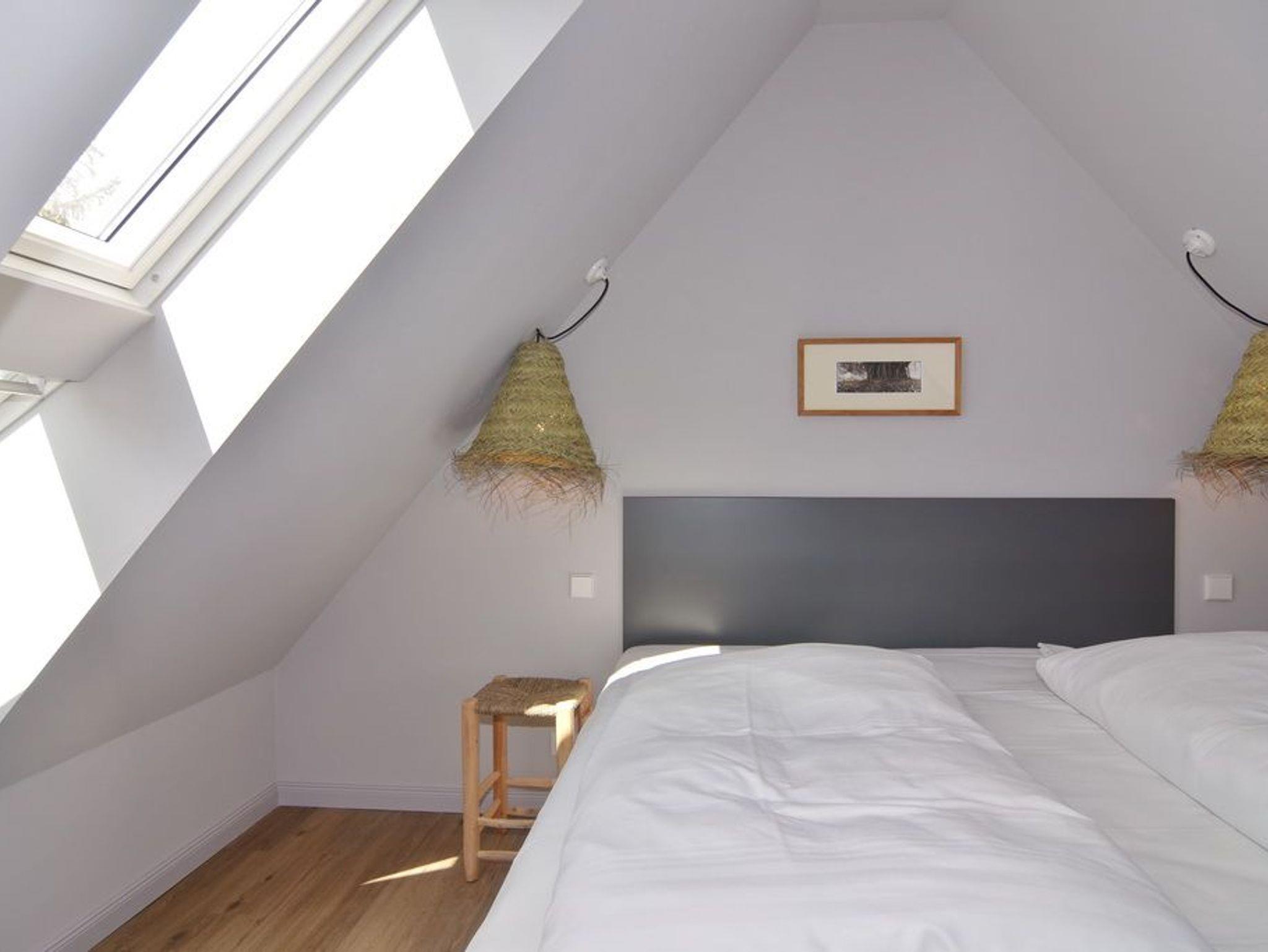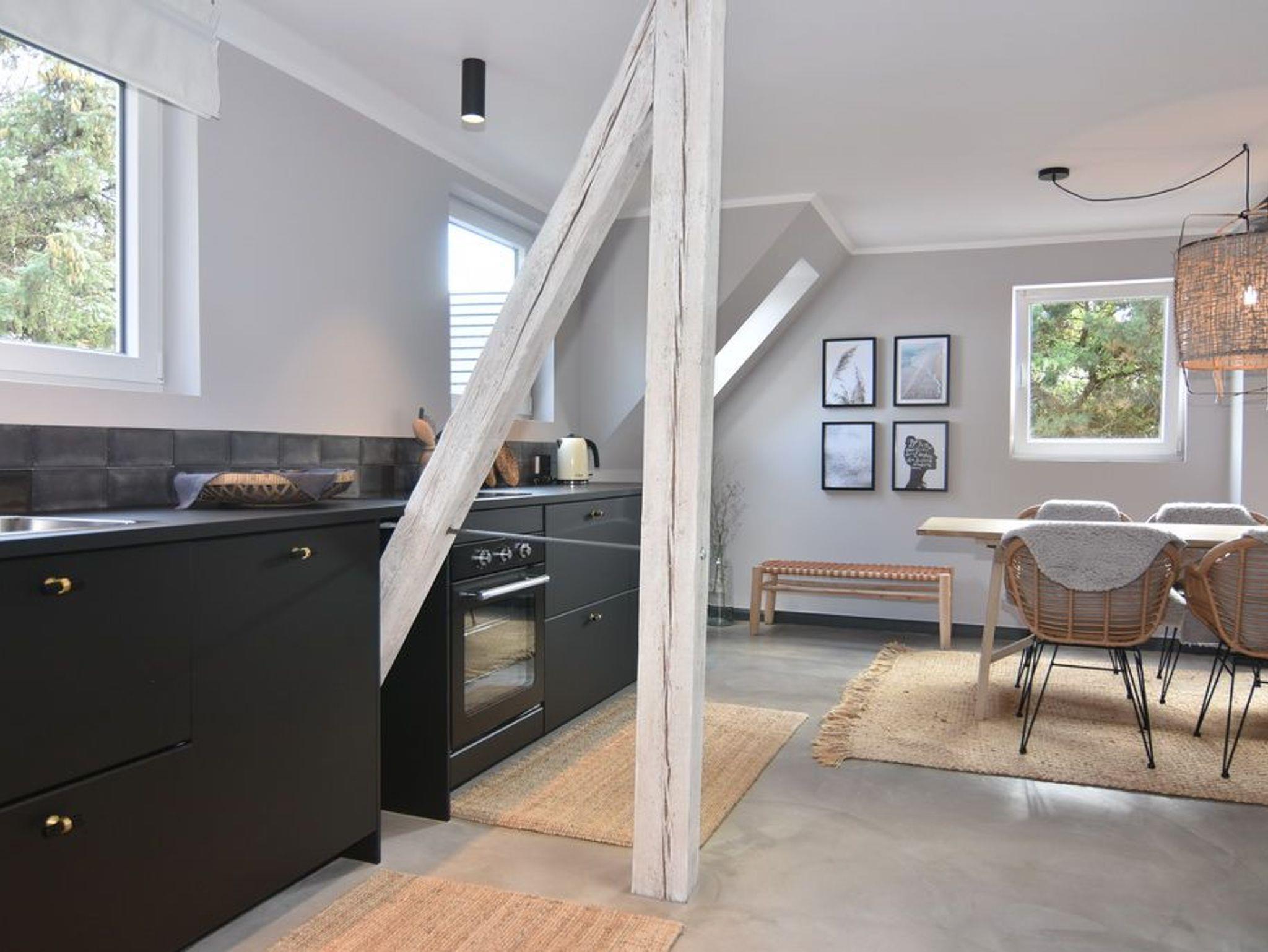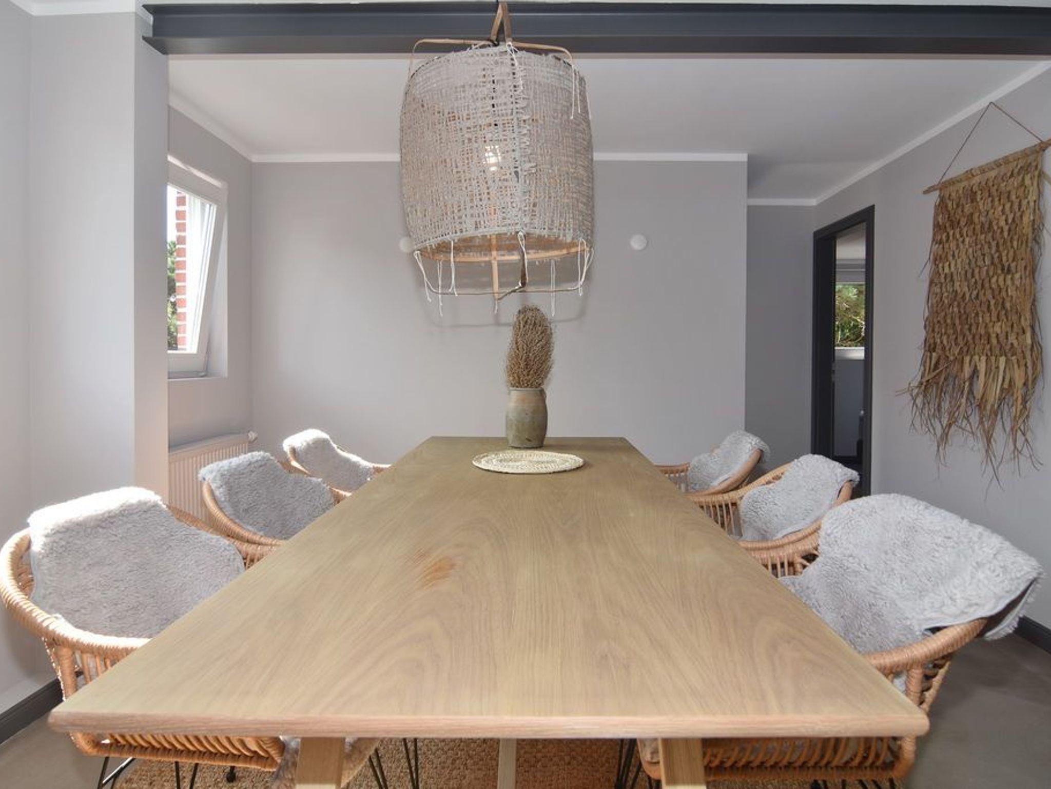 Direkt hinter den Dünen gelegen und dem Strand ganz nah. Hier wohnen Sie in einer 5-Zimmer-Maisonette-Wohnung mit ca. 88qm. Zentrum der Wohnung ist die wunderschöne Wohnküche mit einem Essplatz für bis zu 6 Personen. Die Küche verfügt über Geschirrspüler und Backofen. Auf selber Ebene befinden sich zwei Schlafzimmer jeweils mit Doppelbett (160x200), Kleiderschrank / Spint und TV. Auf dieser Ebene befindet sich ein Duschbad / WC, ein Duschbad /WC ensuite und ein großzügiger Eingangsbereich. Aus der Wohnküche geht eine offene Metalltreppe ins Dachgeschoß (Achtung: offenes Treppengeländer, für Kleinkinder nicht geeignet). Hier befindet sich ein weiterer Schlafraum mit Doppelbett (180x200), TV und Kommode, ein Gäste-WC und der Wohnbereich mit gemütlicher Sitzgruppe, TV und großen, bodentiefen Veluxfenstern. Waschmaschine, Internet ist vorhanden. Bettwäsche und Handtücher sind zur Anreise aufgezogen. Parken in der Straße möglich. Gemeinschaftlicher, kleiner Außenbereich vor dem Haus mit Sitzmöbeln. Tierhaltung und Rauchen sind im Objekt verboten.