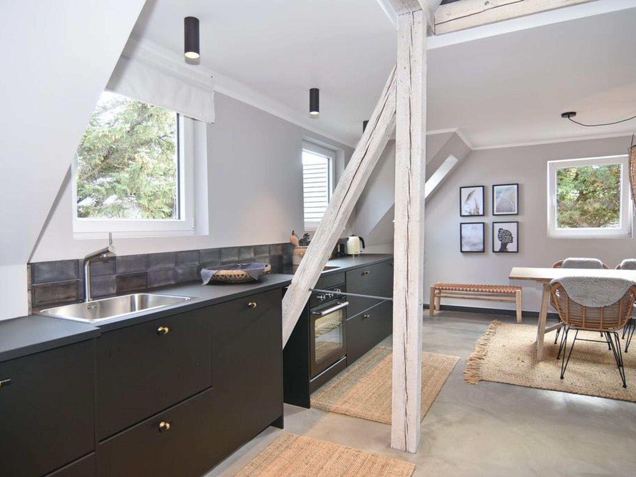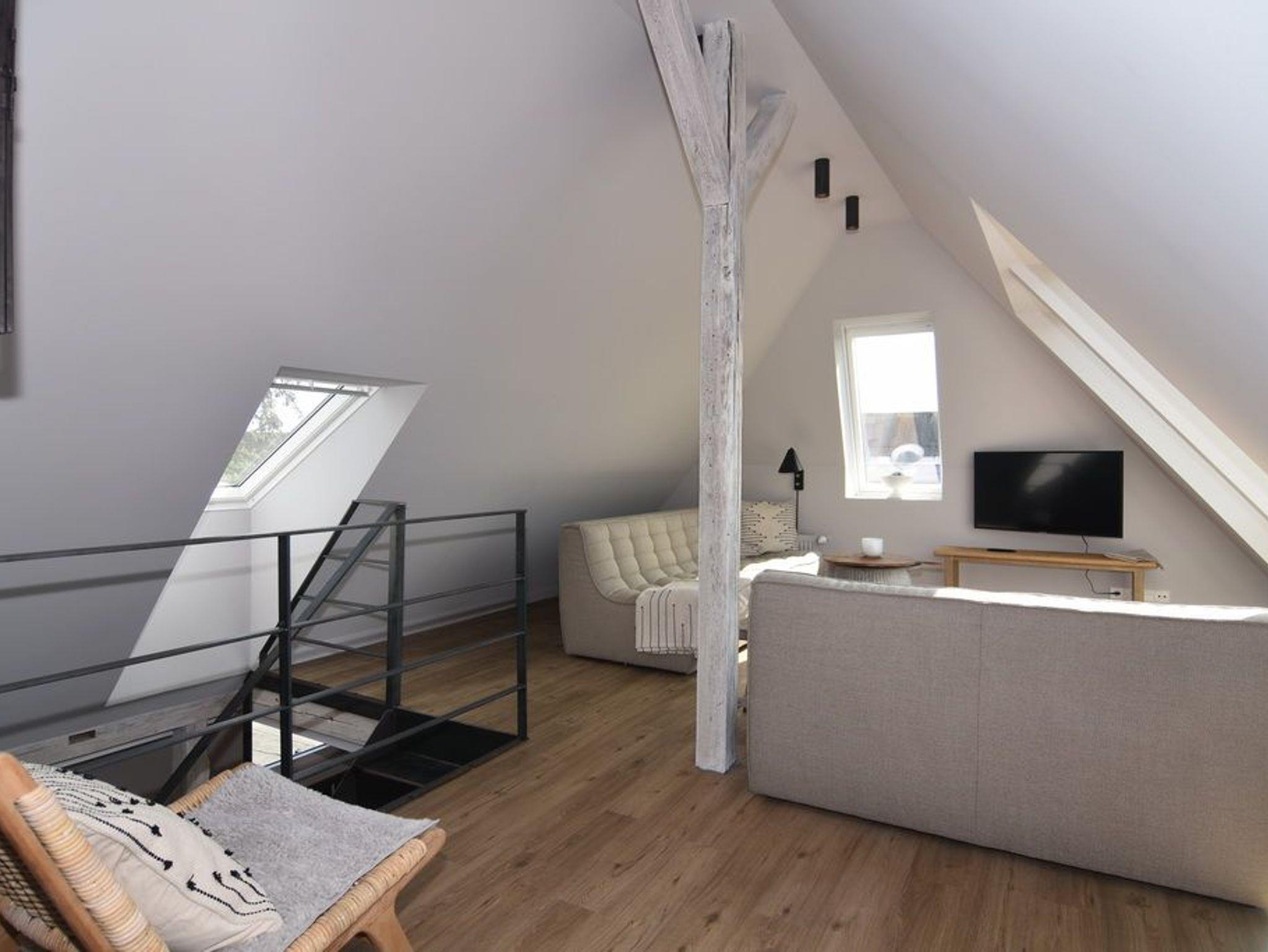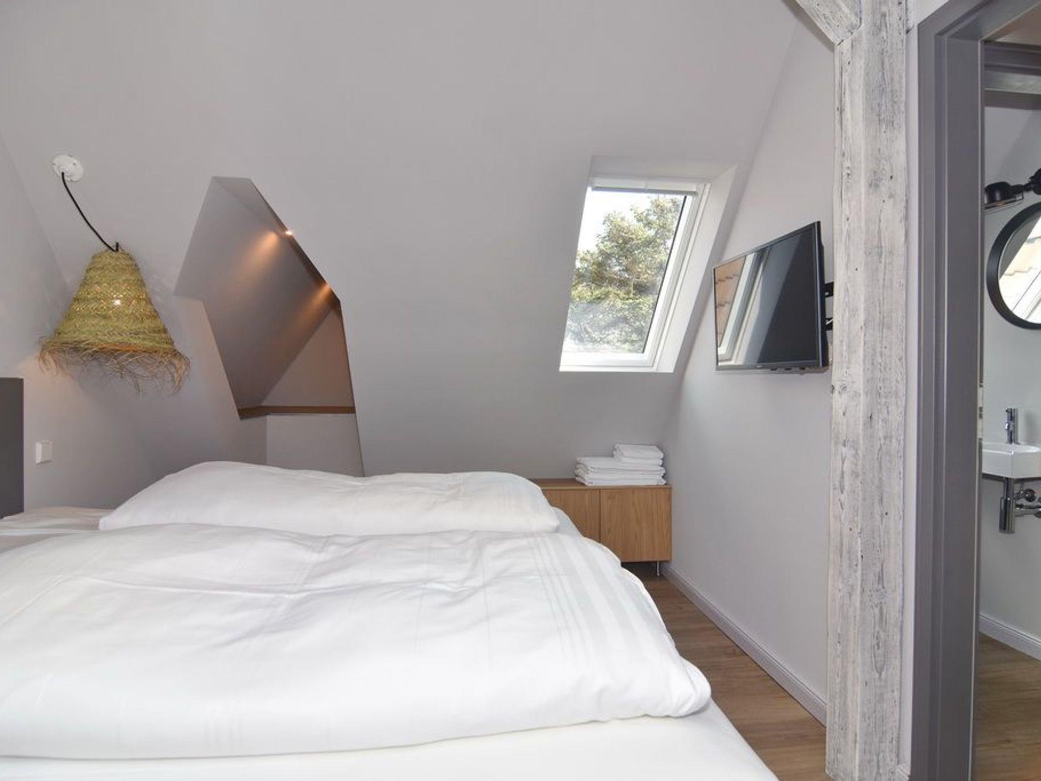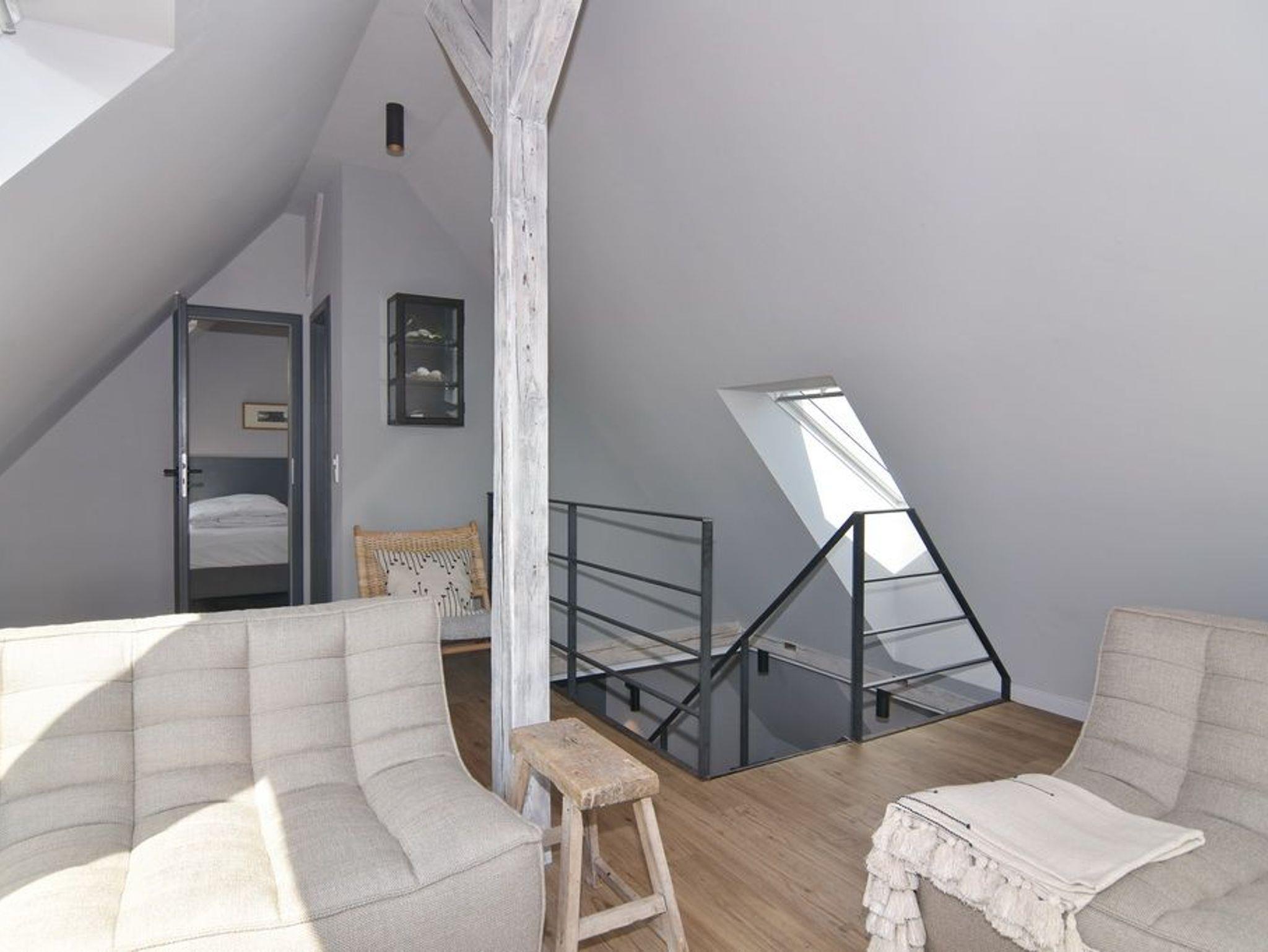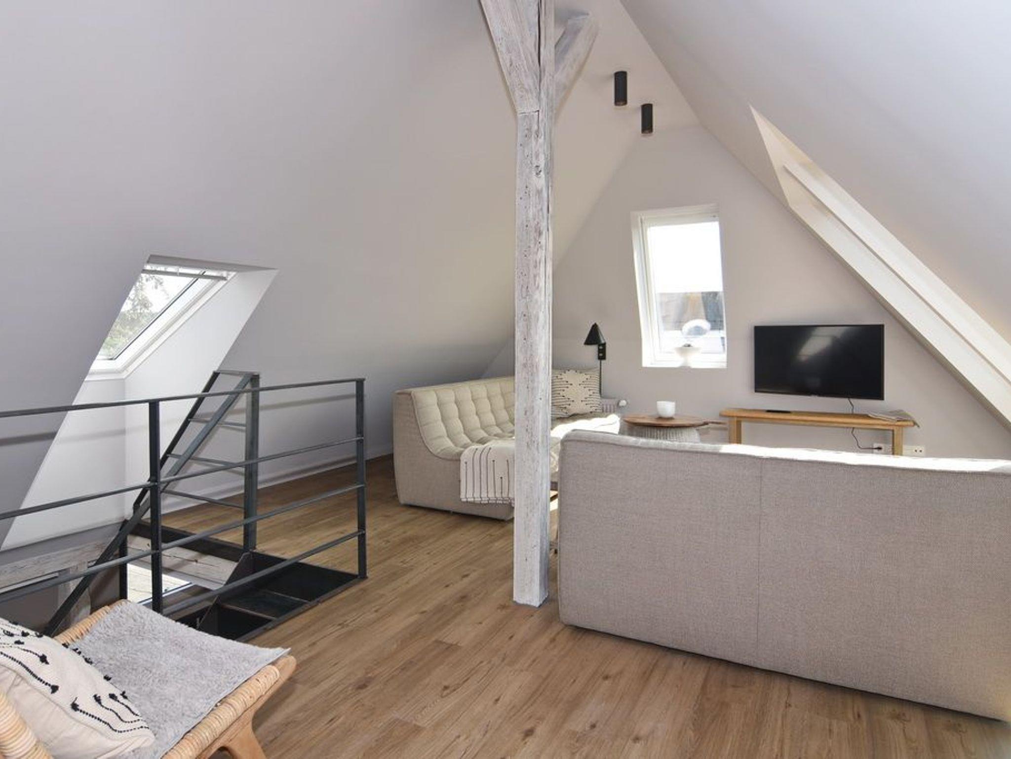 Direkt hinter den Dünen gelegen und dem Strand ganz nah. Hier wohnen Sie in einer 5-Zimmer-Maisonette-Wohnung mit ca. 88qm. Zentrum der Wohnung ist die wunderschöne Wohnküche mit einem Essplatz für bis zu 6 Personen. Die Küche verfügt über Geschirrspüler und Backofen. Auf selber Ebene befinden sich zwei Schlafzimmer jeweils mit Doppelbett (160x200), Kleiderschrank / Spint und TV. Auf dieser Ebene befindet sich ein Duschbad / WC, ein Duschbad /WC ensuite und ein großzügiger Eingangsbereich. Aus der Wohnküche geht eine offene Metalltreppe ins Dachgeschoß (Achtung: offenes Treppengeländer, für Kleinkinder nicht geeignet). Hier befindet sich ein weiterer Schlafraum mit Doppelbett (180x200), TV und Kommode, ein Gäste-WC und der Wohnbereich mit gemütlicher Sitzgruppe, TV und großen, bodentiefen Veluxfenstern. Waschmaschine, Internet ist vorhanden. Bettwäsche und Handtücher sind zur Anreise aufgezogen. Parken in der Straße möglich. Gemeinschaftlicher, kleiner Außenbereich vor dem Haus mit Sitzmöbeln. Tierhaltung und Rauchen sind im Objekt verboten.