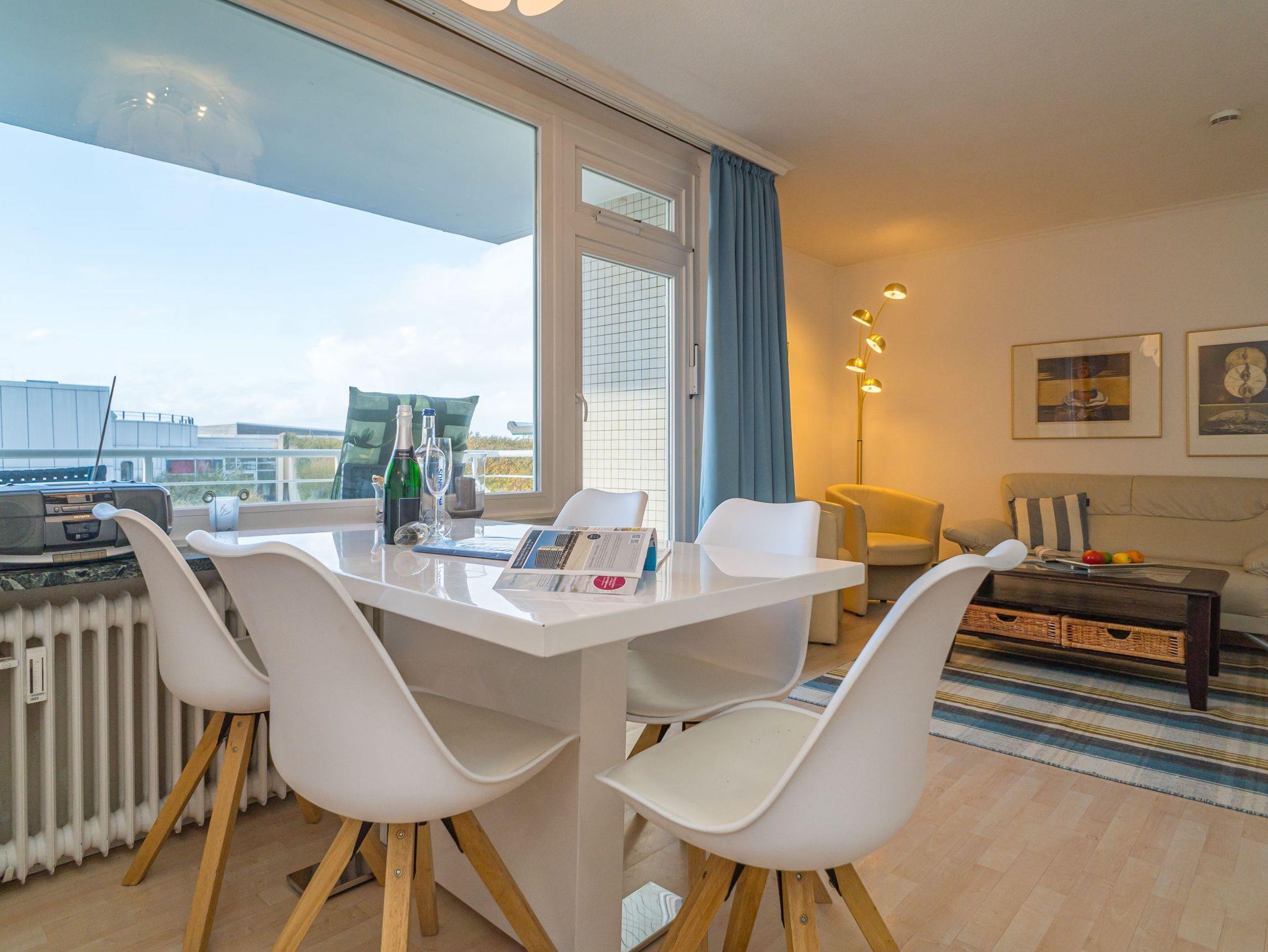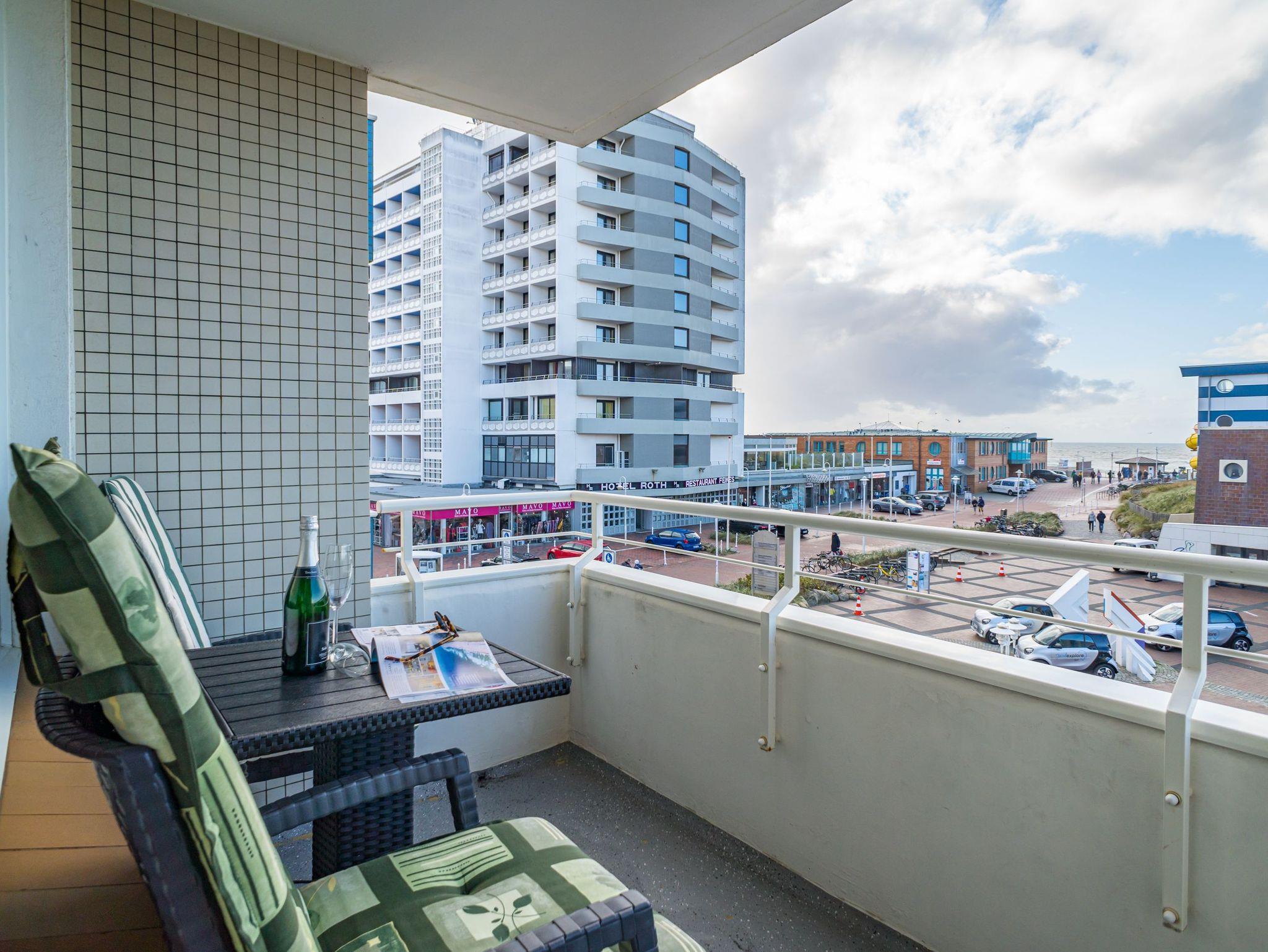 Komfortable 2-Zimmer-Nichtraucher-Ferienwohnung (ca. 54 qm) in der 2. Etage zur Seeseite mit[nbsp][nbsp]Meerblick und Westloggia (Seeseite, mit Balkonmöbeln und Auflagen) für 2-4 Personen. Das Appartement liegt direkt am Meerwasserschwimmbad Sylter Welle, Syltness-Center und Hauptstrand.