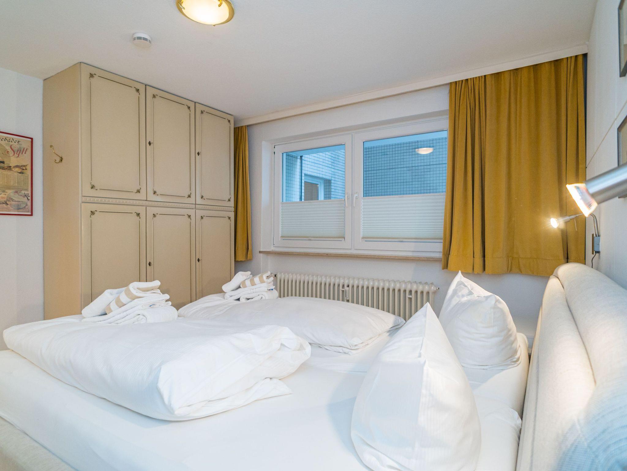 Das großzügige Schlafzimmer ist mit einem bequemen Doppelbett (mit Einzelmatratzen 0,90 x 2,00 m) ausgestattet.