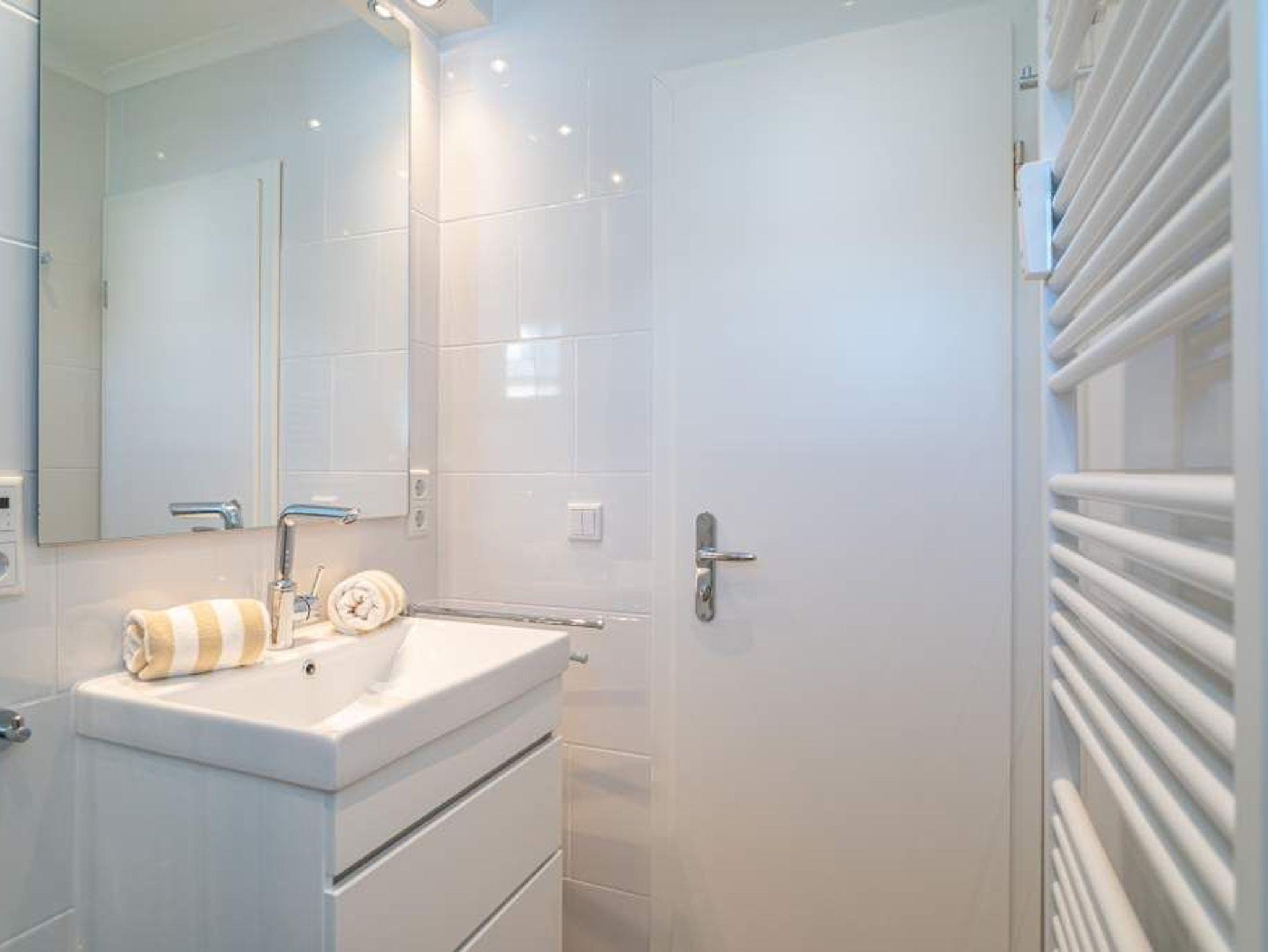 Das neue Badezimmer mit Dusche mit extraflachem Einstieg, Handtuchtrockner, Haartrockner, WC und Fenster lässt sie optimal in den Tag starten.