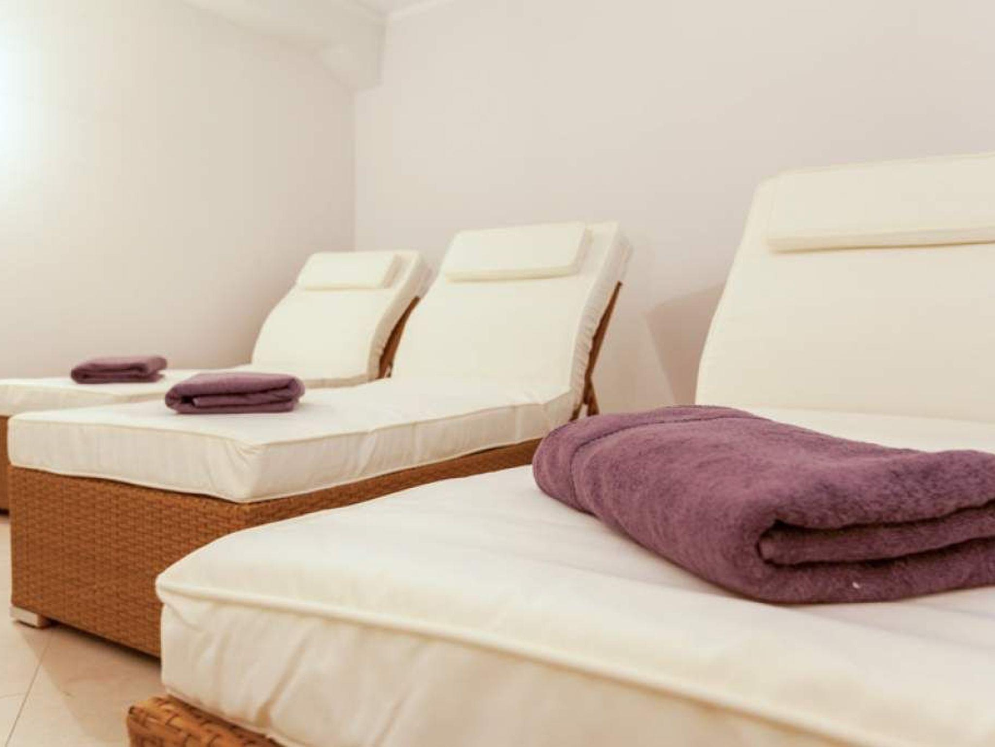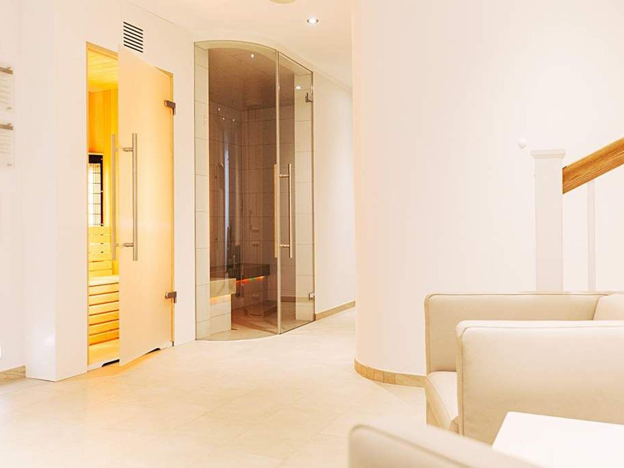 Vom Untergeschoß hat man direkten Zugang zum hauseigenen Wellness- und Fitnessbereich. Ein Wellnesspaket (bestehend aus 1 Bademantel, 1 Saunatuch, 1 Badetuch und 1 Paar Badeslipper) kann für 15,00 Euro/Paket mit gemietet werden.
