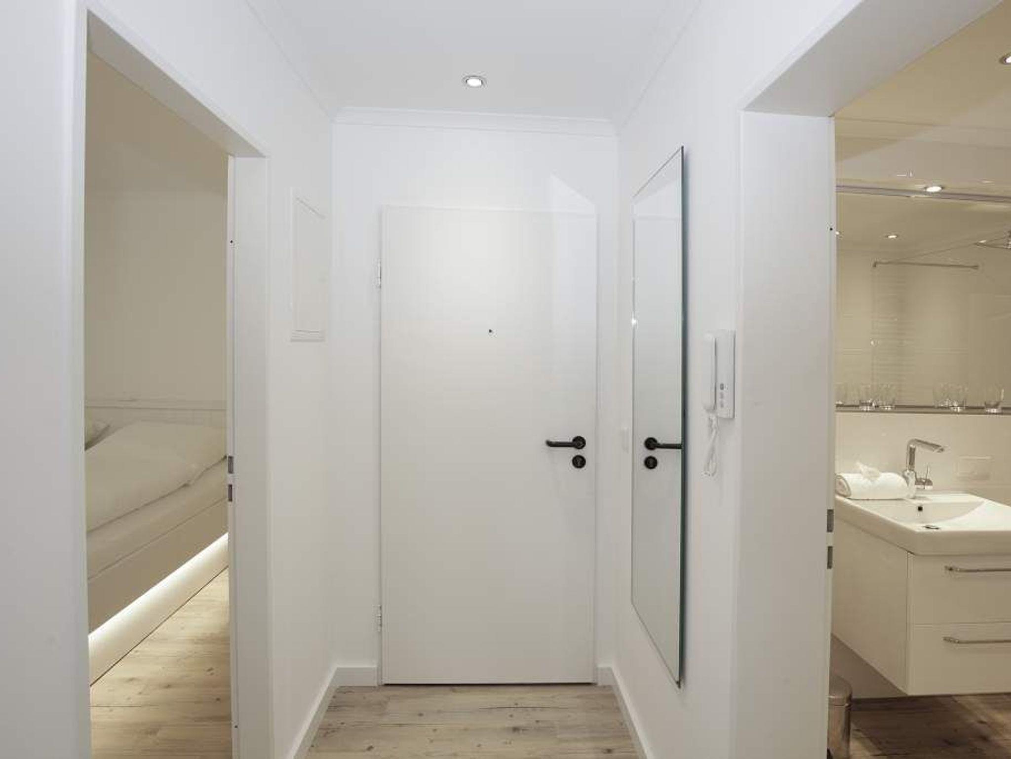 Vom Vorflur gelangt man in das Wohnzimmer (mit Austritt zum Balkon), in das Schlafzimmer und in das neue Duschbad/WC.