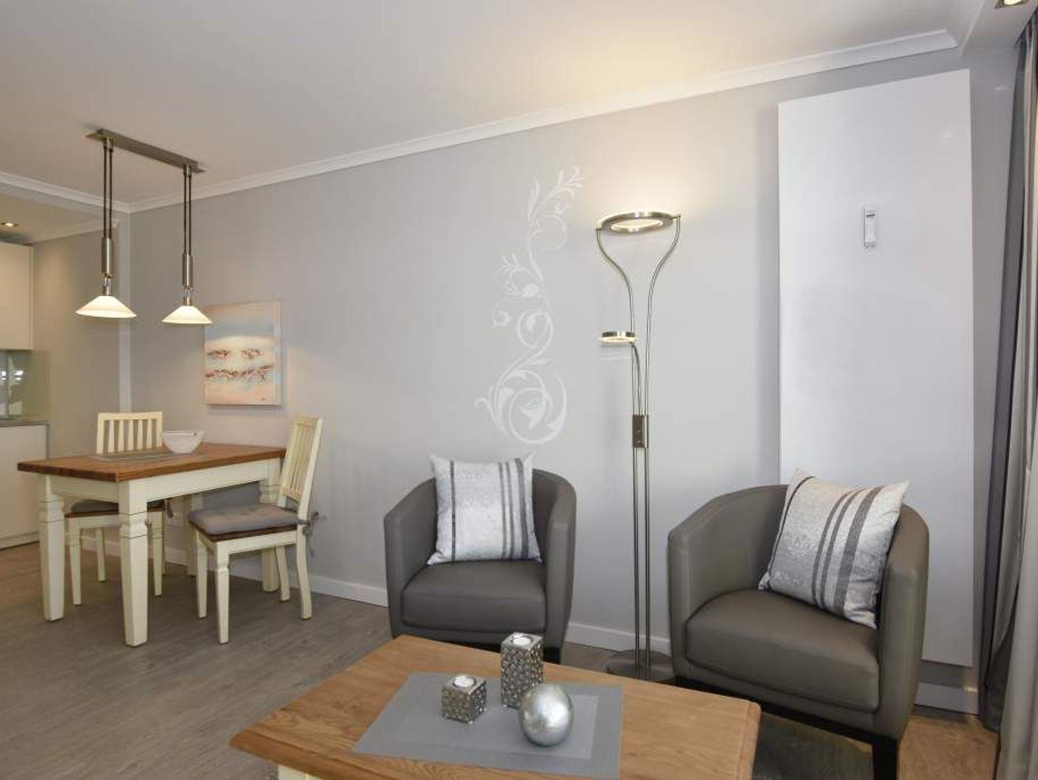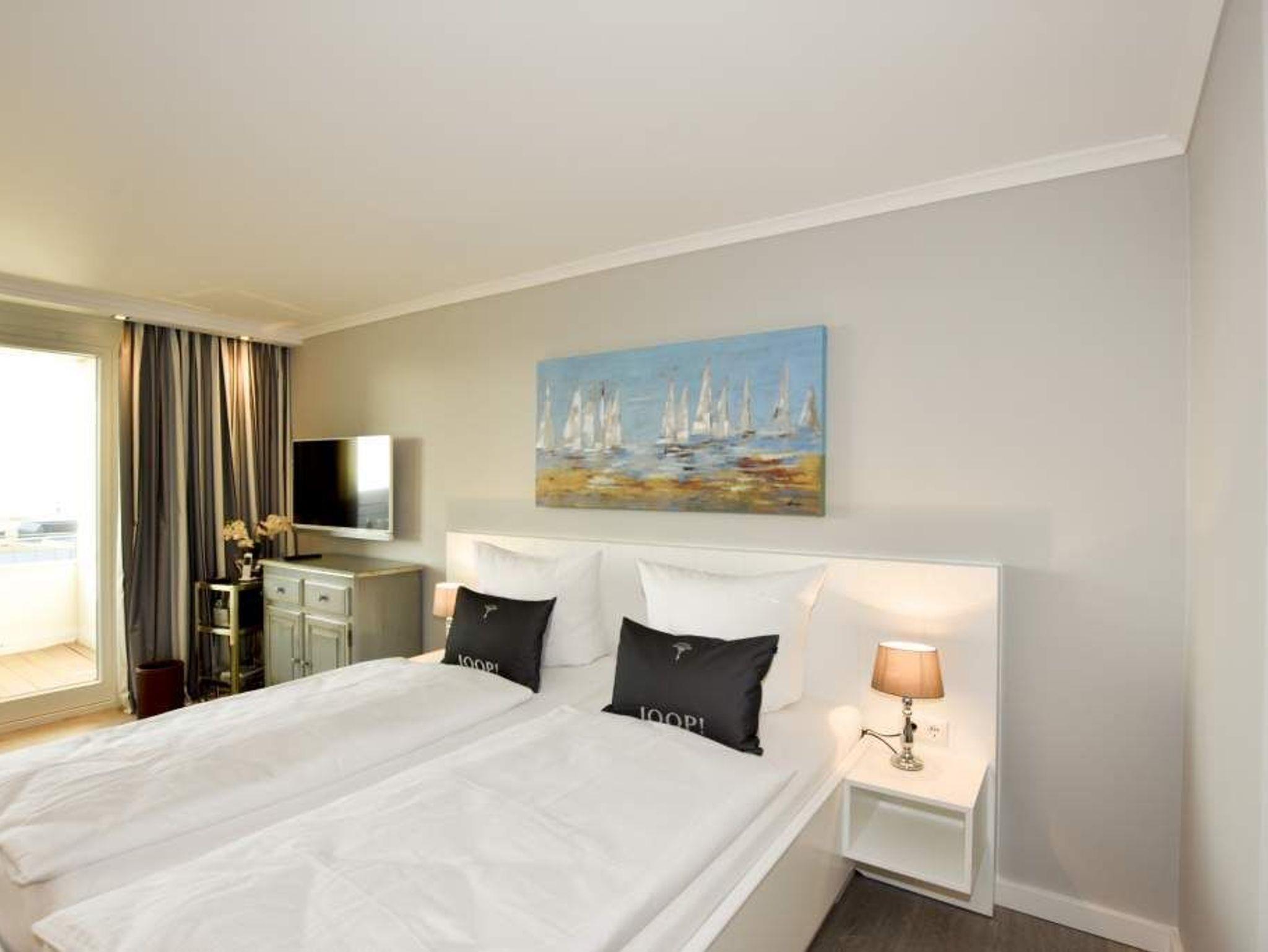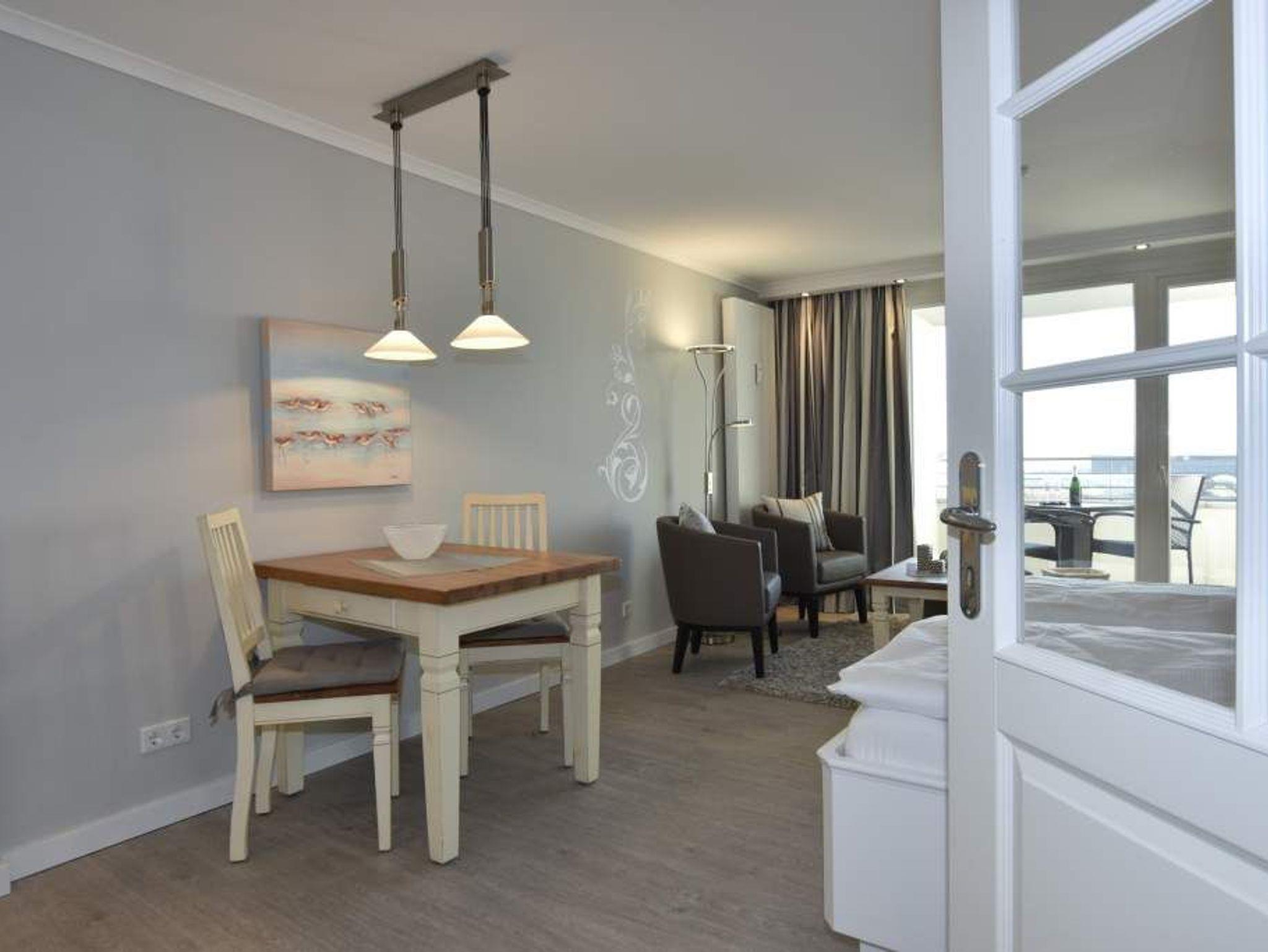 Diese hochwertig sanierte 1-Zimmer-Nichtraucher-Ferienwohnung (ca.?43?m²) in der 4. Etage besticht durch ihren stilvollen Komfort, ihre Großzügigkeit und den traumhaften Blick zur Nordsee. Die sonnige Westloggia mit Balkonmöbeln und Auflagen lädt nachmittags zum Entspannen und Genießen des Meerblicks ein perfekt für Paare, die Wert auf stilvolles Ambiente legen.