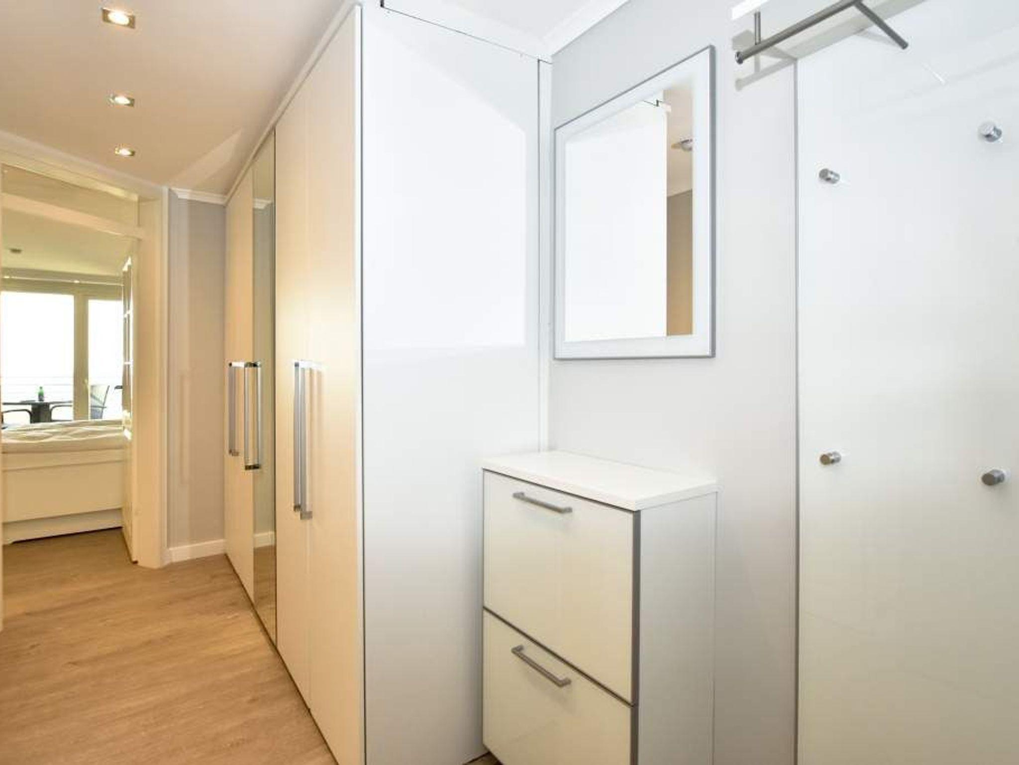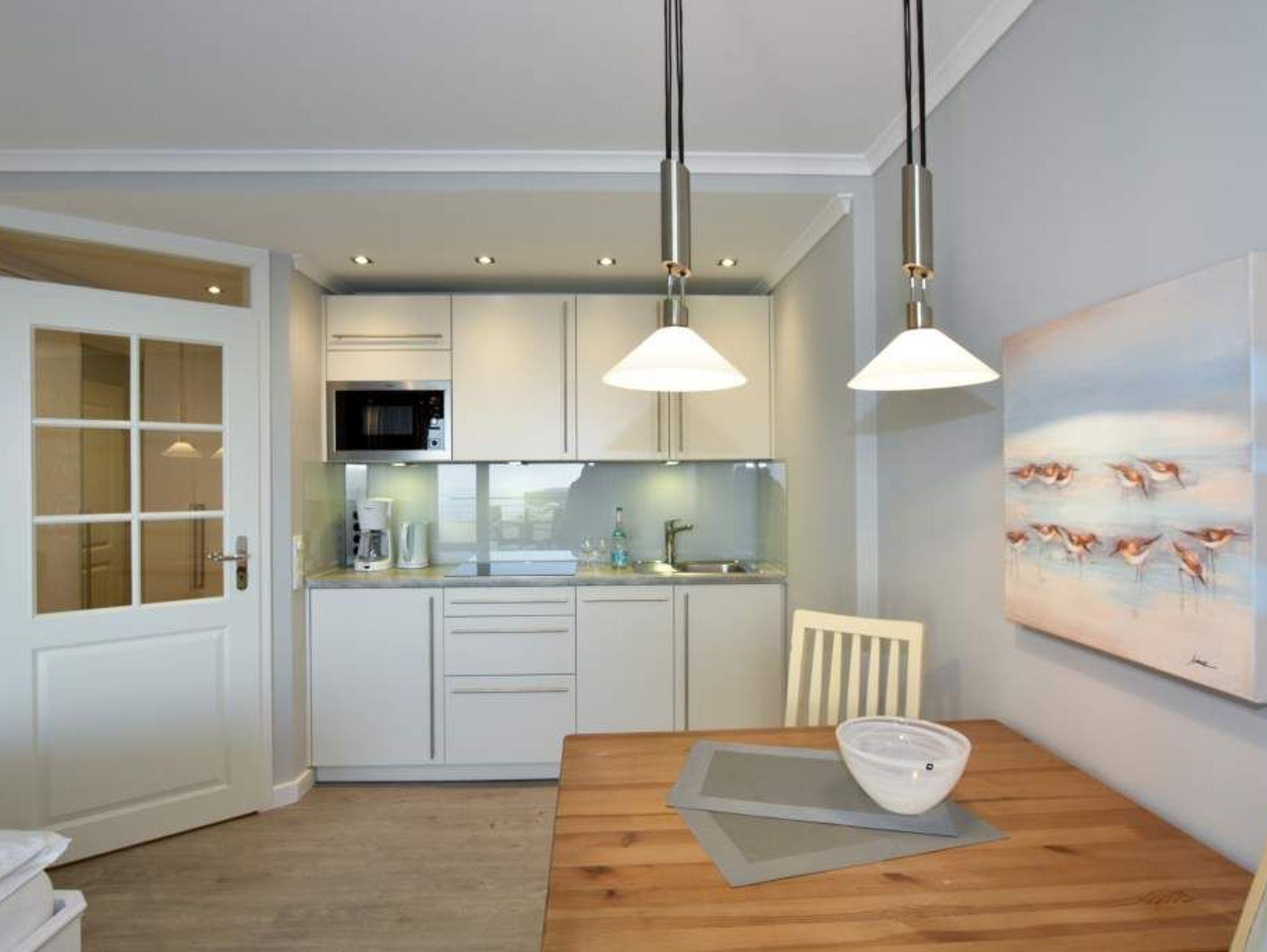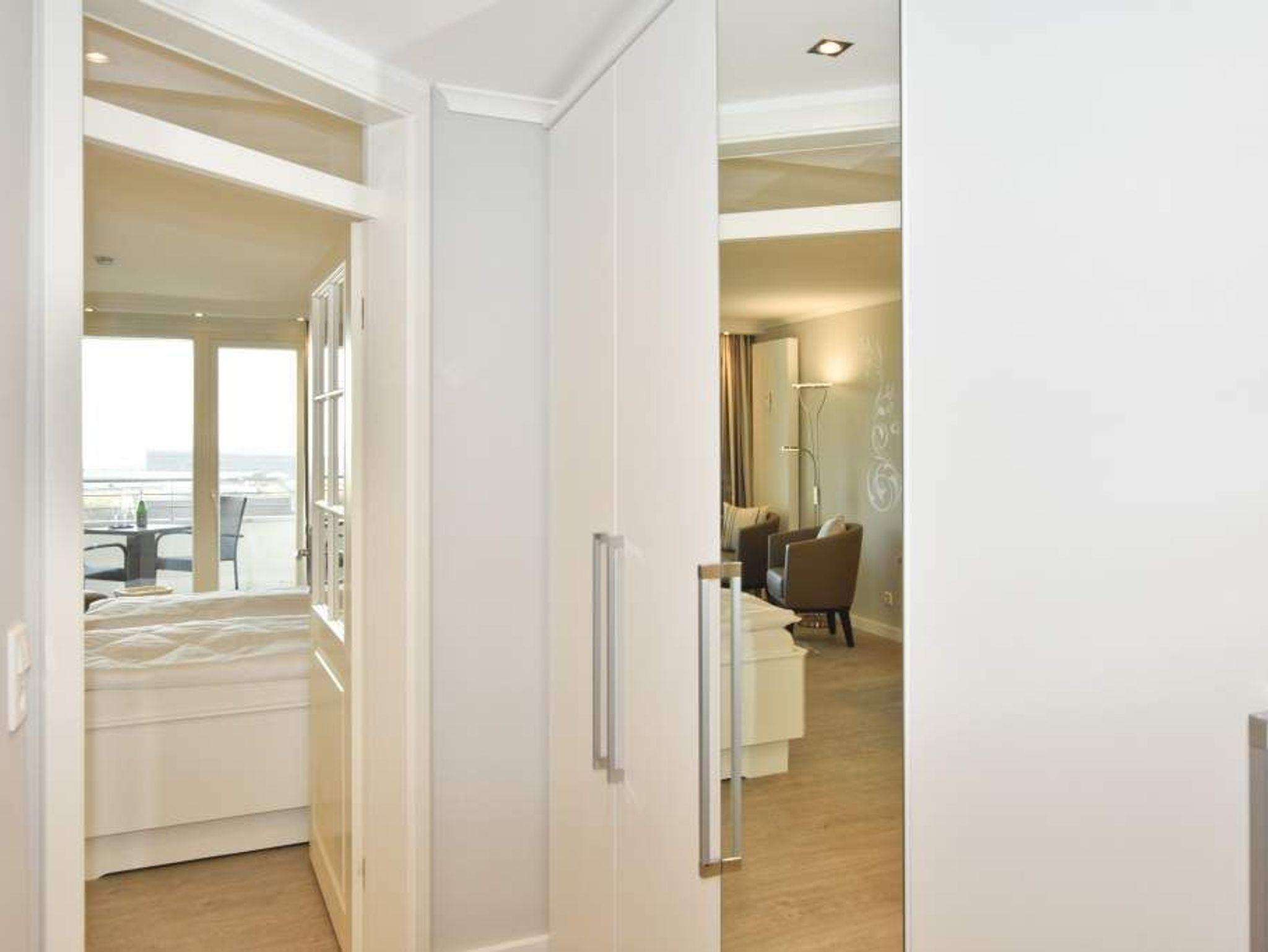 Diese hochwertig sanierte 1-Zimmer-Nichtraucher-Ferienwohnung (ca.?43?m²) in der 4. Etage besticht durch ihren stilvollen Komfort, ihre Großzügigkeit und den traumhaften Blick zur Nordsee. Die sonnige Westloggia mit Balkonmöbeln und Auflagen lädt nachmittags zum Entspannen und Genießen des Meerblicks ein perfekt für Paare, die Wert auf stilvolles Ambiente legen.