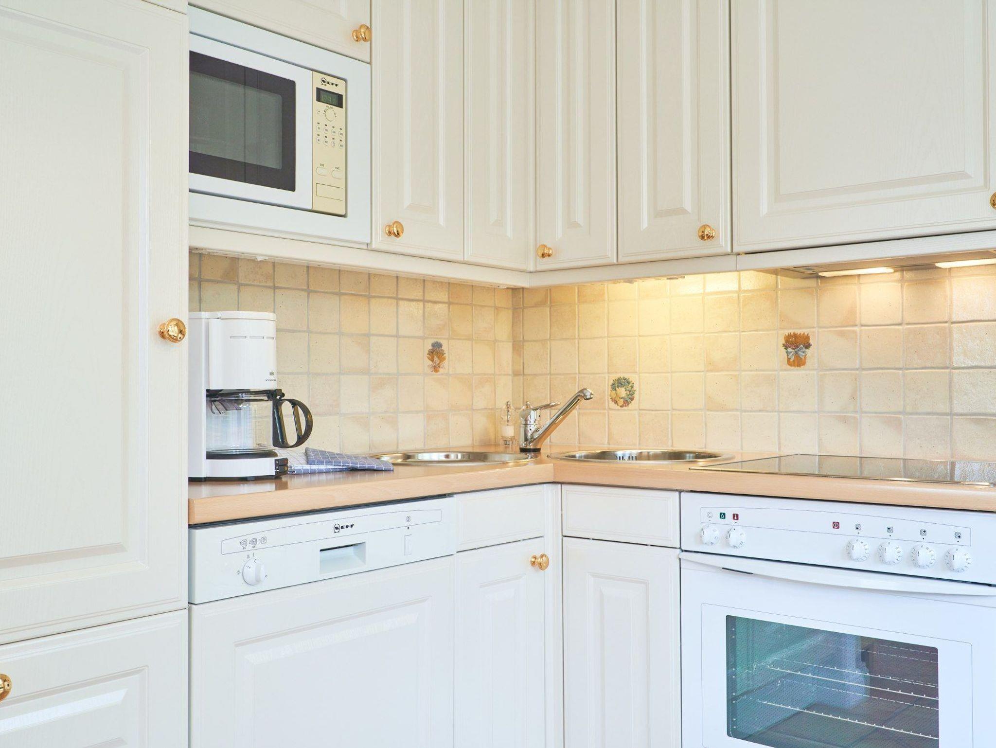 Angekommen in der modernen Wohnung, erwartet Sie das helle, lichtdurchflutete Wohnzimmer mit der komplett ausgestatteten Küche.