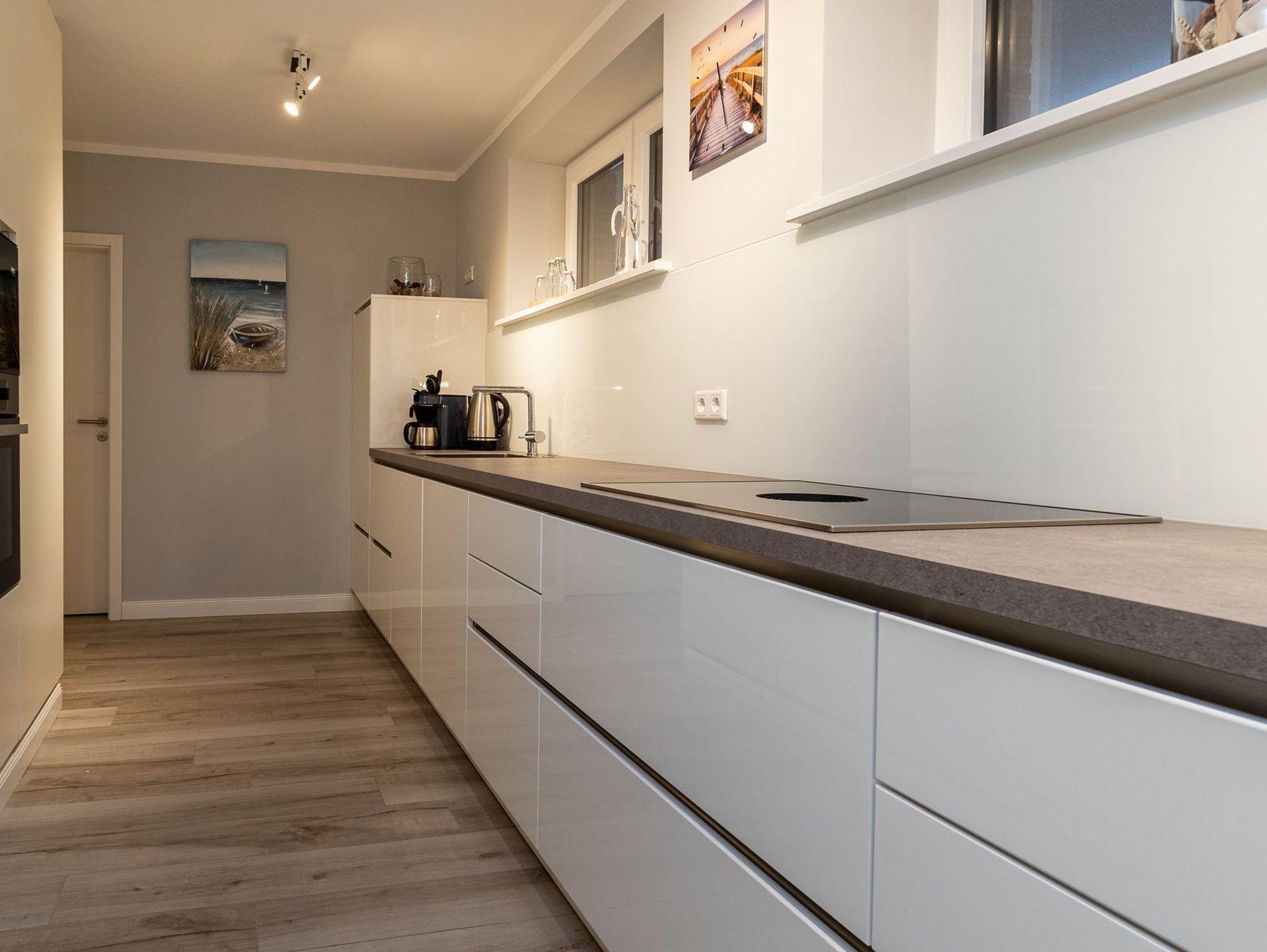 Die Wohnung 1 befindet sich im EG! Auf einer Ebene bieten wir Ihnen: 2 großzügige Schlafzimmer mit Boxspringdoppelbetten, Einbauschränken und TV, 2 Duschbäder mit Fenster, 1 Abstellraum und den Wohnbereich mit großem Essplatz und der Küche (Mikrowelle, Backofen, Spülmaschine, Kühlschrank mit Frostfach , Bora-Induktionskochfeld, Wasserkocher, Toaster und eine Kaffeemaschine für Pads und Filterkaffee)