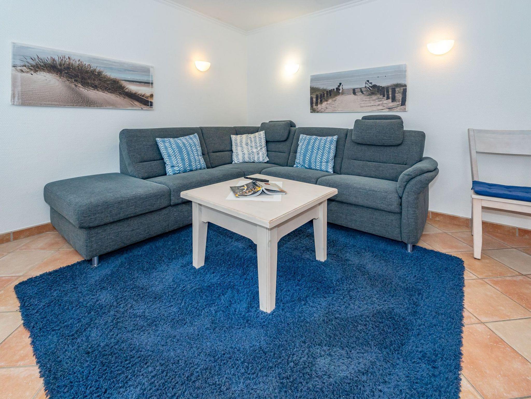 Der Wohnraum besteht aus einer bequemen Sitzgarnitur (große Eck-Couch ohne Schlaffunktion), einem Essplatz, Kabel-Flachbild-TV, Telefon.