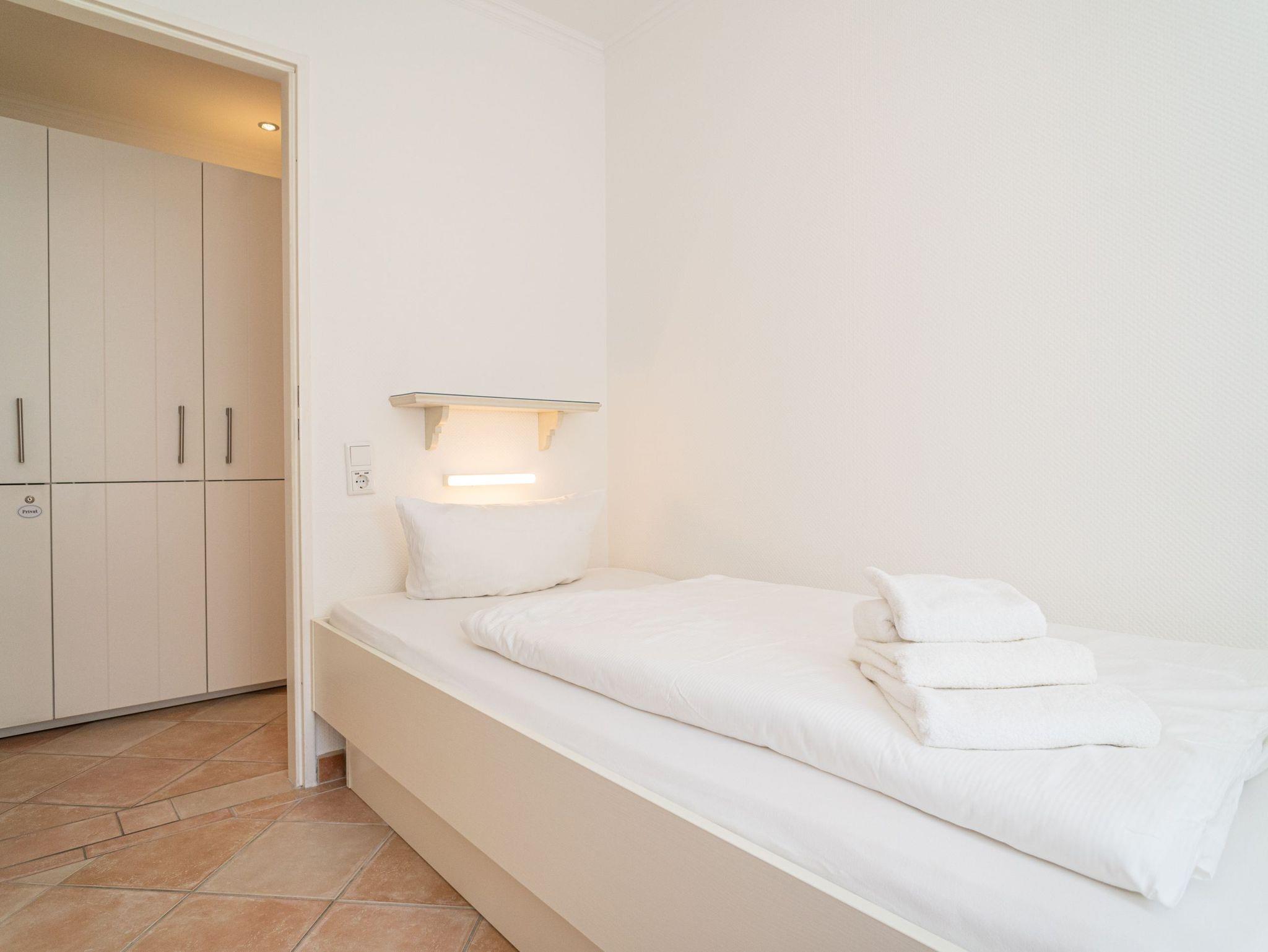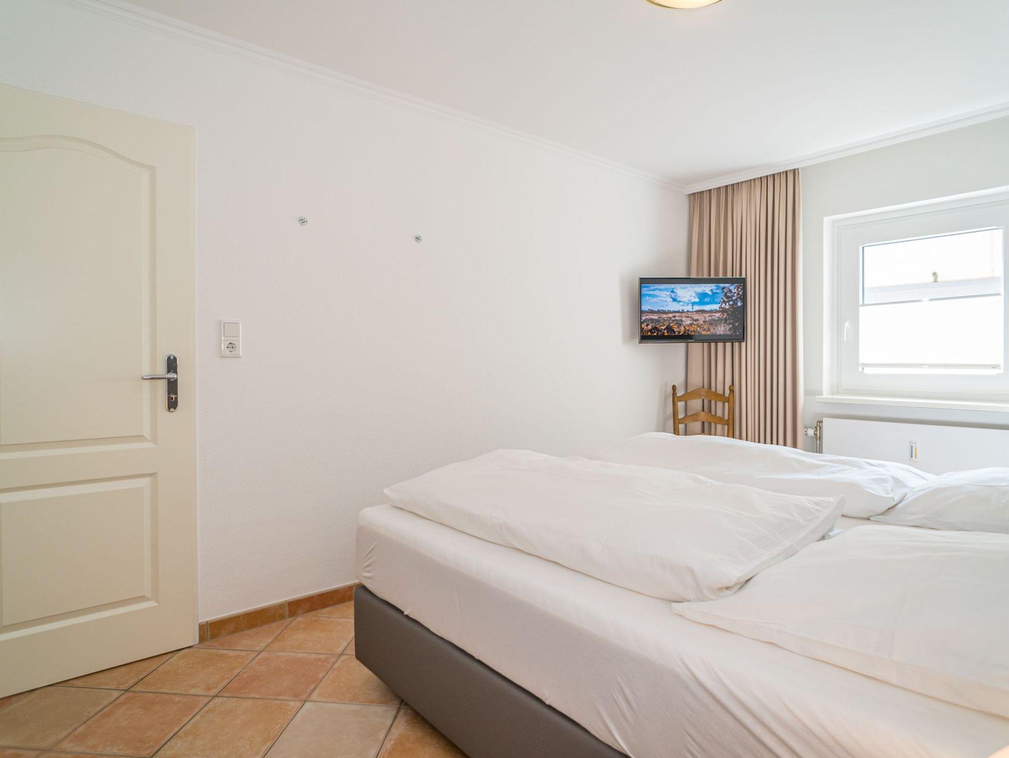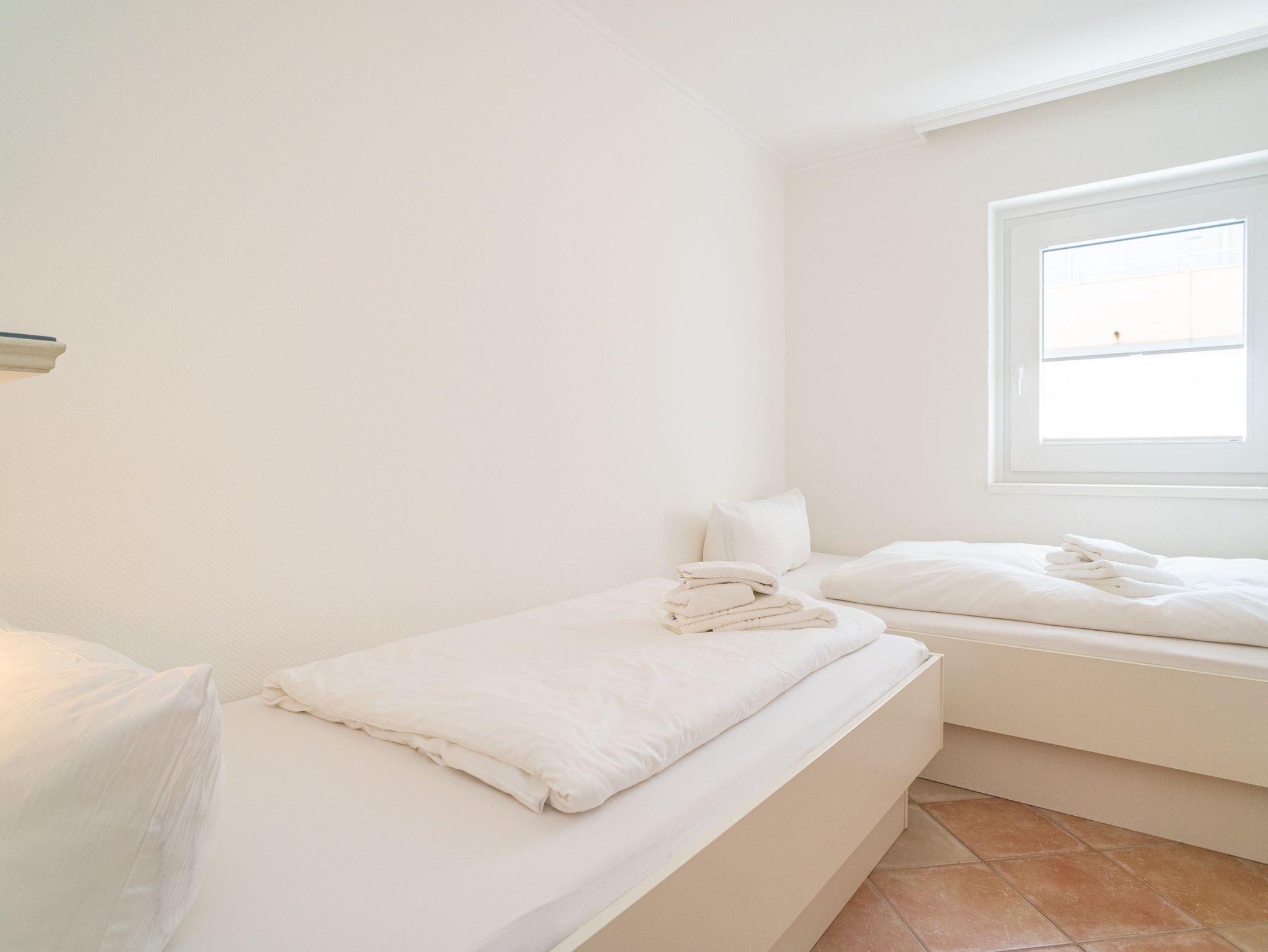 Das große Schlafzimmer ist mit einem bequemen Doppelboxspringbett (200x200cm, Einzelmatratzen mit durgehendem Topper) und das kleine Schlafzimmer mit zwei über Eck stehenden Einzelbetten ausgestattet.