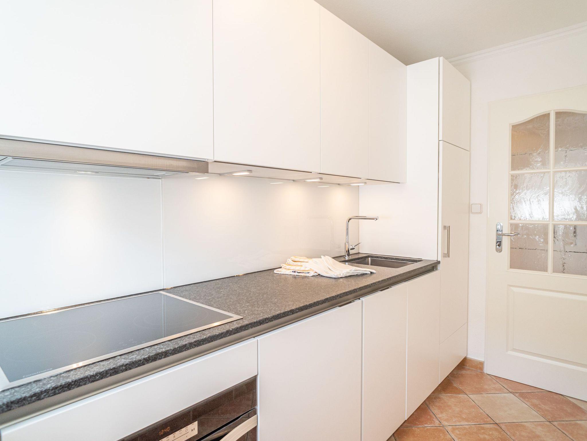 Die separate Küche hat einen Geschirrspüler, Herd mit Backofen und Cerankochfeld, eine Mikrowelle, einen Kühlschrank mit 3-Sterne-Gefrierfach und ein Fenster. Kaffeemaschine, Wasserkocher und Toaster gehören zur Grundausstattung.
