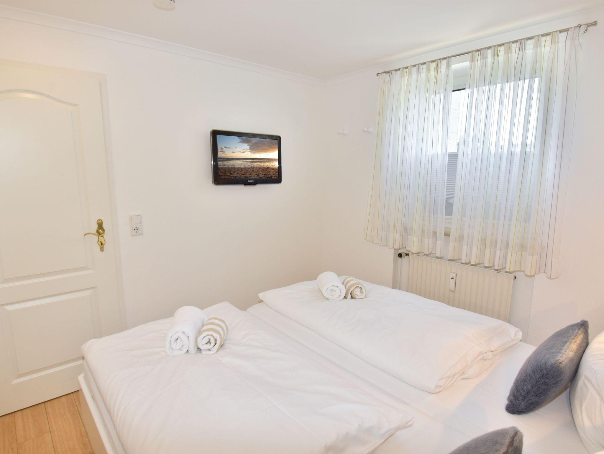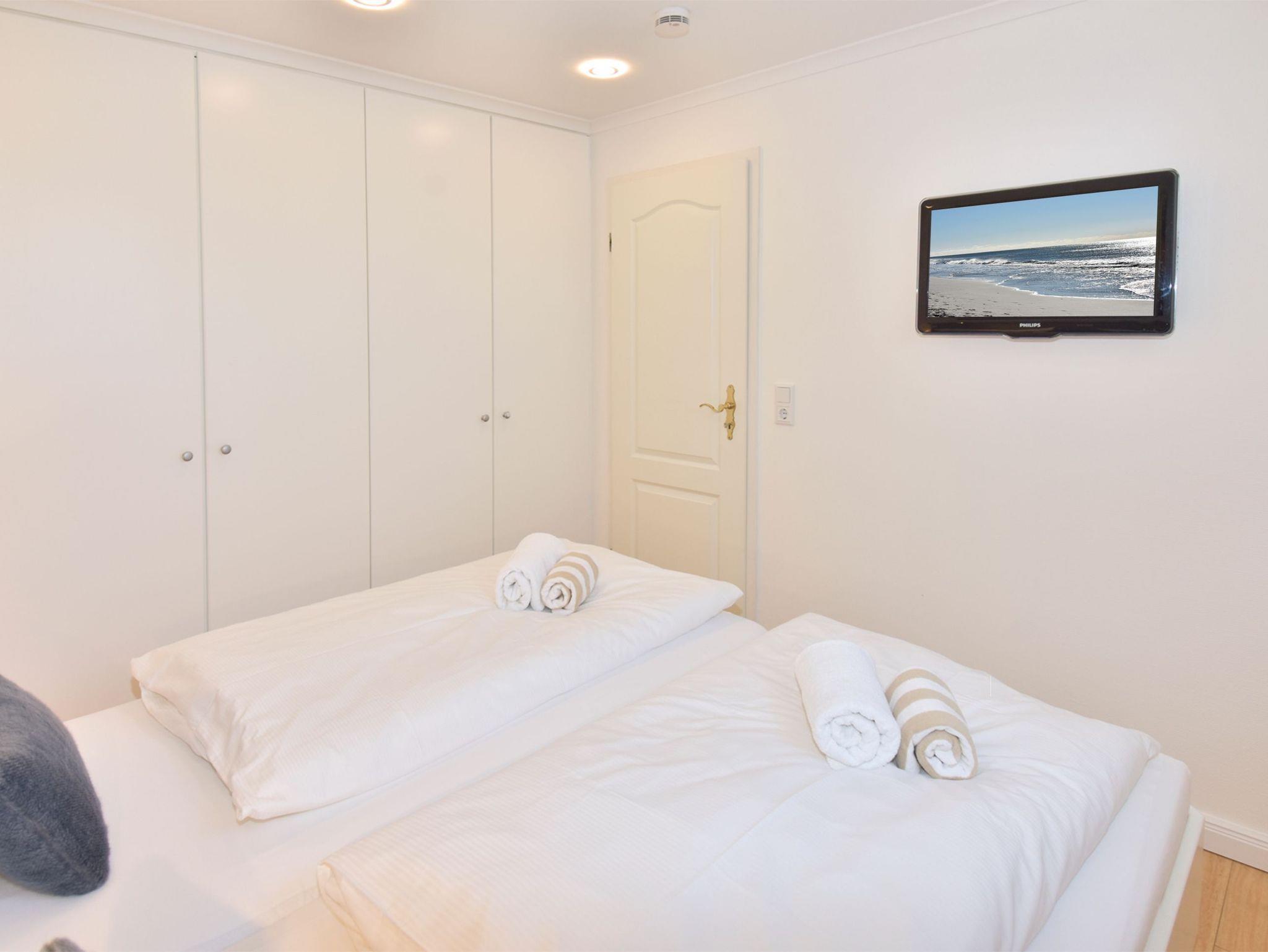 Das Schlafzimmer verfügt über ein Doppelbett ( Einzelmatratzen je 0,90m x 2, 00 m) mit komfortabler Einstiegshöhe und Extrabeleuchtung, einer Schrankwand und einem Fernseher.