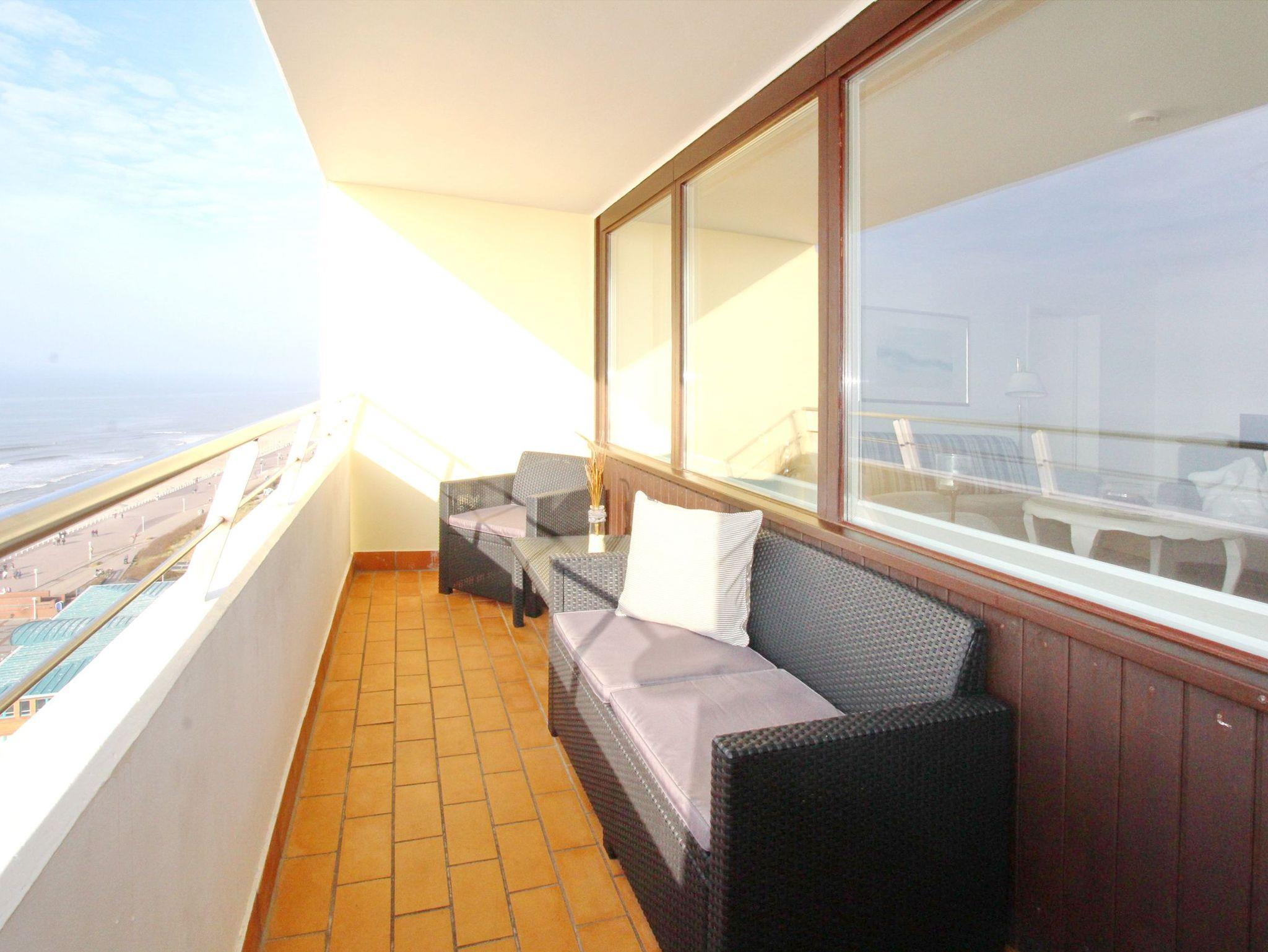 Große Zweizimmerwohnung in der 12. Etage im Haus Metropol mit herrlichem Blick über den Strand und das Meer. Das Wohnzimmer und das Schlafzimmer haben je einen vorgelagerten Westbalkon mit Loungemöbeln. Ausgestattet ist die Wohnung mit einer Couch mit Schlaffunktion, 1 gemütlichen Ohrensessel mit Hocker, einem Essplatz mit 4 Stühlen und einer Schrankwand mit viel Stauraum. Designboden in Holzoptik verleiht dem Raum Wärme und Gemütlichkeit. Im Schlafzimmer gibt es ein feststehendes Doppelbett mit 2 Matratzen und ein TV. Im separaten Ankleidezimmer gibt es einen großen Kleiderschrank, Sessel und Spiegel. Um sich selbst zu verpflegen verfügt diese Wohnung über eine kleine Küche mit Geschirrspüler, Backofen, Ceranfeld und Mikrowelle. Stilvoll decken Sie den Tisch mit Geschirr von Thomas Trend. Das Badezimmer hat eine Dusche, die einen niedrigen Einstieg hat, einen Fön und einen Handtuchtrockner. Zur technischen Ausstattung gehört: ein Flachbildfernseher von Panasonic und ein Radio. Ein freies WLAN Netzwerk (WEG Haus Metropol - Passwortfrei - ohne Gewähr) steht ihnen kostenfrei zur Verfügung. Wohnungsgröße: ca. 67 m².