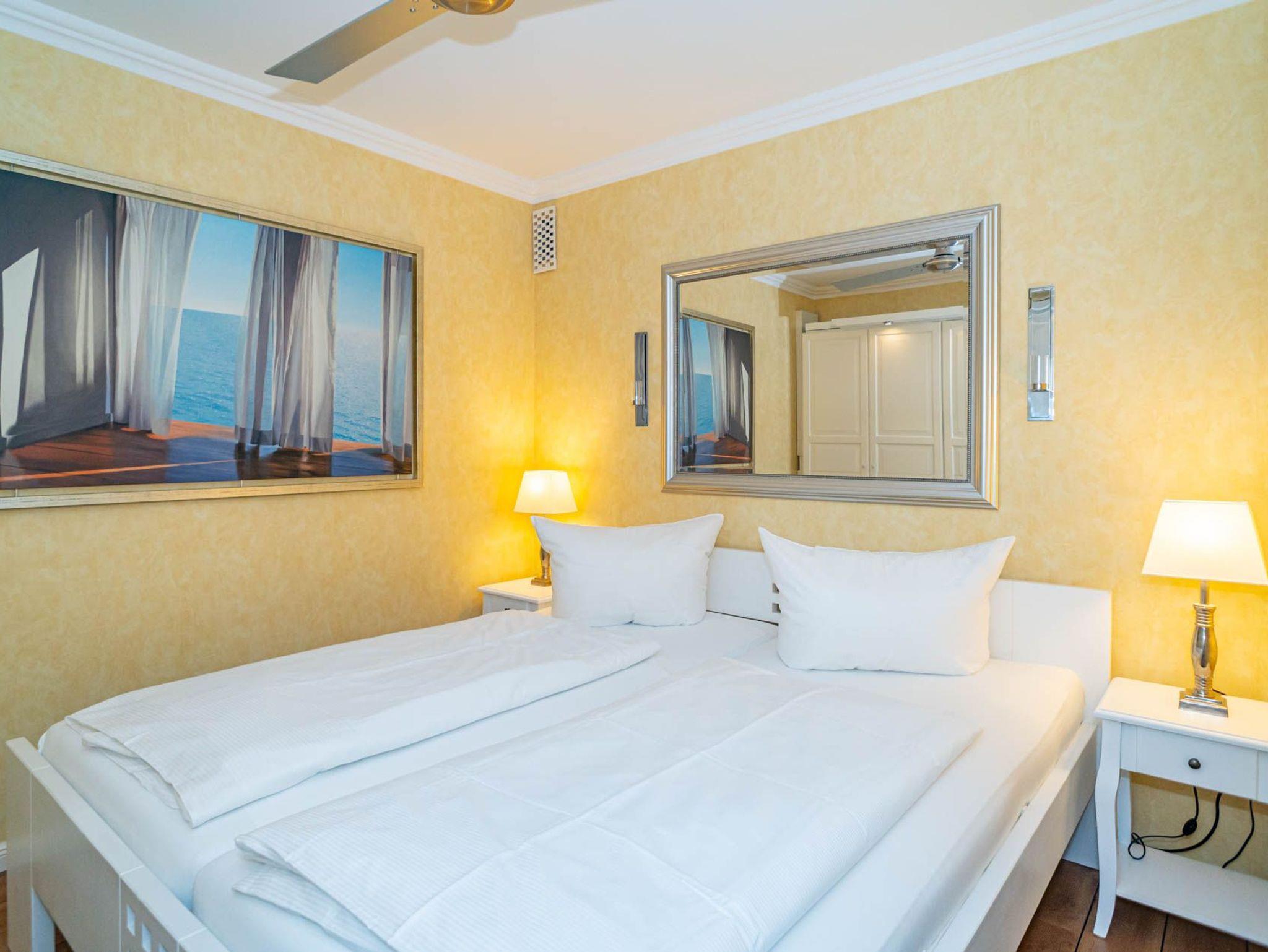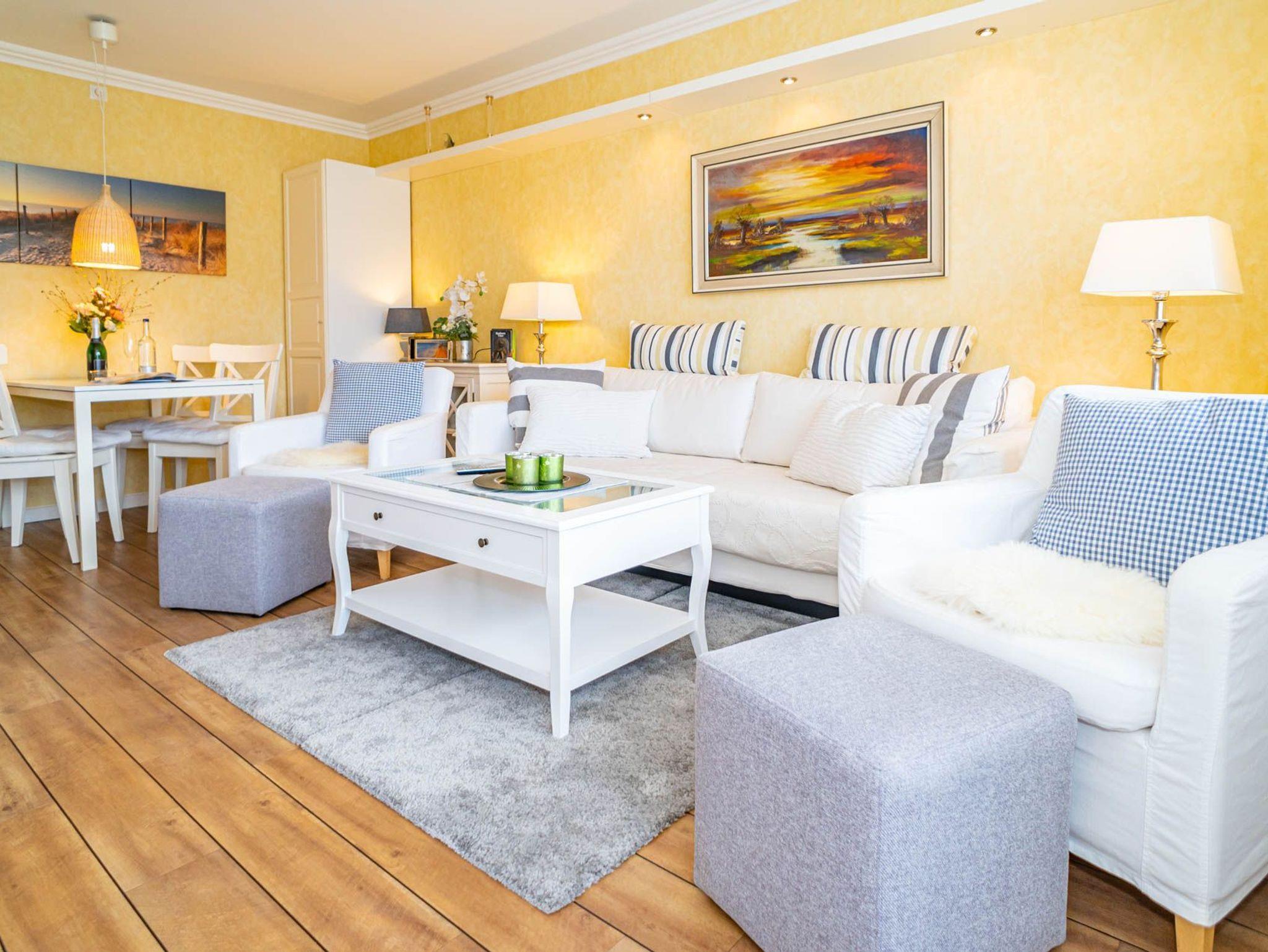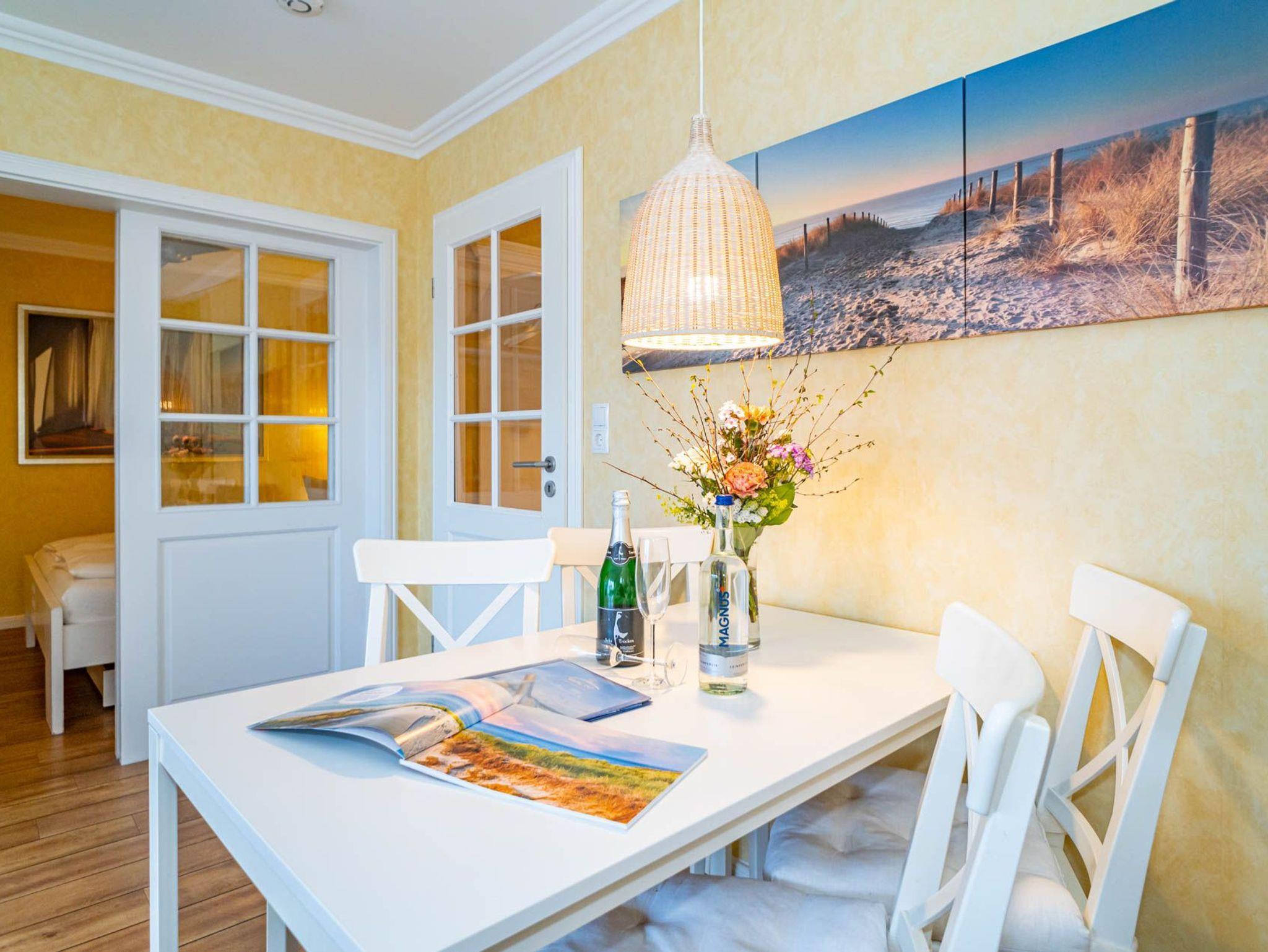 1,5-Zimmer-Nichtraucher-Ferienwohnung (ca. 50 qm) in der 1. Etage zur Seeseite mit Westloggia (Nachmittagssonne, mit Balkonmöbeln und Auflagen) für max. 2 Personen.
