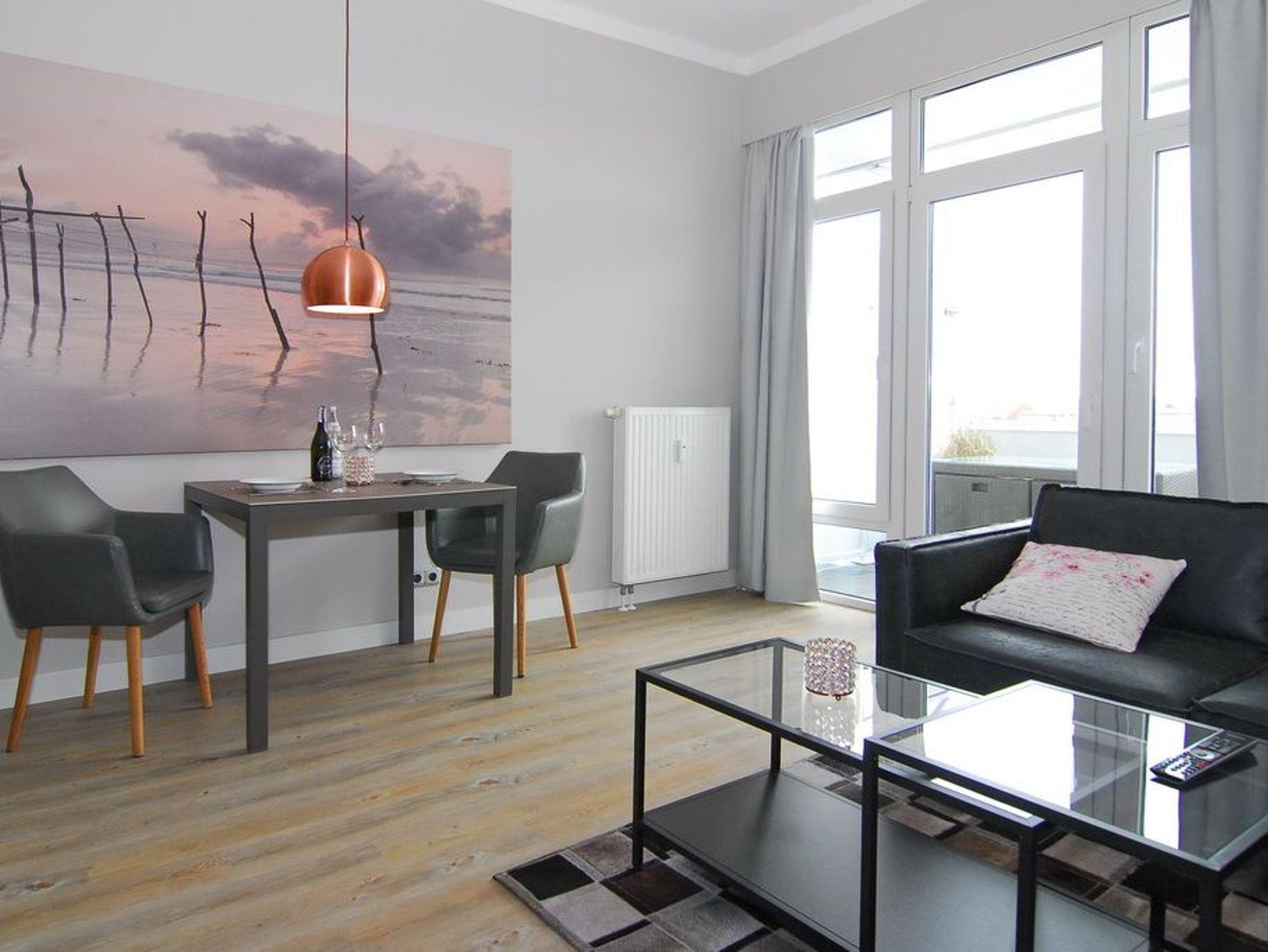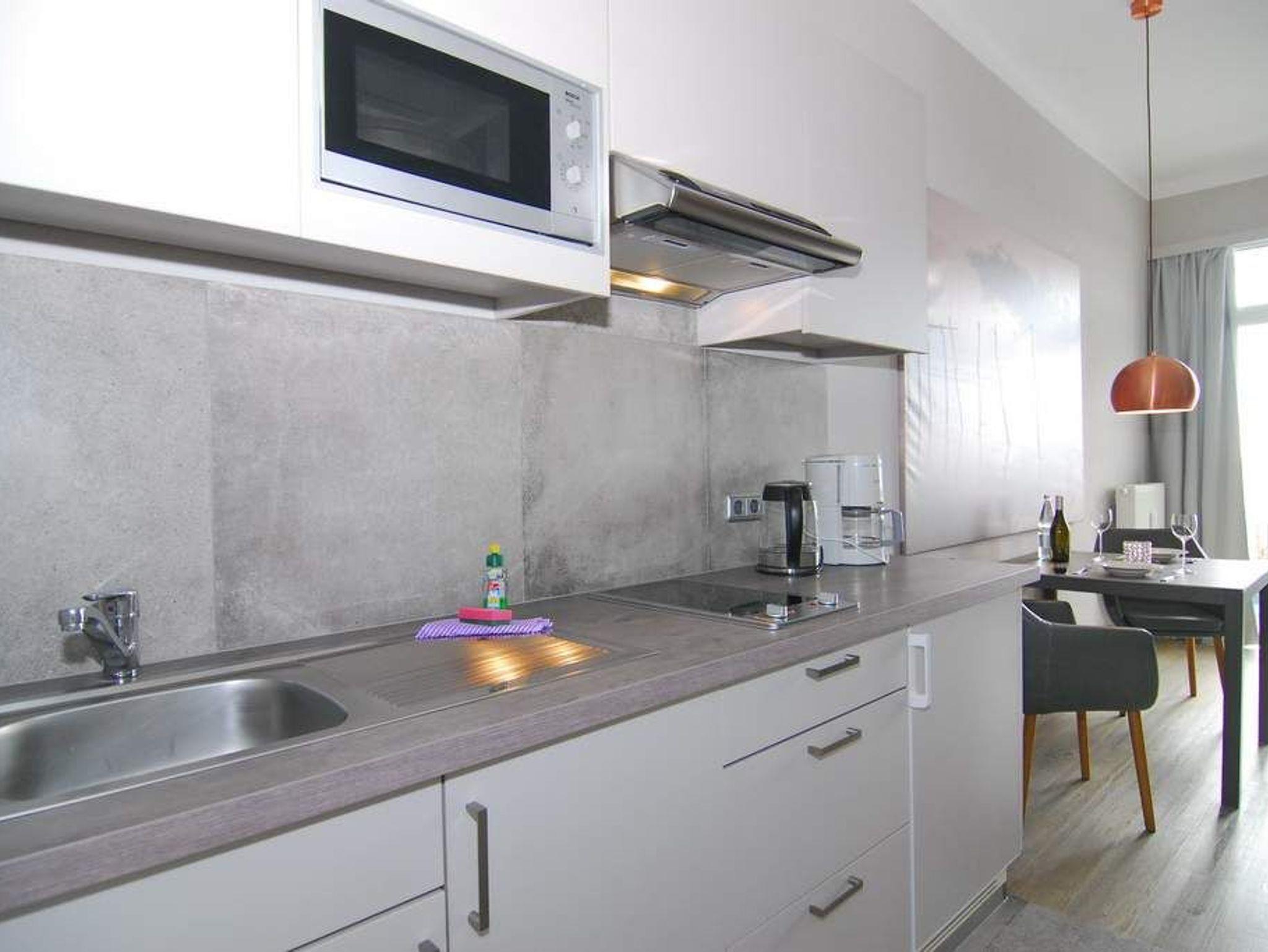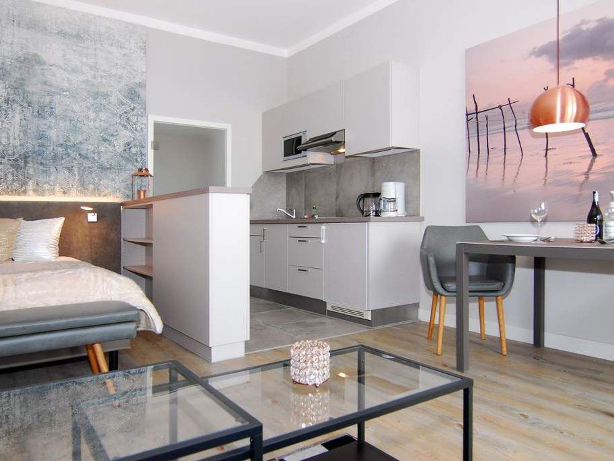 Moderne 1-Zimmer-Ferienwohnung mit Balkon und Küchenzeile im Haus Mauritius in Westerland auf Sylt.