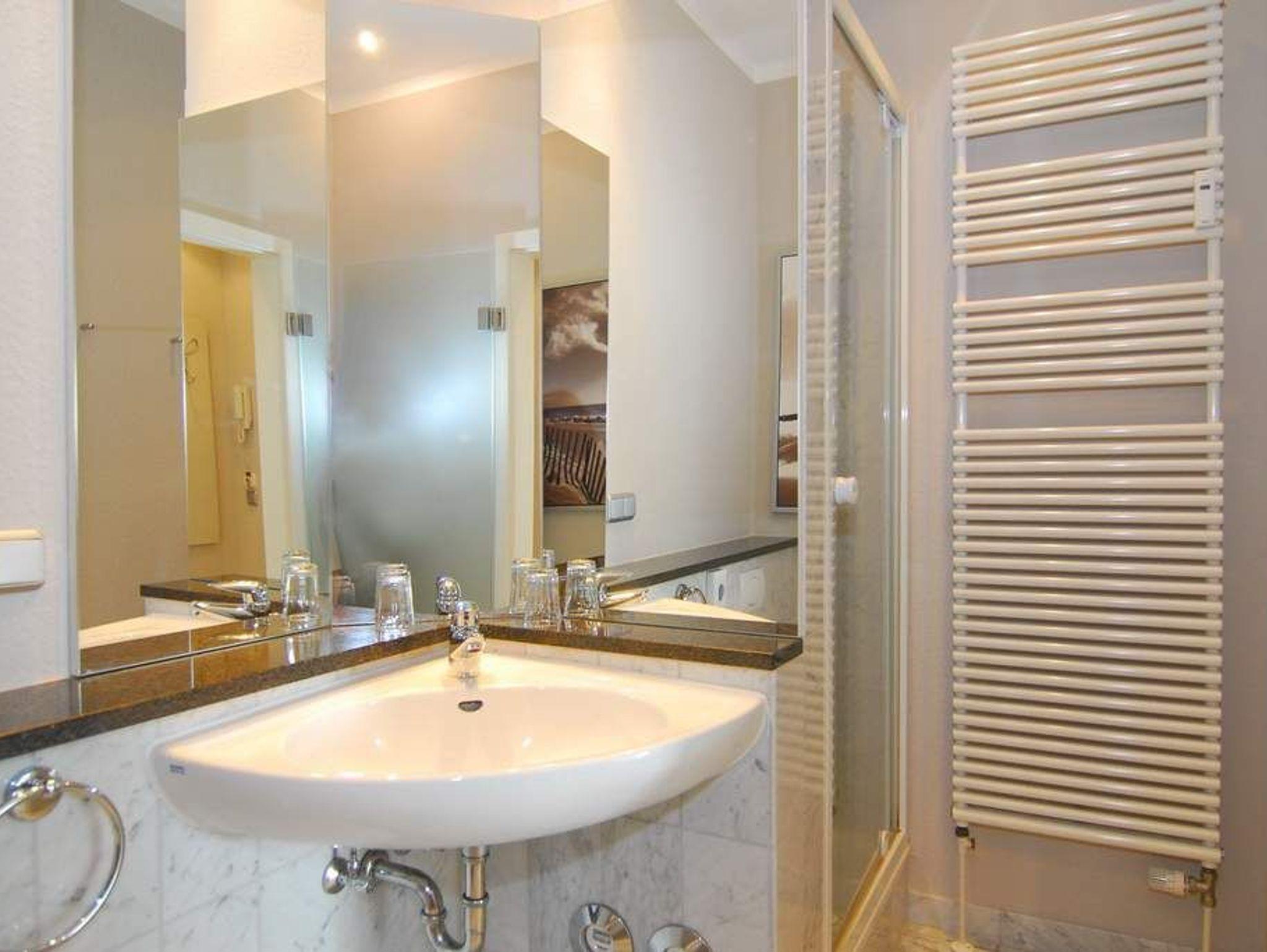 Moderne 1-Zimmer-Ferienwohnung, ca. 44m² im Haus Mauritius. Nichtraucher-Whg.! Wohn-/Schlafraum mit Doppelbett, 2-Sitzercouch und Tisch, Essplatz, Kabel-TV, Küchenzeile mit 2-Plattenherd und Mikrowelle, Flur, Duschbad/WC, gr.Südbalkon, Strom nur über Schlüsselkarte aktivierbar. Keine Tierhaltung gestattet! Fahrradkeller vorhanden! Pkw-Stellplatz kann kostenpflichtig hinzugebucht werden. Bettwäsche und Handtücher sind zur Anreise aufgezogen! Internet (ohne Gewähr).