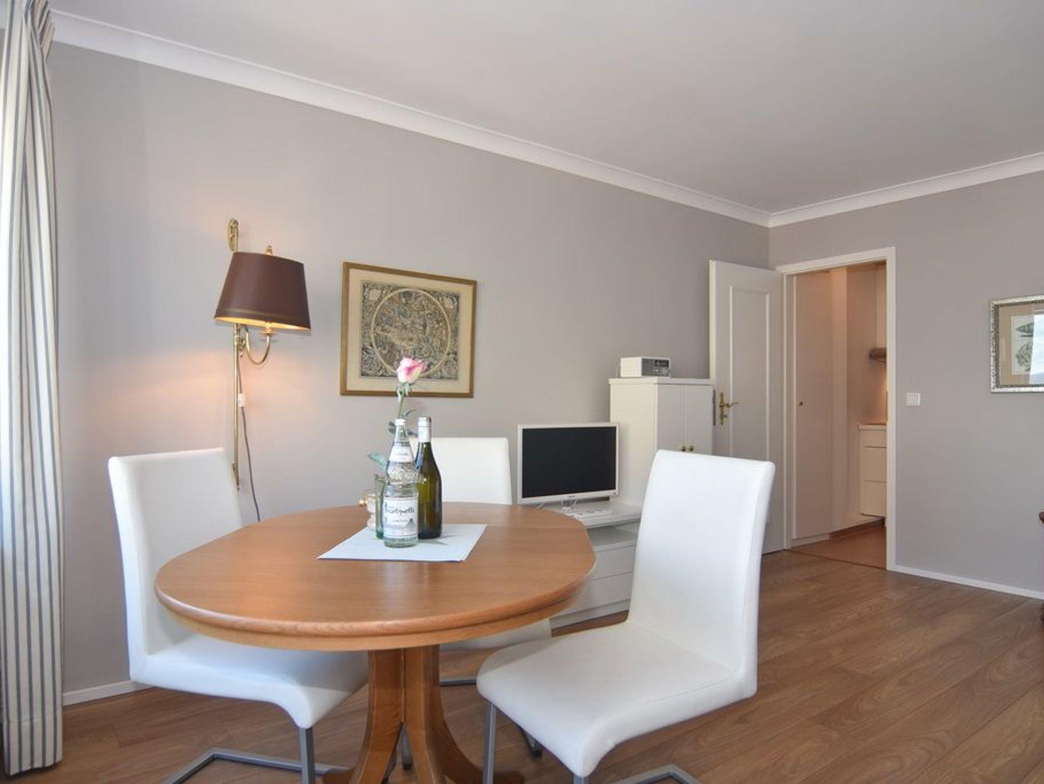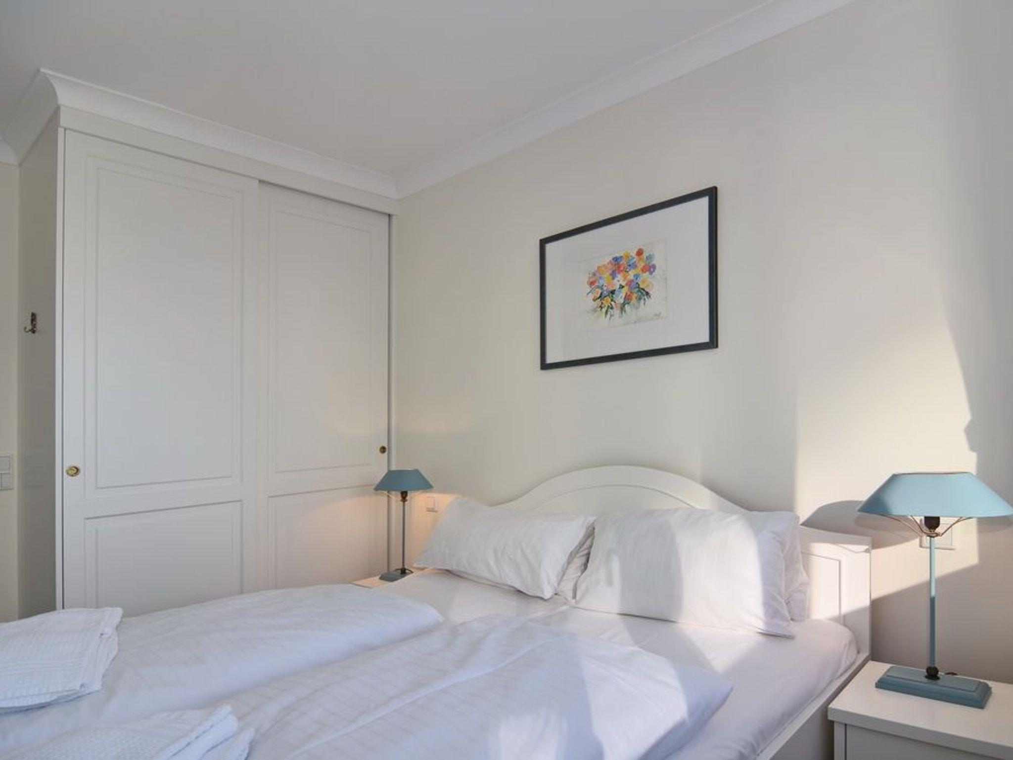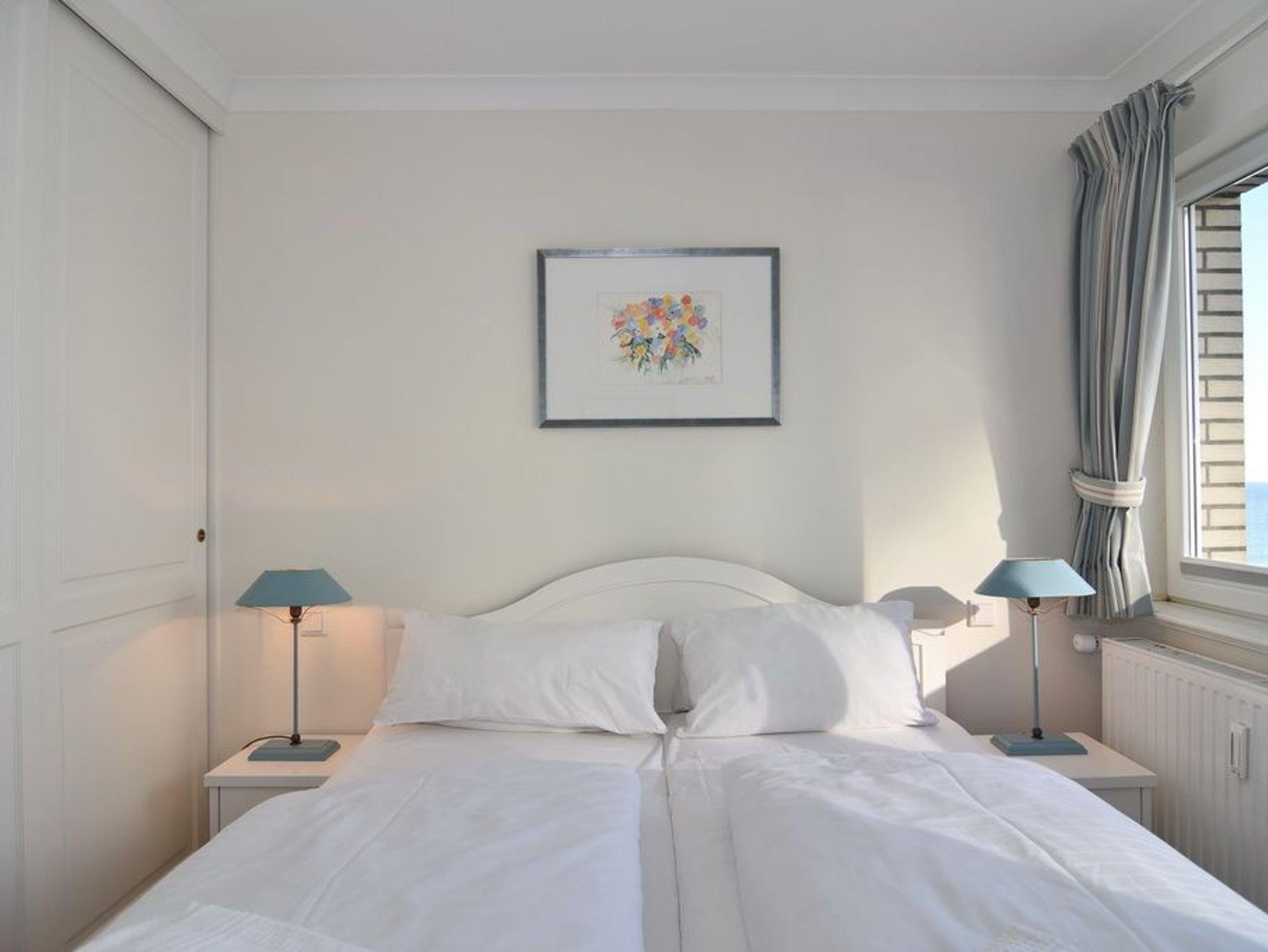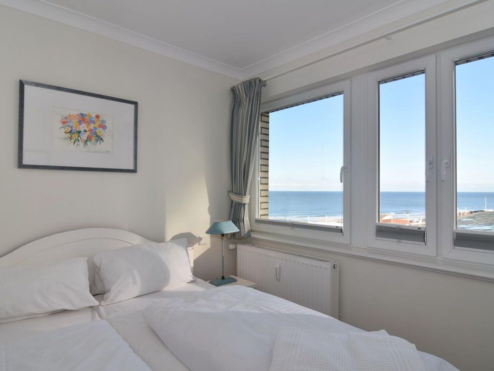 Exklusive 2 Zimmer-Ferienwohnung, ca. 45m², 4. OG, Nichtraucher mit Meerblick. Wohnzimmer mit Schlafcouch und 2 Sessel, Essplatz, WLAN (ohne Gewähr), Flat-TV und Radio, Austritt mit Blick auf das Meer, separate Küche mit Geschirrspüler, Schlafzimmer mit Doppelbett (2 x 80 x 200 cm ) und Meerblick, Duschbad/WC. Das Appartement ist mit Laminat ausgelegt, Tierhaltung ist nicht gestattet. Fahrstuhl ist vorhanden. Pkw-Stellplatz kann kostenpflichtig hinzugebucht werden. Bettwäsche und Handtücher sind zur Anreise aufgezogen!