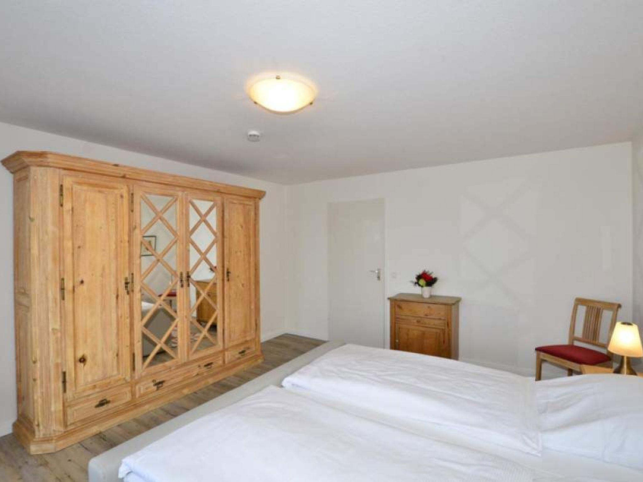 Der Wohnraum besteht aus einer bequemen Sitzgarnitur (2-Sitzer-Schlafcouch, 1,60 x 1,90 m und zwei Sesseln), einem Essplatz (direkt an der großen West-Fensterfront mit Dünenblick), Sat-TV, HiFi-Anlage, W-Lan und Zugang zur Westloggia.
