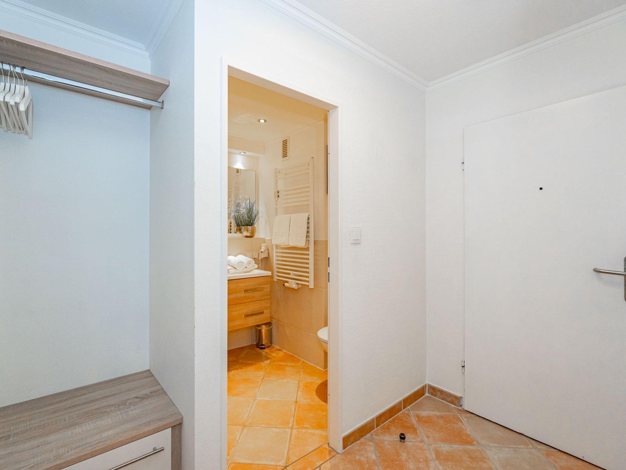 Komfortable, komplett mit Fliesen ausgelegte 1-Zimmer-Nichtraucher-Ferienwohnung (ca. 38 qm) in der 1. Etage zur Landseite mit Ostloggia (Morgensonne, Balkonmöbel vorhanden) für max. 2 Personen.