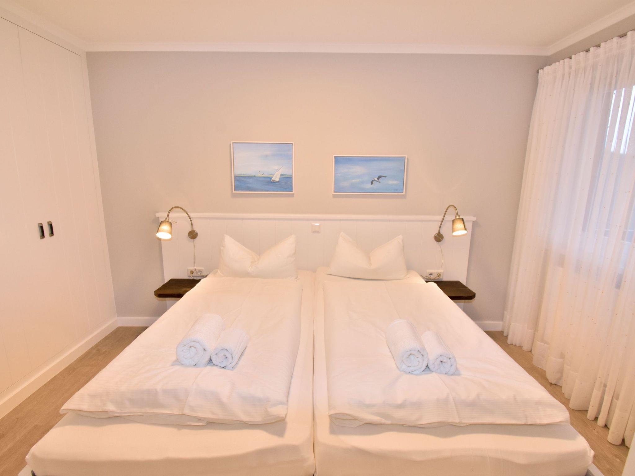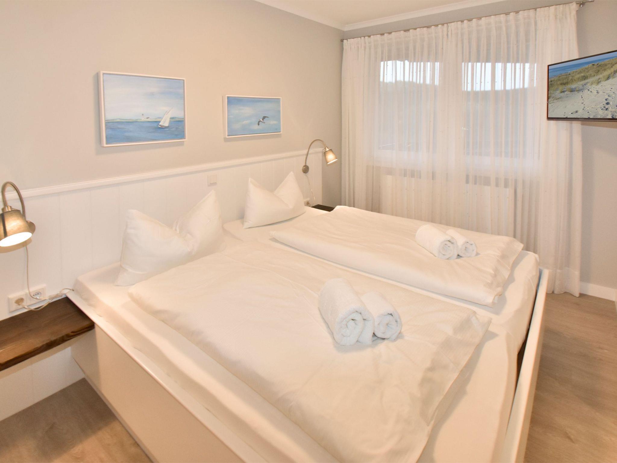 Die Ende 2018 frisch sanierte 2-Zimmer-Nichtraucher-Ferienwohnung mit ca. 52 m², befindet sich in der 1. Etage des Hauses und ist mit einem großzügigen Südbalkon (Sonnenseite, mit Balkonmöbeln und Auflagen) ausgestattet, der einen direkten Blick auf die Düne bietet.