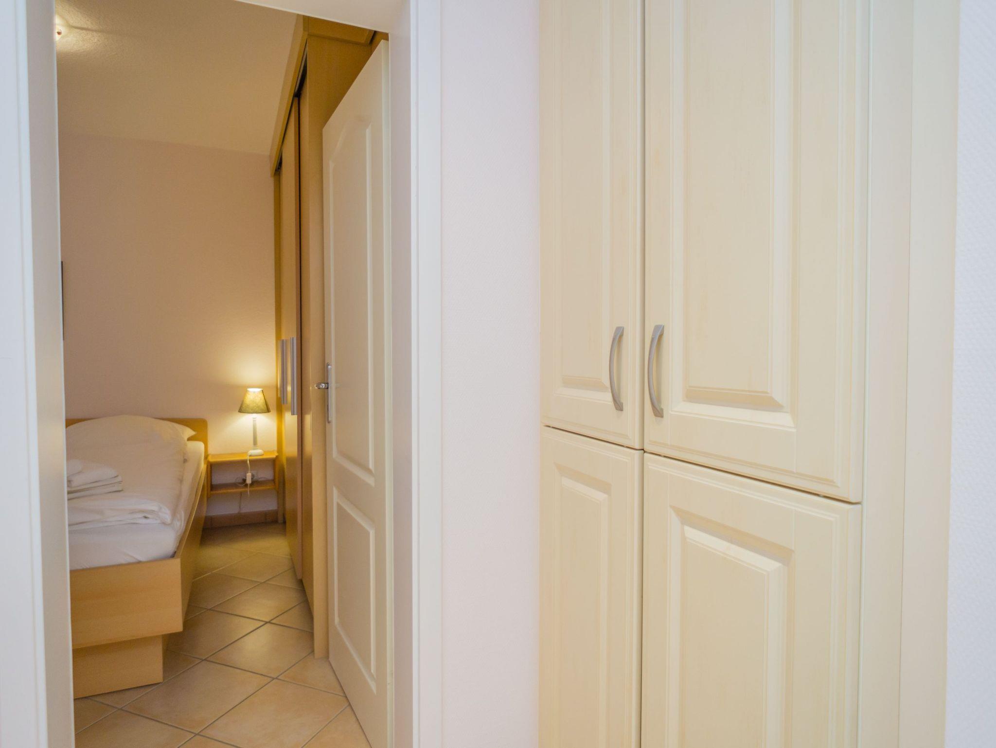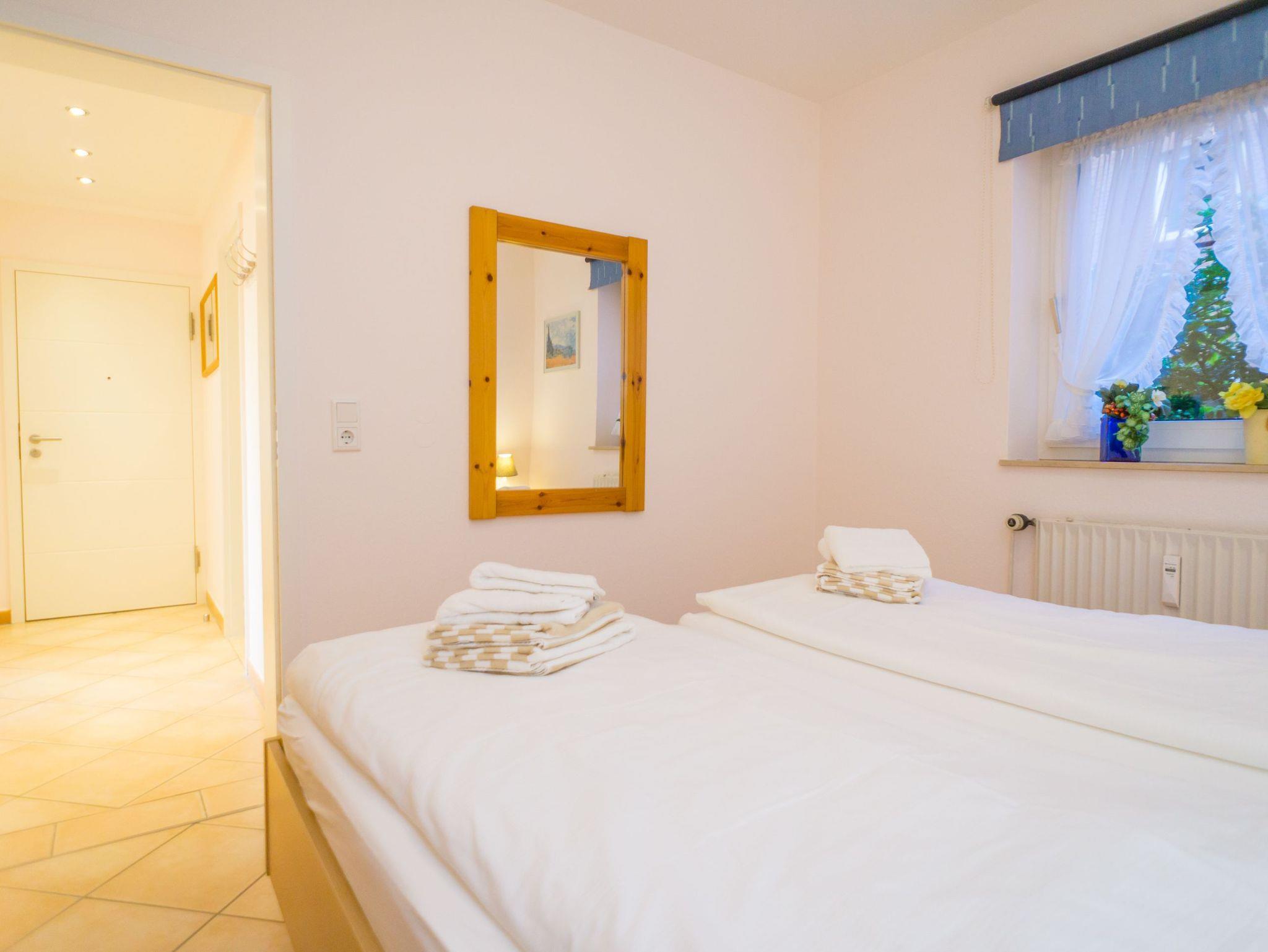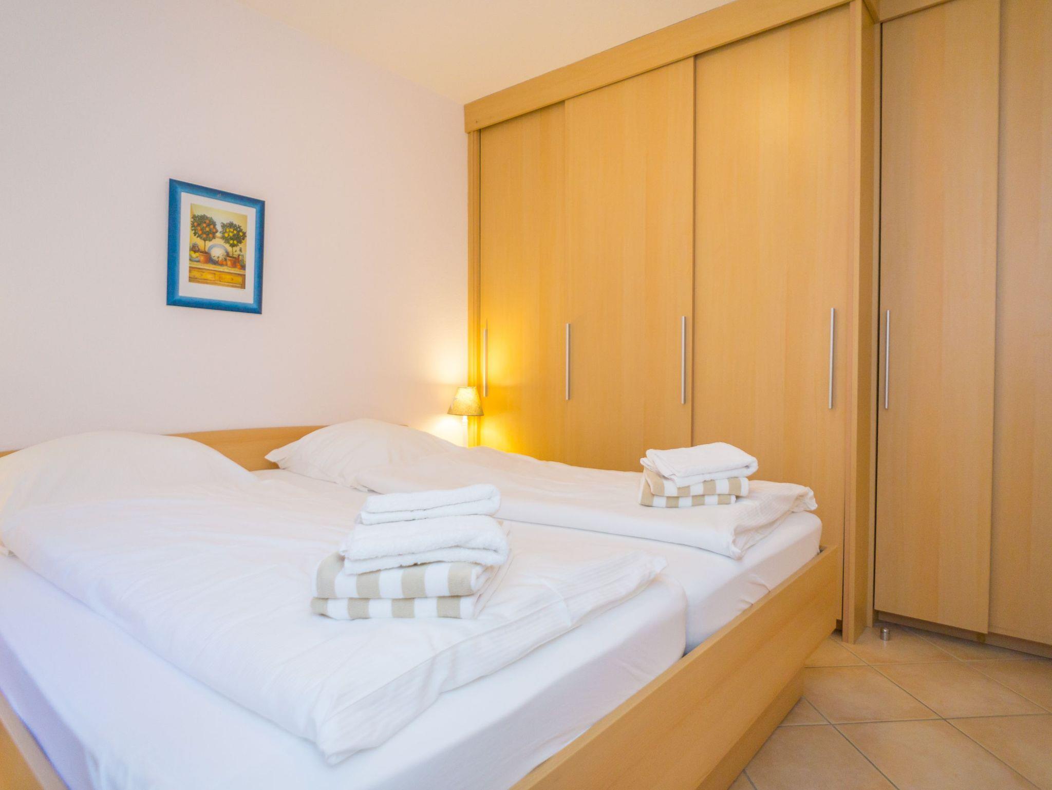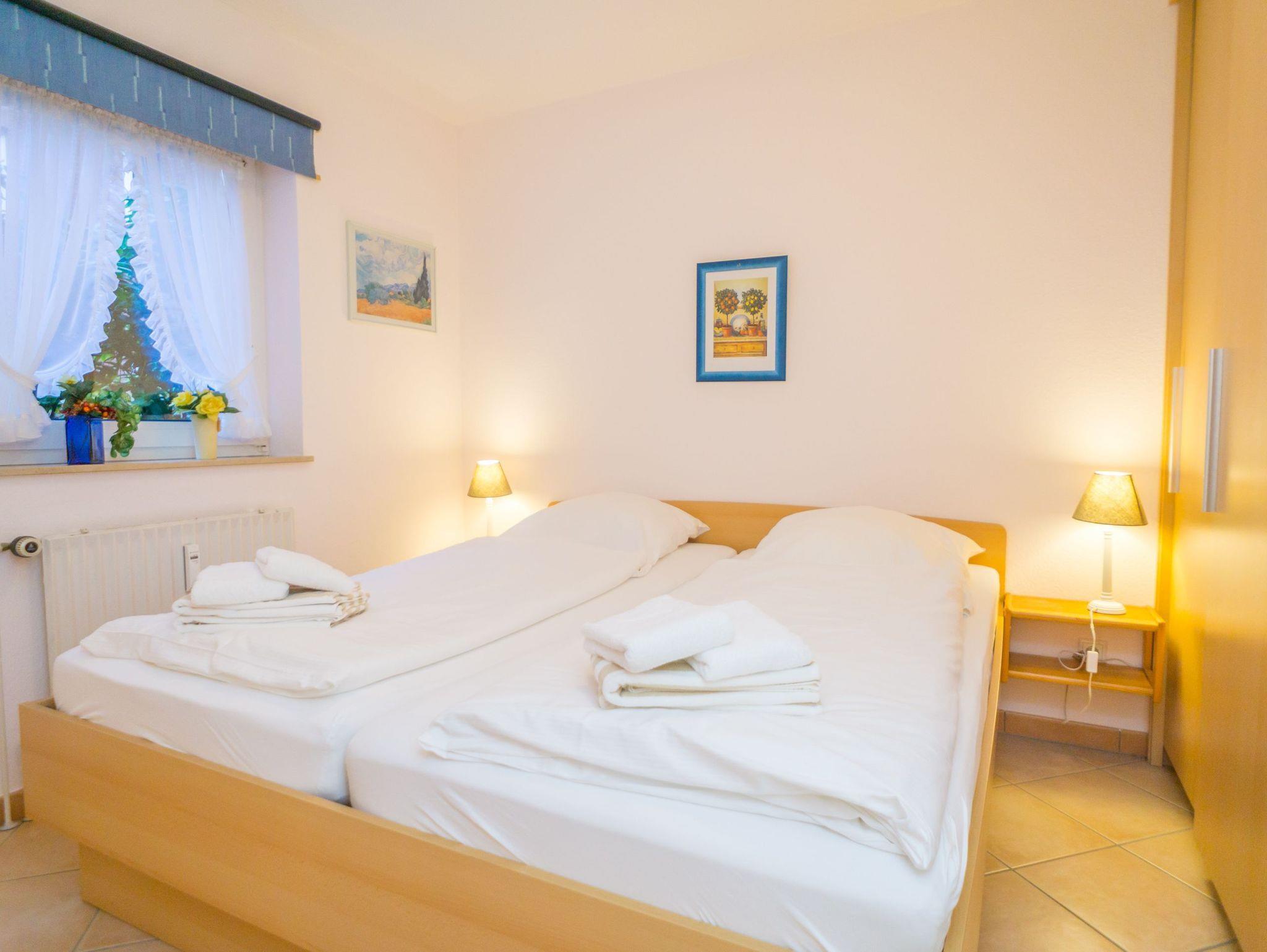Das Schlafzimmer hat ein gutes Doppelbett (2 Einzelmatratzen Maß jeweils 0,90 x 2 m) und einen Kleiderschrank.