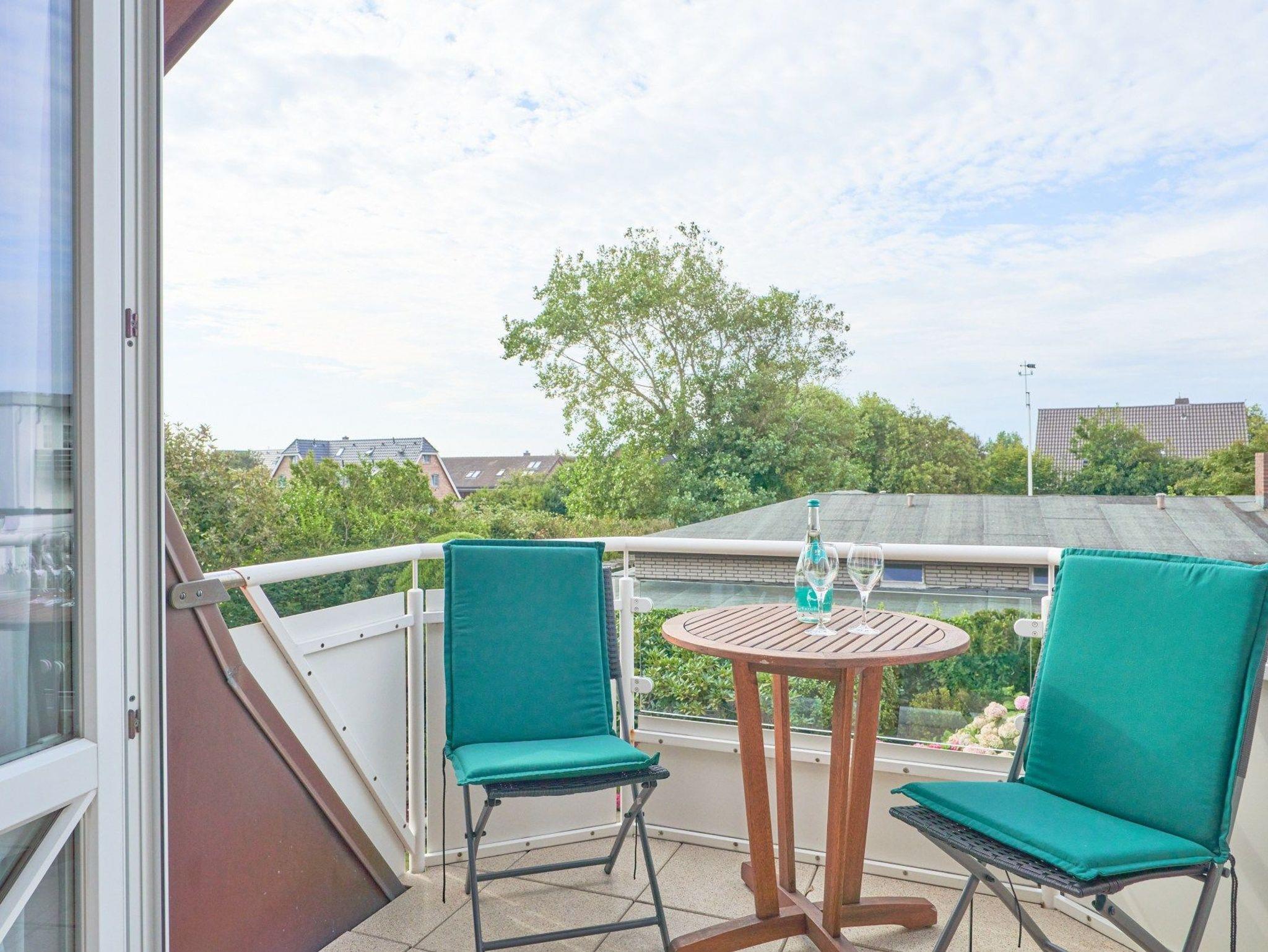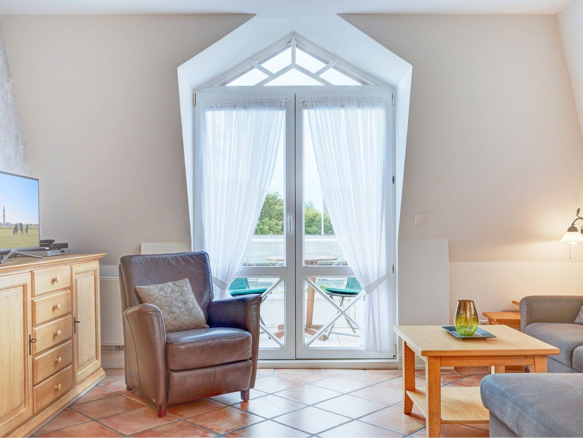 Moderne Ferienwohnung in Westerland mit Wellnessbereich, zwei Balkonen und integrierter Küche für erholsame Tage auf Sylt.