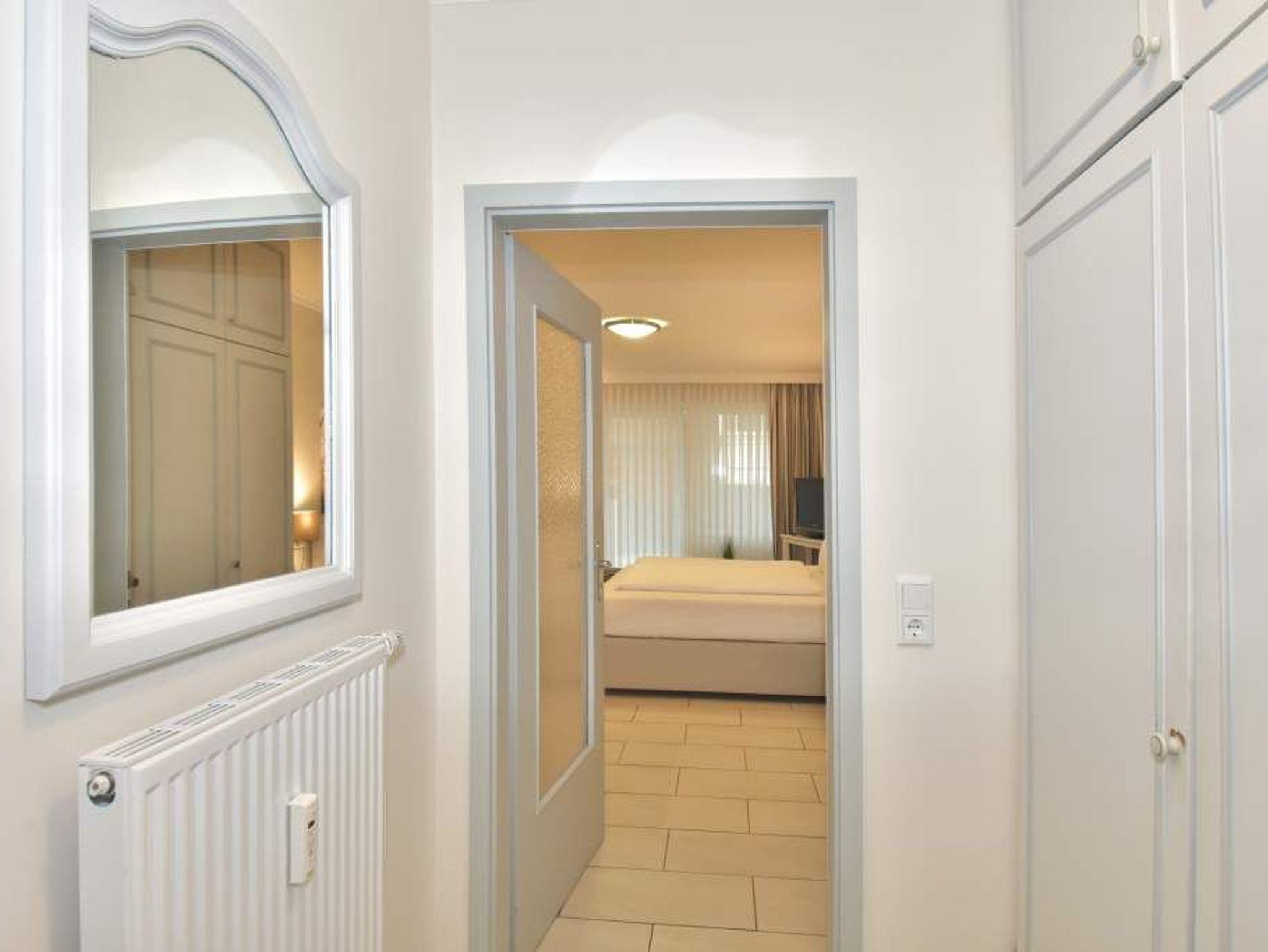 Die Wohnung ist im Flur und Wohnraum mit einem hochwertigen, cremefarbenen, neuen Fliesenboden ausgestattet.