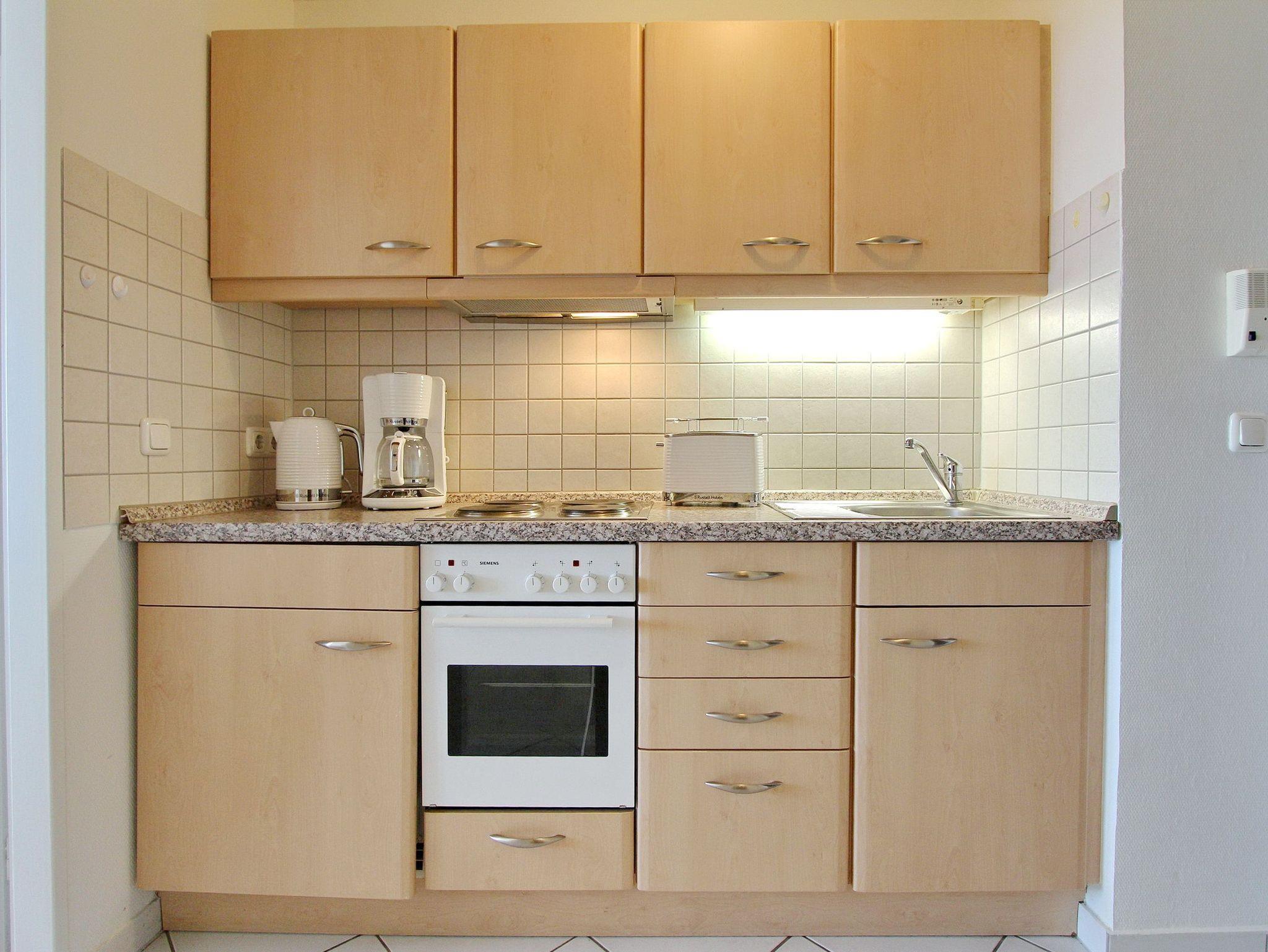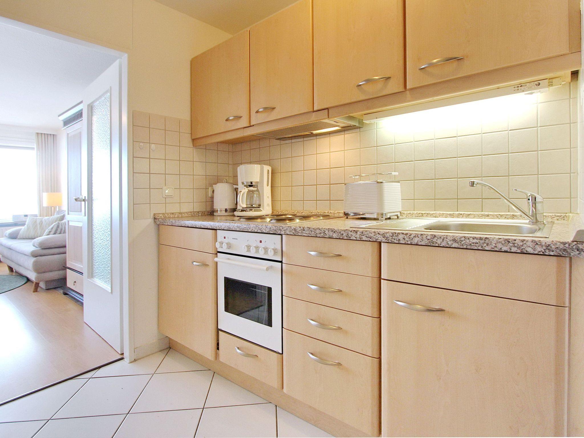 Einzimmerwohnung in der 4. Etage im Haus Metropol mit herrlichem Blick über den Strand und das Meer. Der kombinierte Wohn-/Schlafraum mit vorgelagertem Westbalkon und Balkonmöbeln verfügt über ein modernes Doppelbett, eine große Couch sowie eine Essgruppe mit 2 Stühlen am Fenster. In der Wohnung wurde Laminatfußboden verlegt. Das Badezimmer hat eine Dusche und eine kleine Einbauküche mit Backofen befindet sich im Flur. Zur technischen Ausstattung dieser Nichtraucherwohnung gehört : ein Flachbildfernseher und ein Radio mit CD Player. Ein freies WLAN Netzwerk (WEG Haus Metropol - Passwortfrei - ohne Gewähr) steht ihnen ebenfalls kostenfrei zur Verfügung. Wohnungsgröße: ca. 34 m².